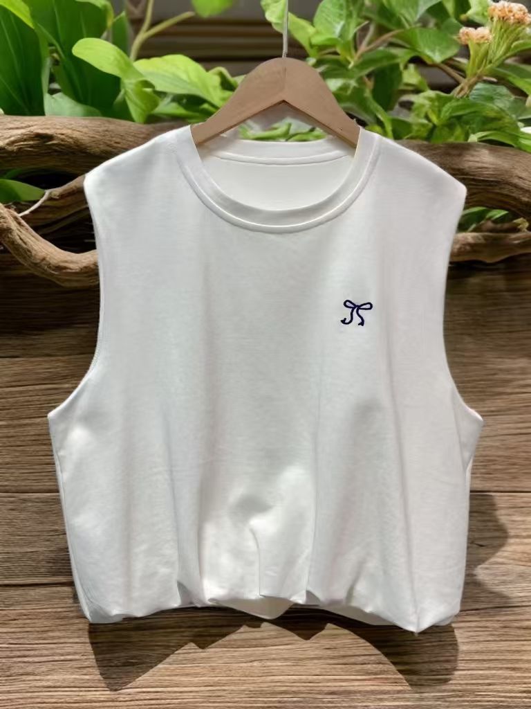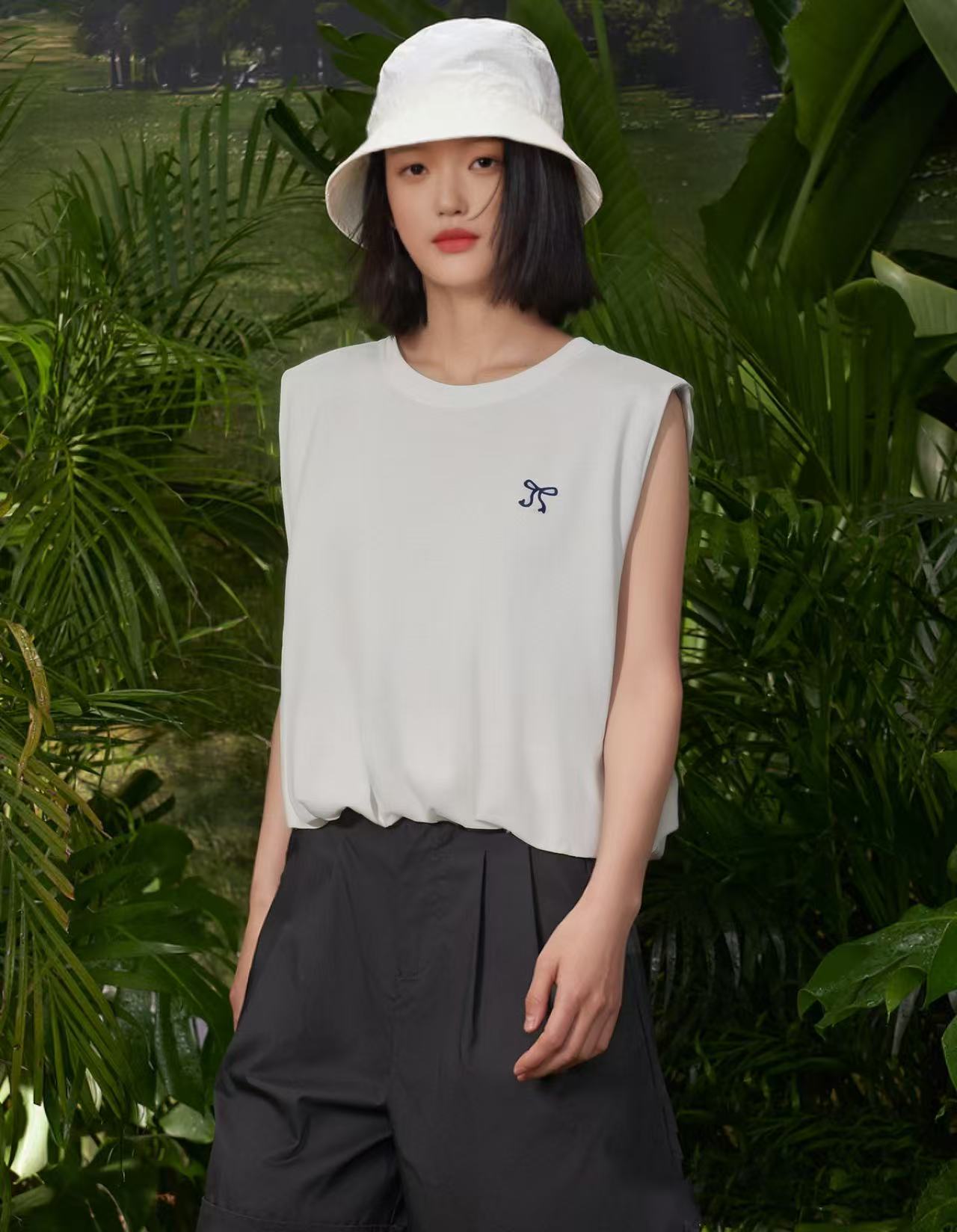 7.30秒杀~NO退【超值特卖】55792花苞款蝴蝶结刺绣背心(微脏)-喜出