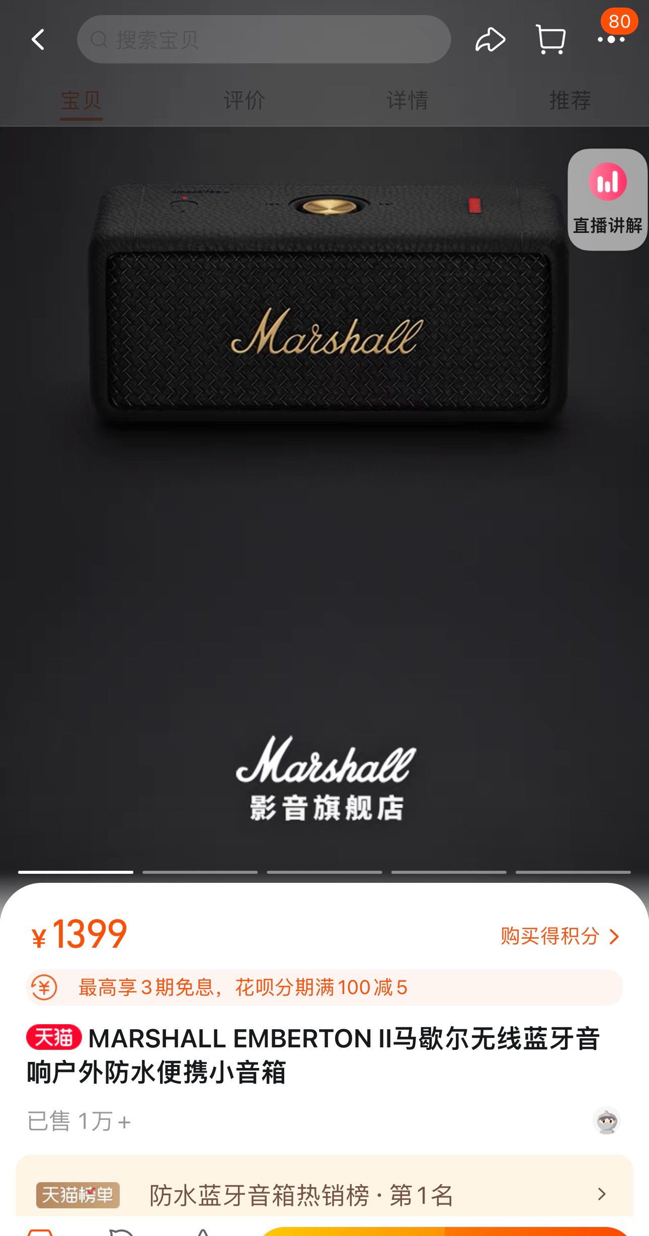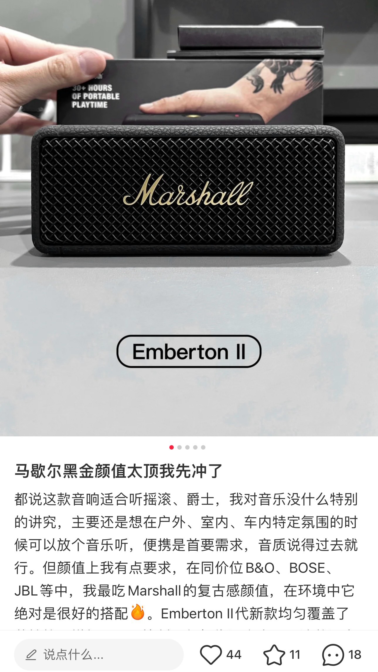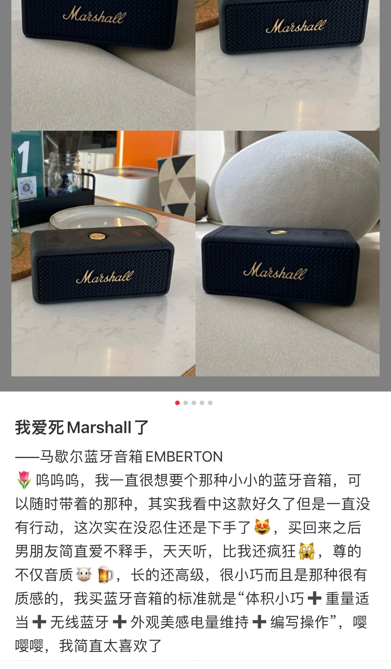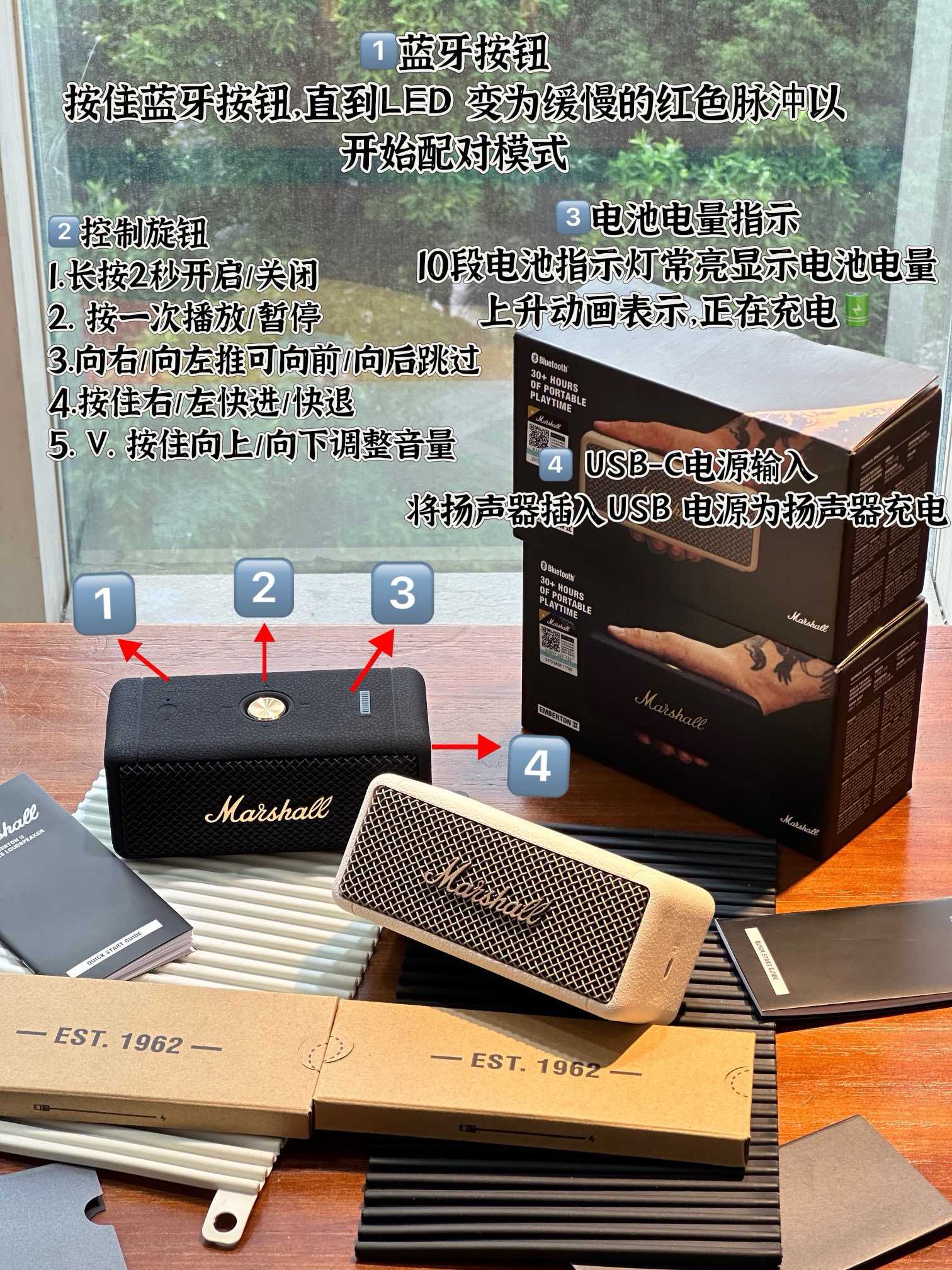 官网断货王,超高颜值,复古感满满,马歇尔 (M@rshall) EMBERTON 随身便携音响