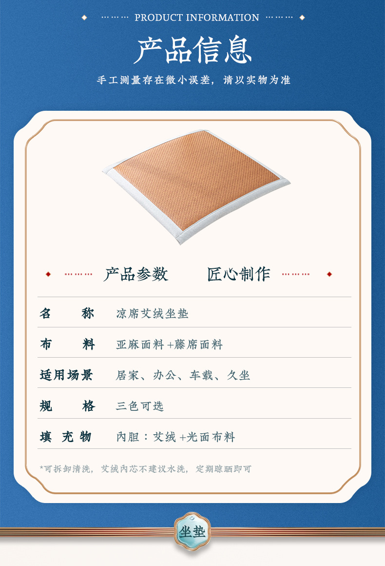 【办公久坐常备】艾草藤席坐垫 高品质藤席面料 凉而不冰 光滑舒适 可拆卸内胆清洗方便 5色可选