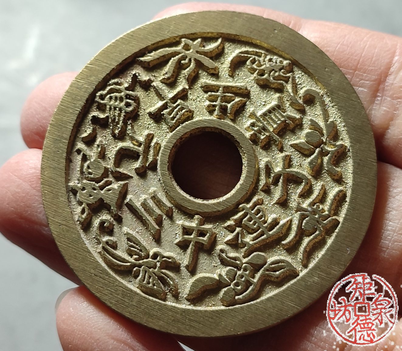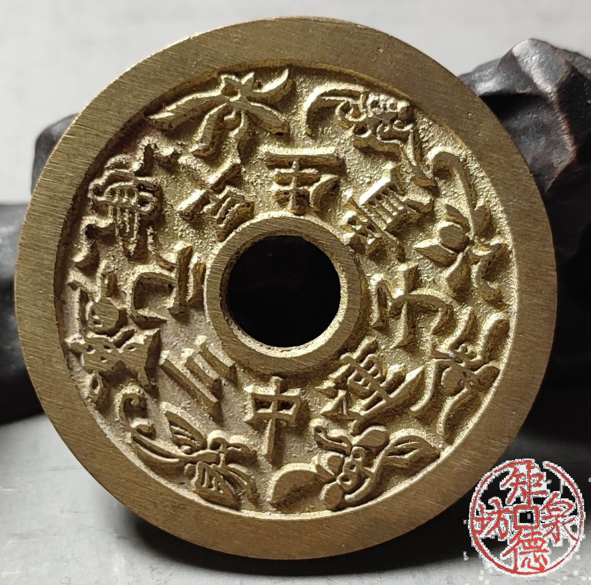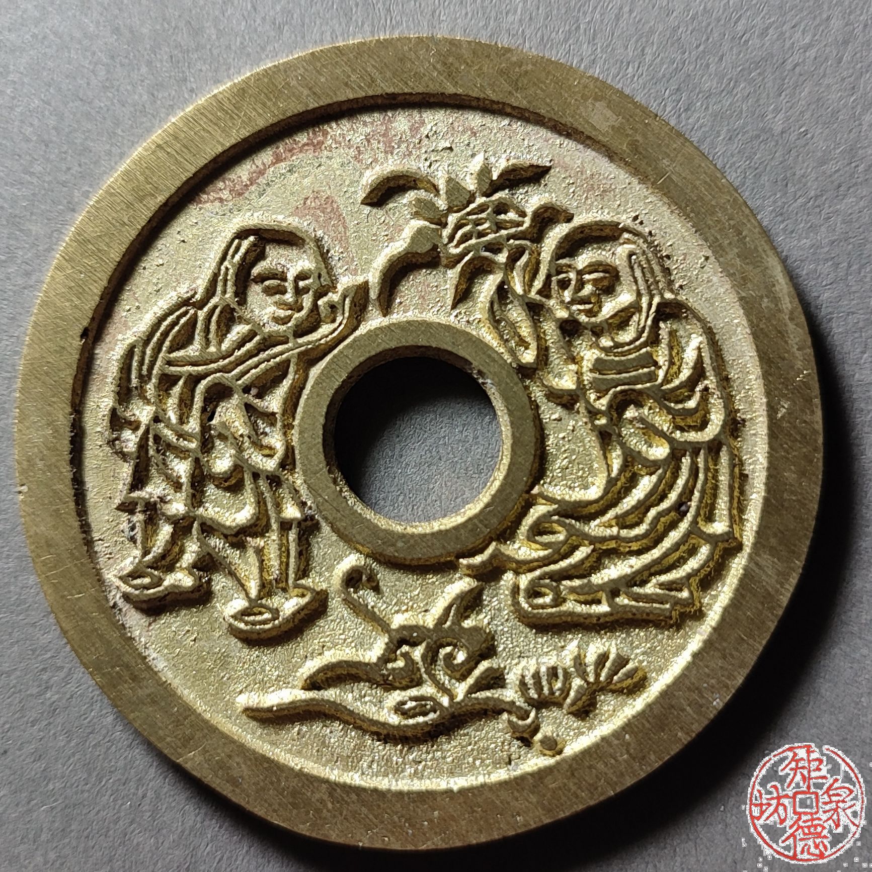 古法文创铸币 连中三元早生贵子背和合二仙 文房铜镇 HYJ19