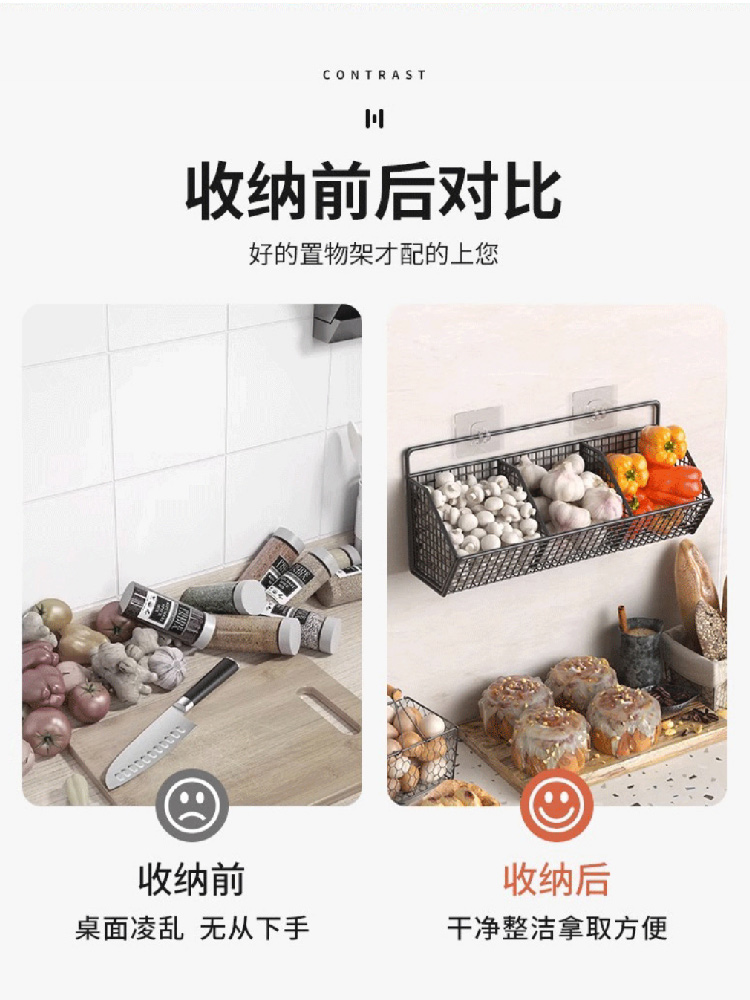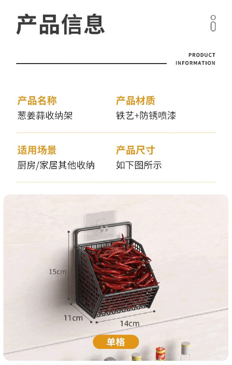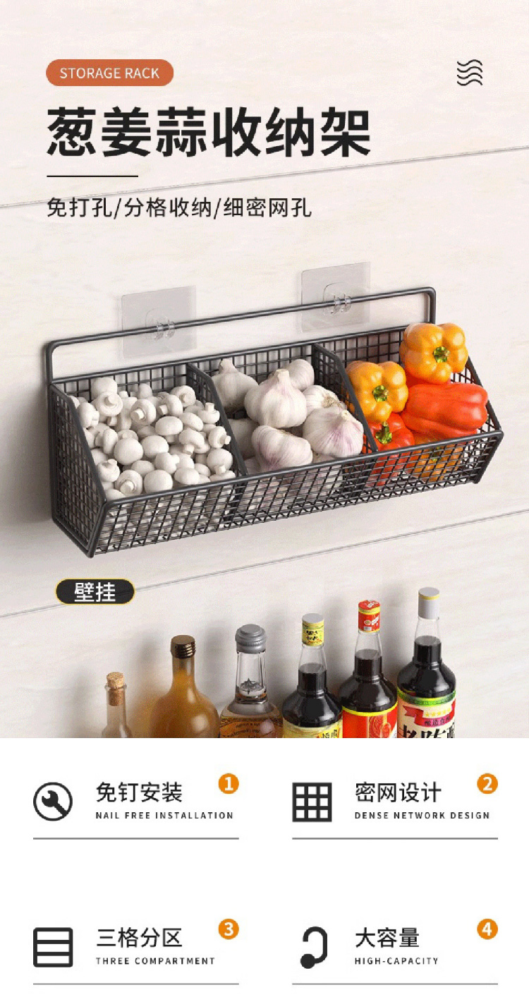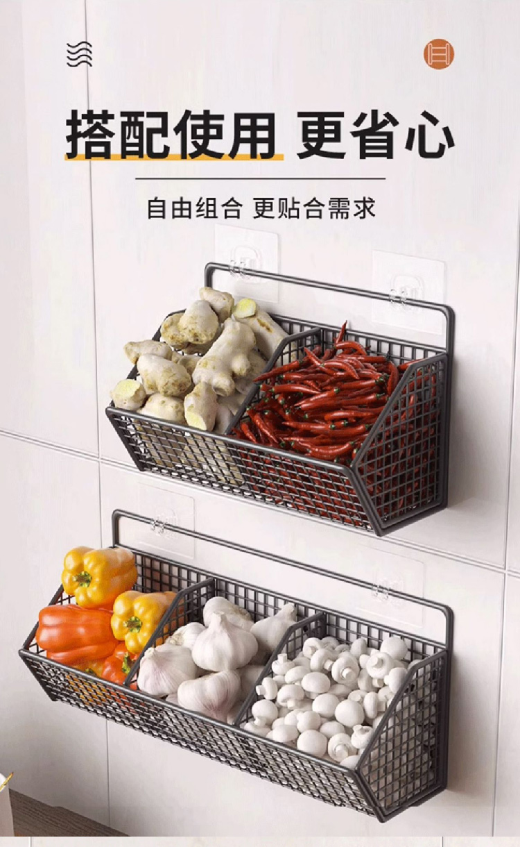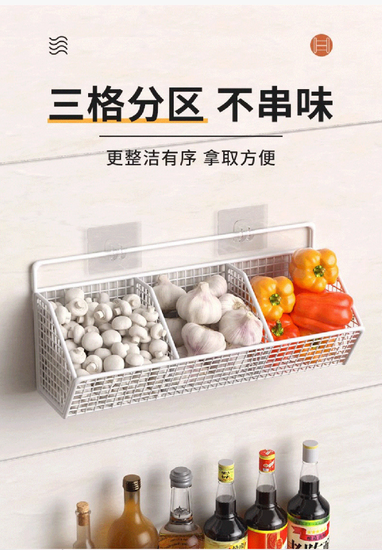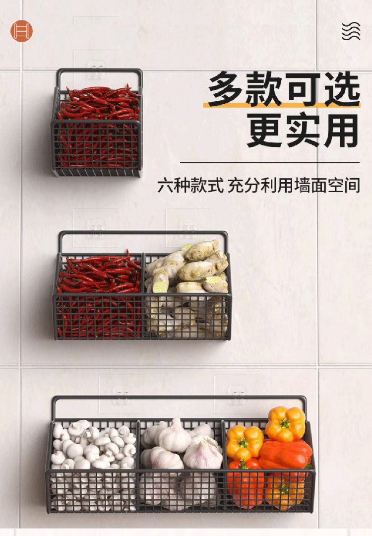 【厨房葱姜蒜收纳筐】壁挂式置物架调料架神器菜篮子 免打孔橱柜收纳小挂篮