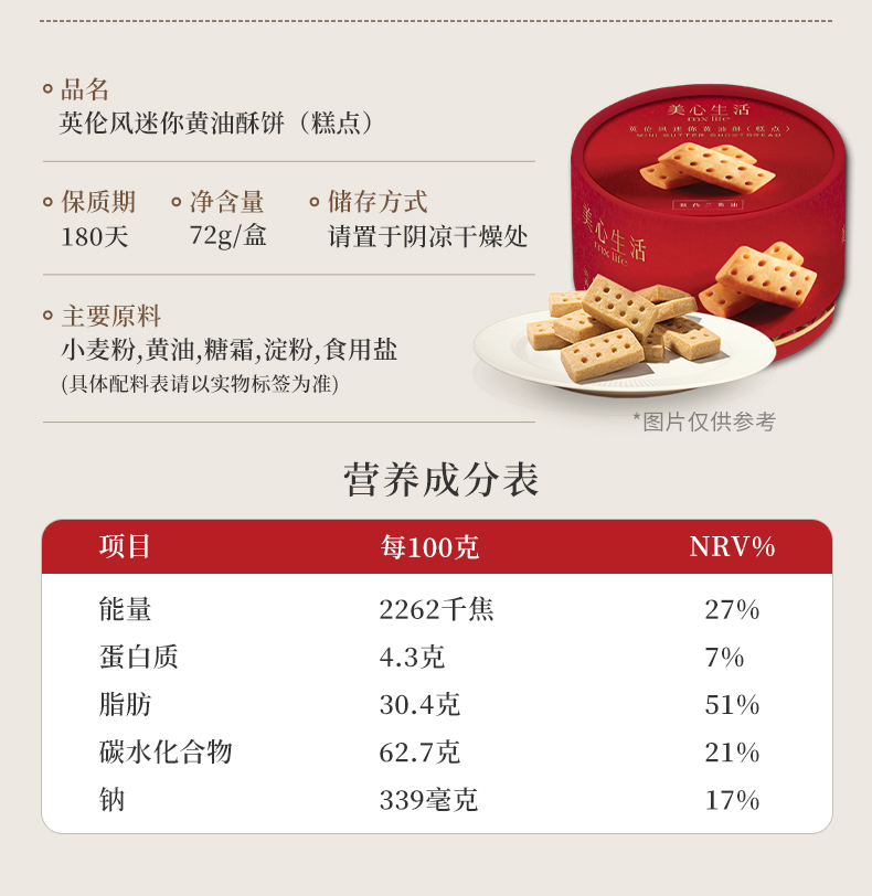 美心生活海盐金沙迷你黄油酥饼72g/051809 咸香酥脆匠心烘焙