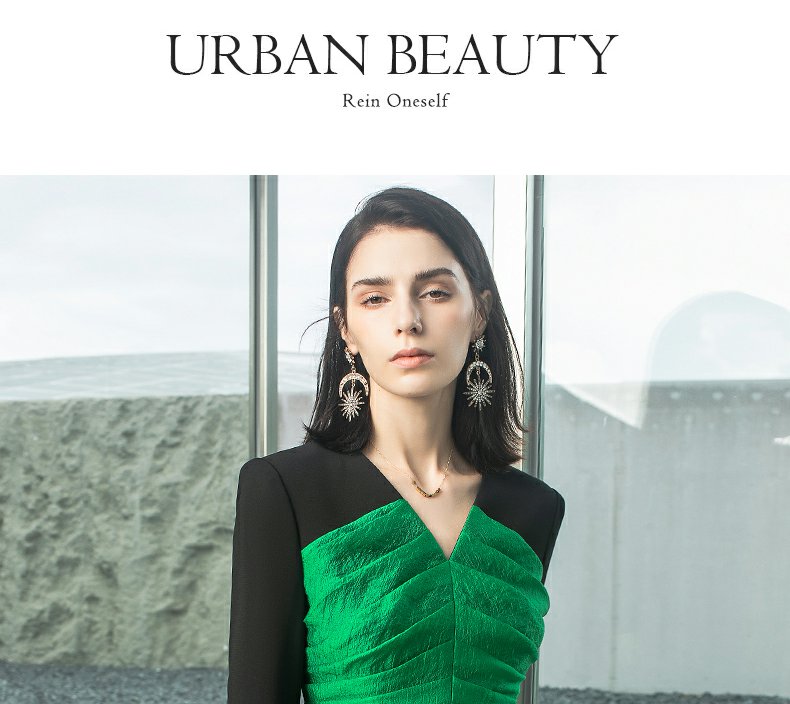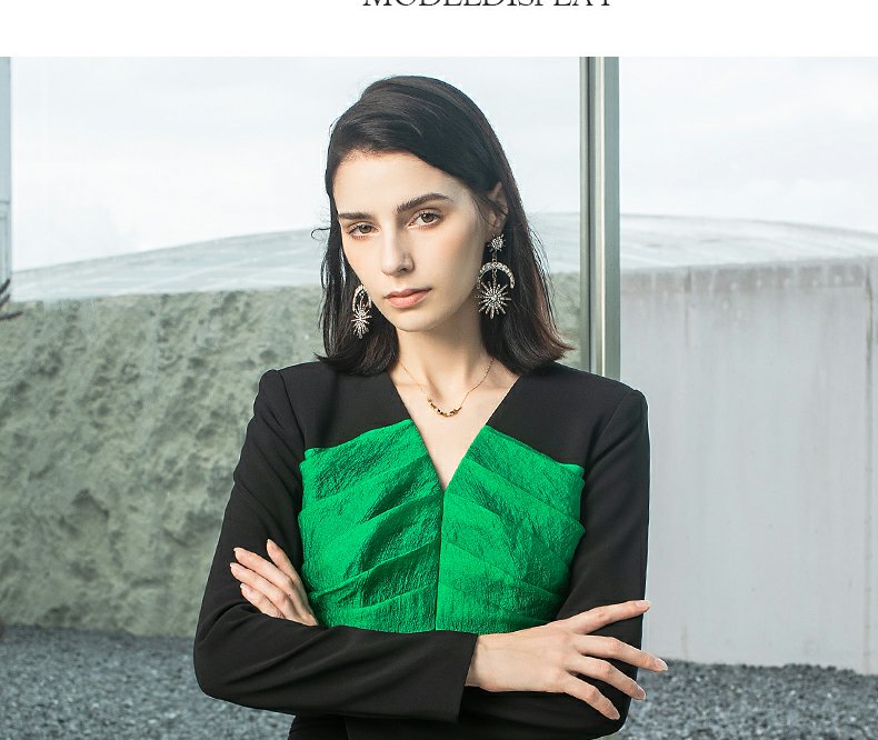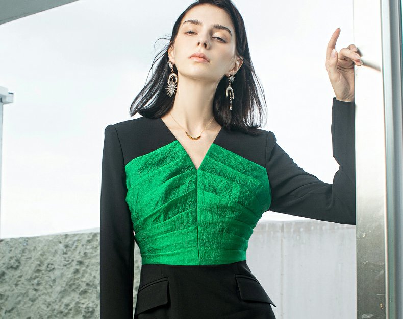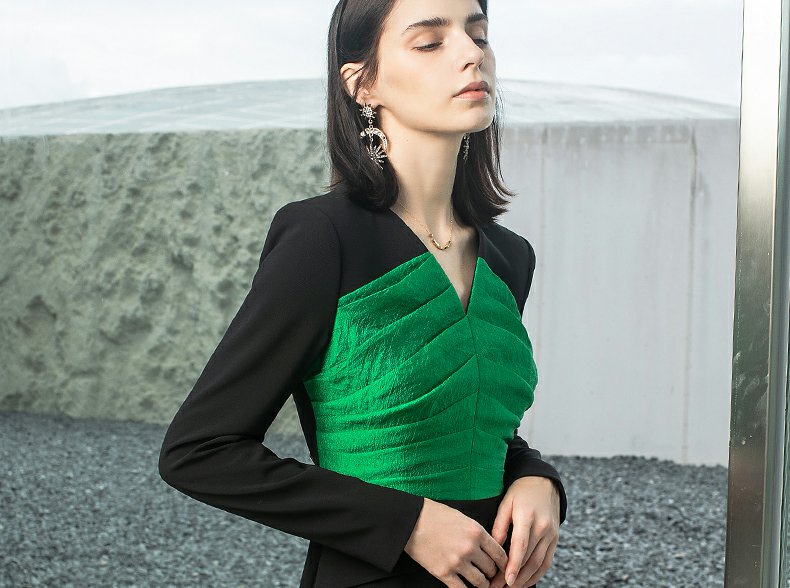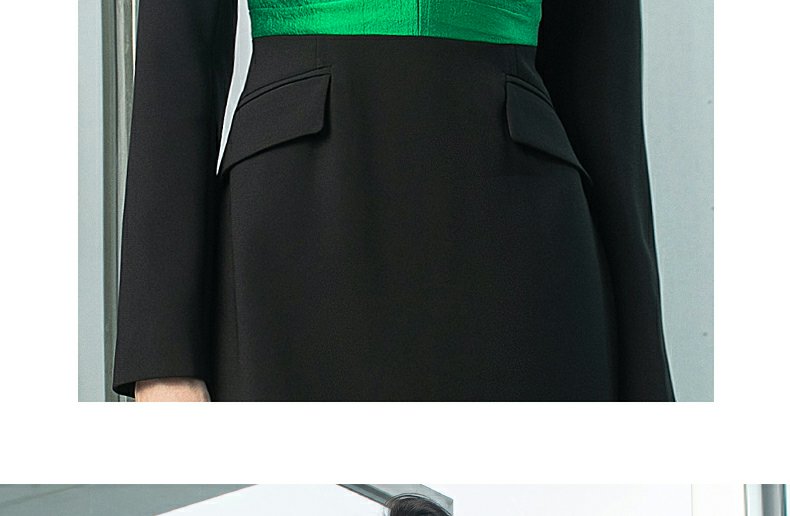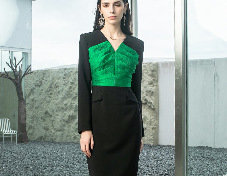 IWY/秋季新款洋气时尚职业连衣裙女拼接黑绿色长袖个性潮流打底裙2231100Q1