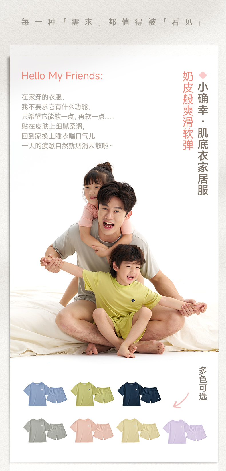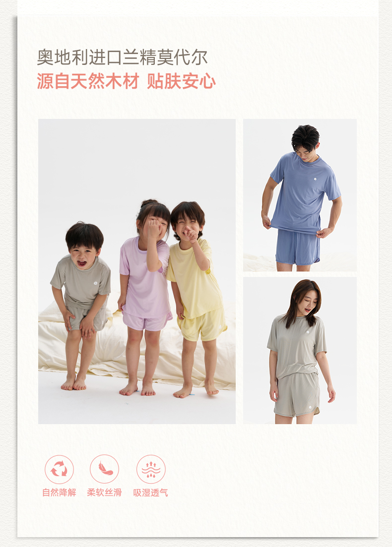 【代发】天丝莫吸湿排汗抑菌Q21小确幸肌底衣80支家居服亲子短袖短裤套装