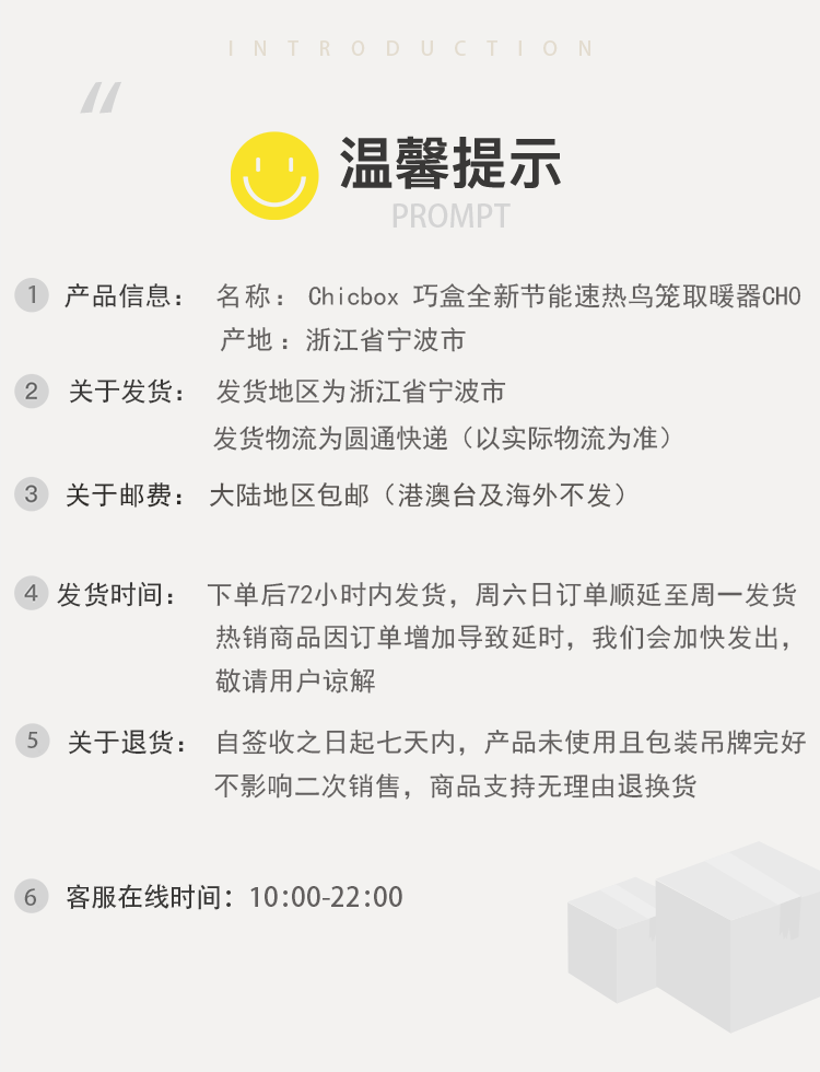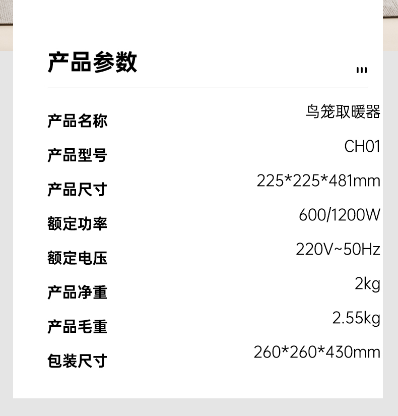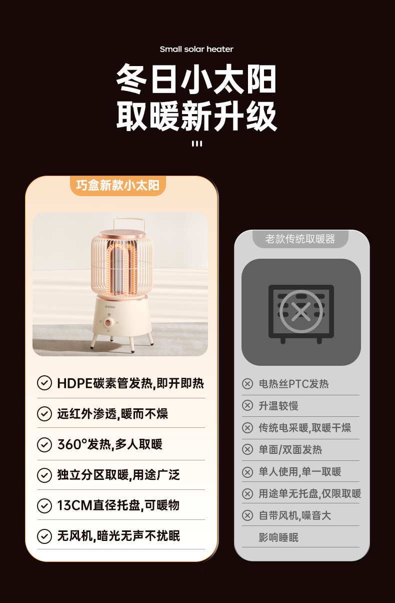 【360°立体环绕 低噪无风运转】Chicbox 巧盒全新节能速热鸟笼取暖器 | CH0 安静柔光 冬夜温暖又惬意