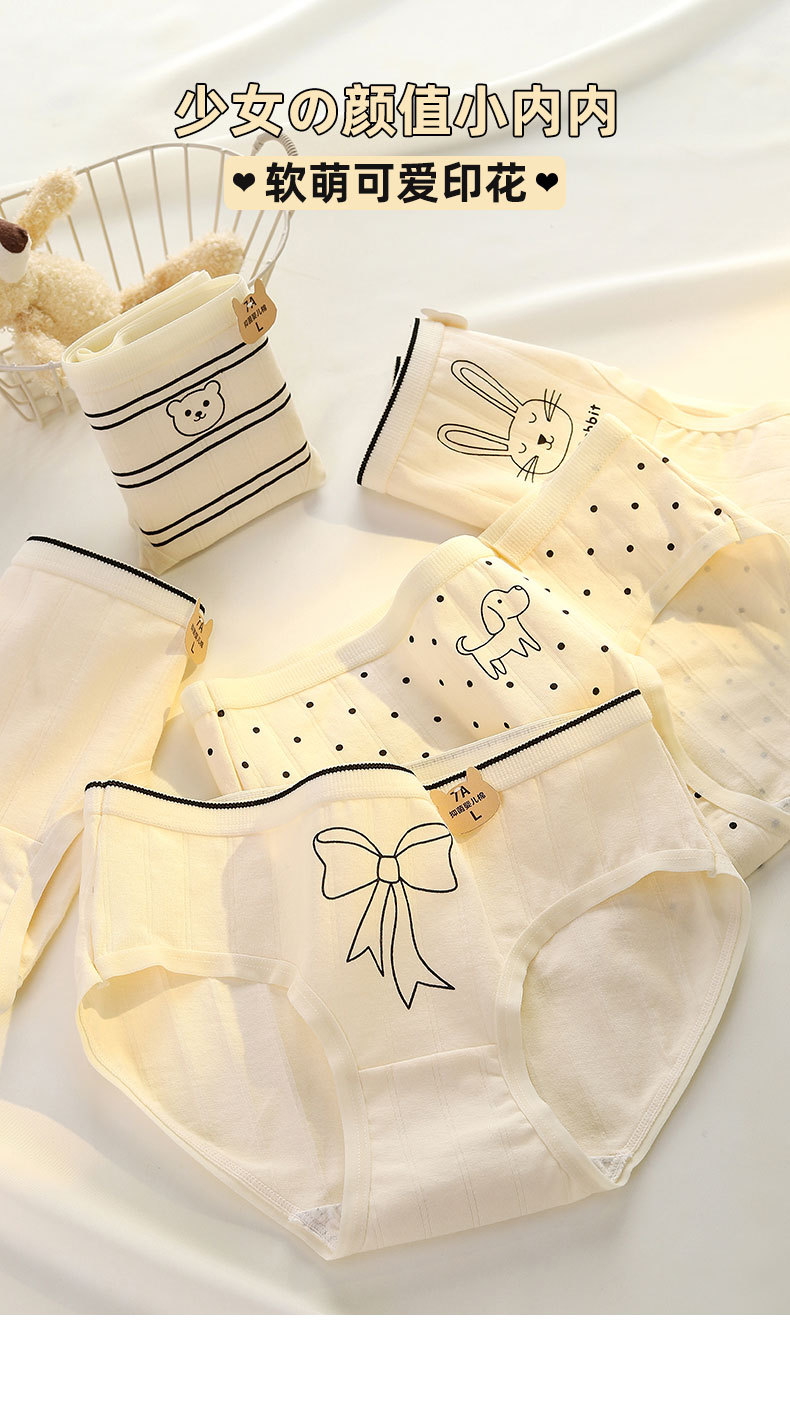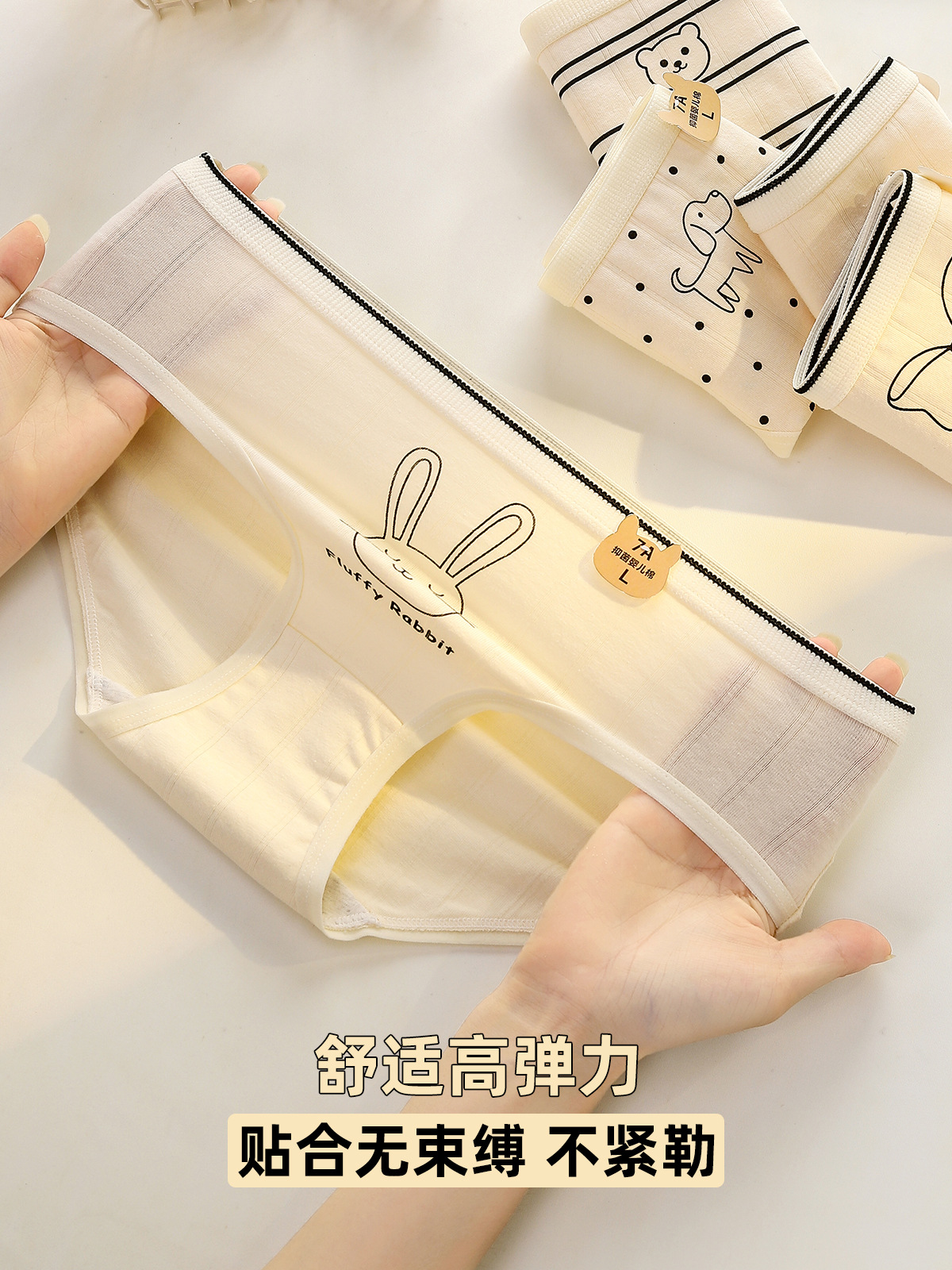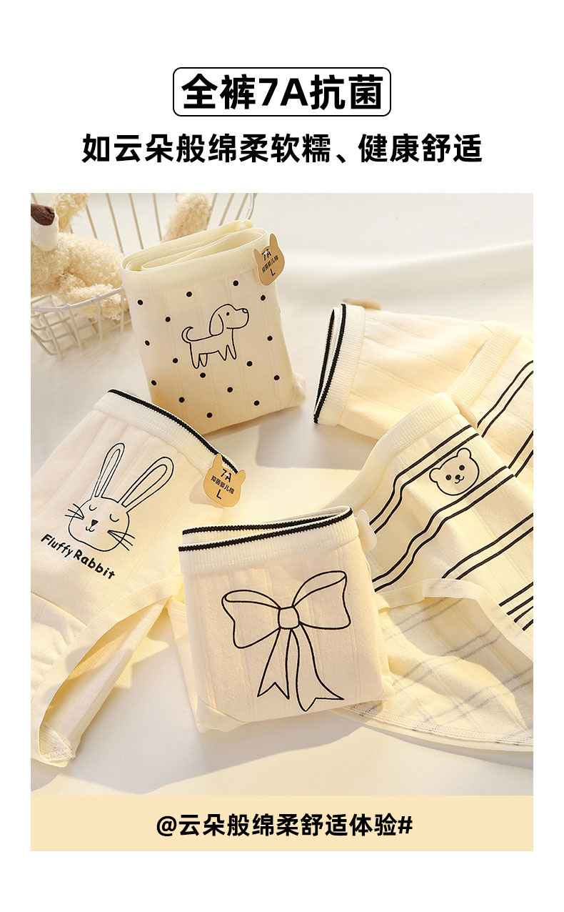 【不夹臀!不紧勒】7A全裤抗菌内裤女中腰亲肤透气纯棉抑菌内档弹力卡通少女学生裤头。xb