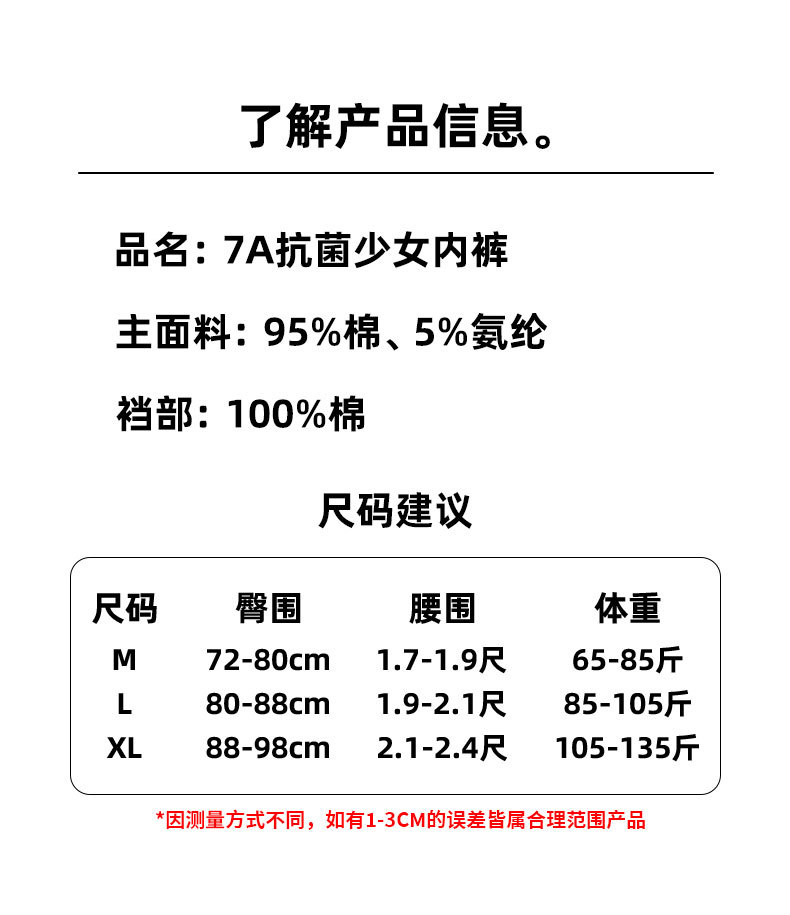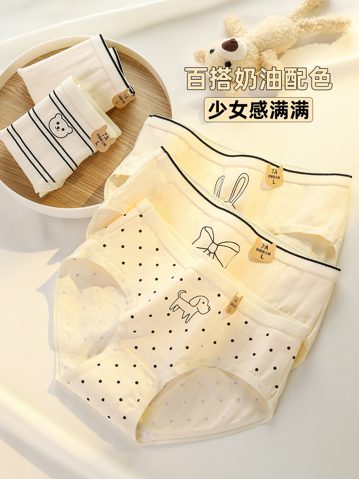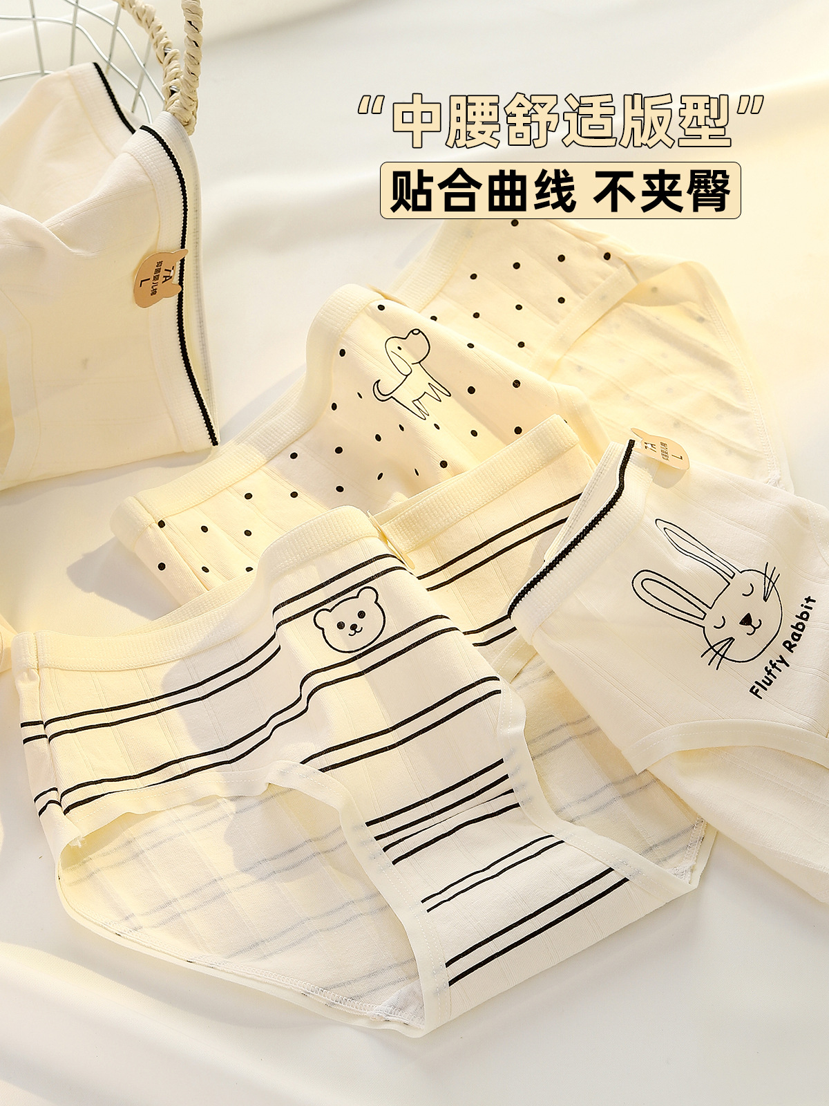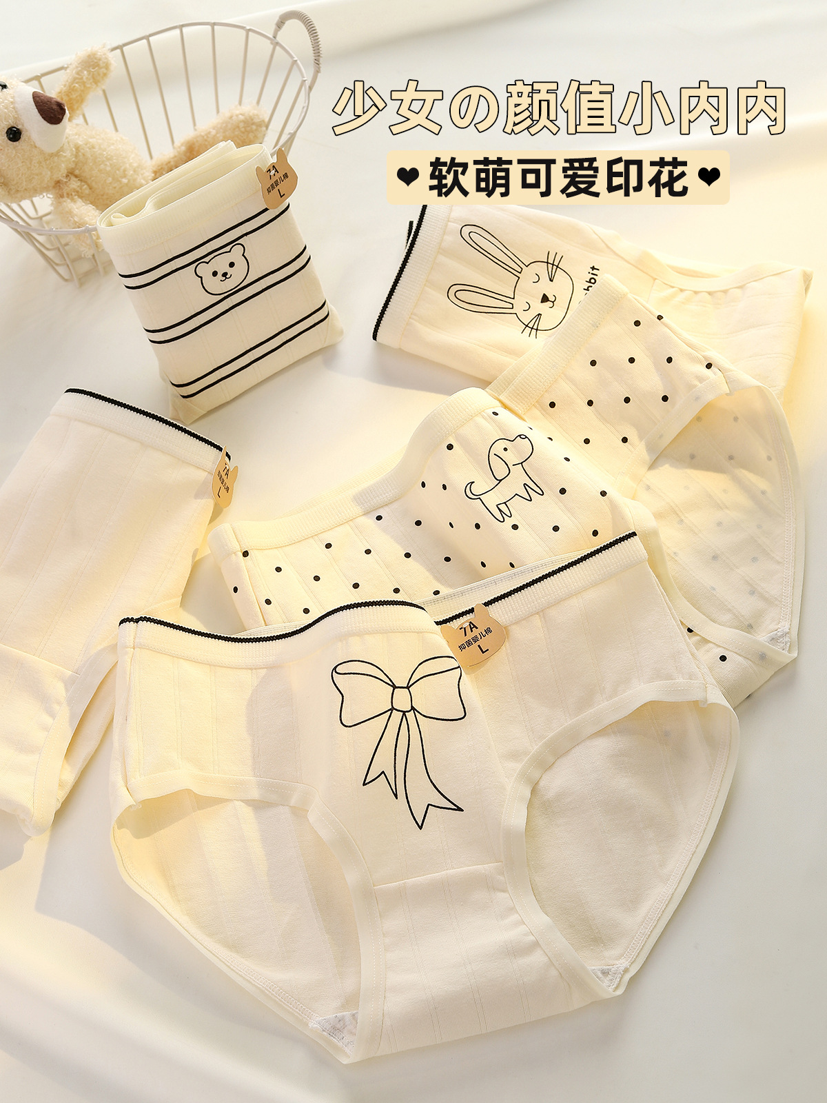 【不夹臀!不紧勒】7A全裤抗菌内裤女中腰亲肤透气纯棉抑菌内档弹力卡通少女学生裤头。xb