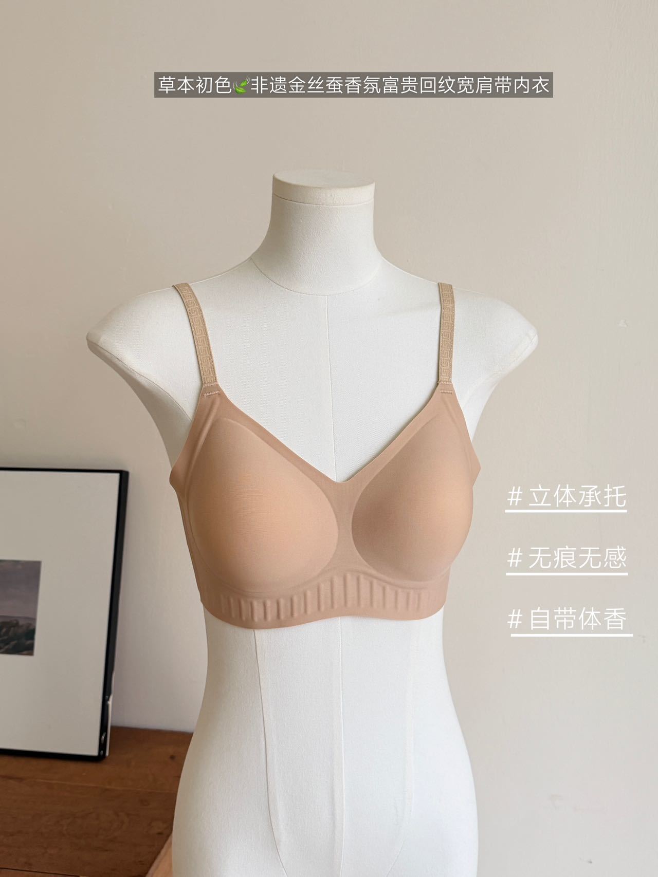终于被我挖到一件😍舒适宝藏bra了【草本初色 香氛富贵宋锦金蚕8DFortuna塑立挺内衣65192款】 💎 3D聚拉提工艺:立体承托,提拉聚拢,重塑自然圆润胸型