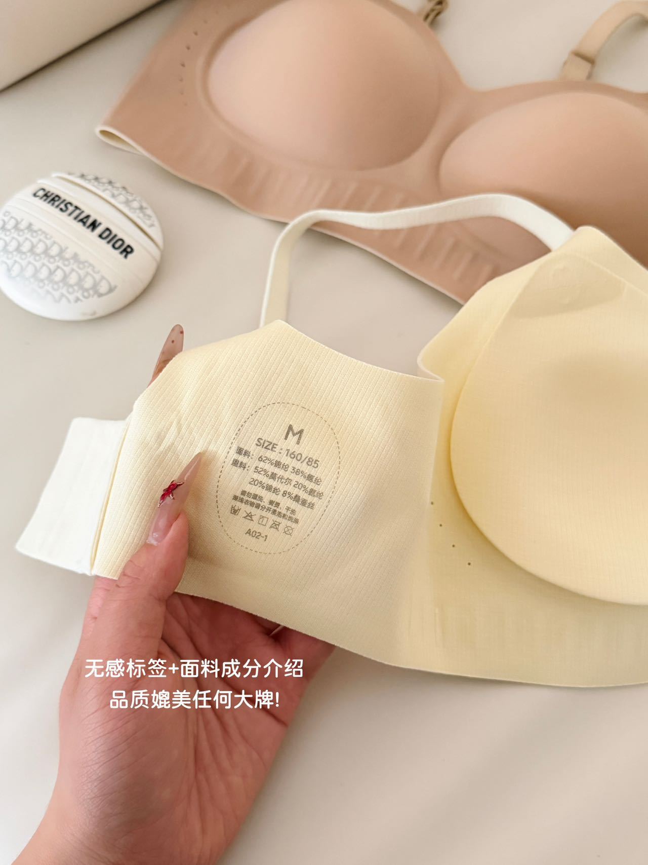 无钢圈也能稳稳有型! 兼顾了舒适度与承托力 软乎乎的弹力条温柔托住胸部 活动自如又能保持完美胸型 是真正的“鱼与熊掌兼得”