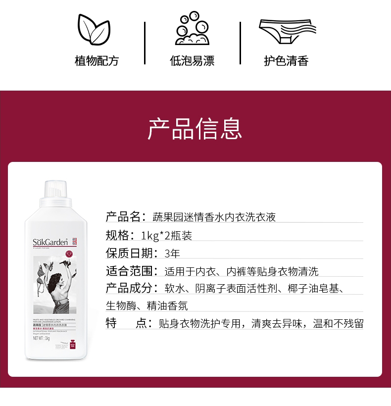 蔬果园迷情香水内衣洗衣液雅致抗菌型 1kg