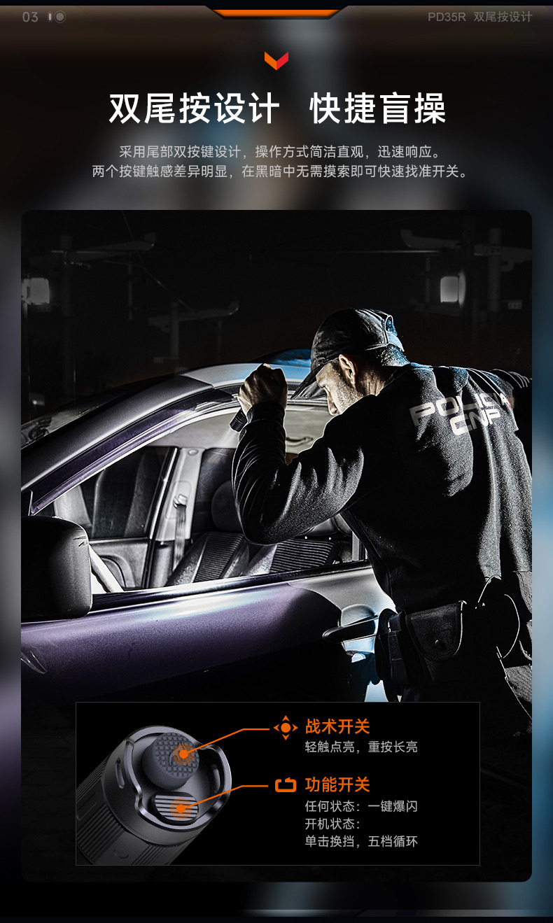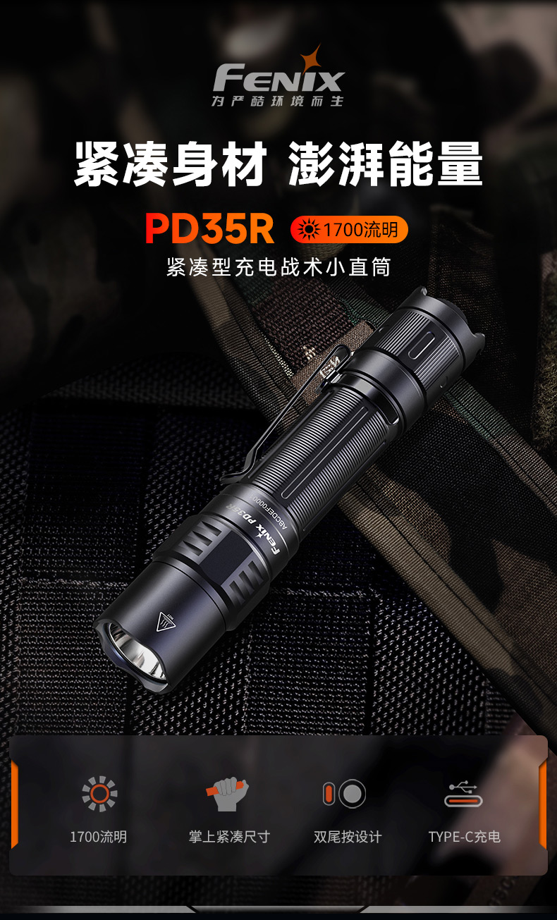 Fenix菲尼克斯PD35R手电筒强光充电远射超亮巡逻户外便携战术手电
