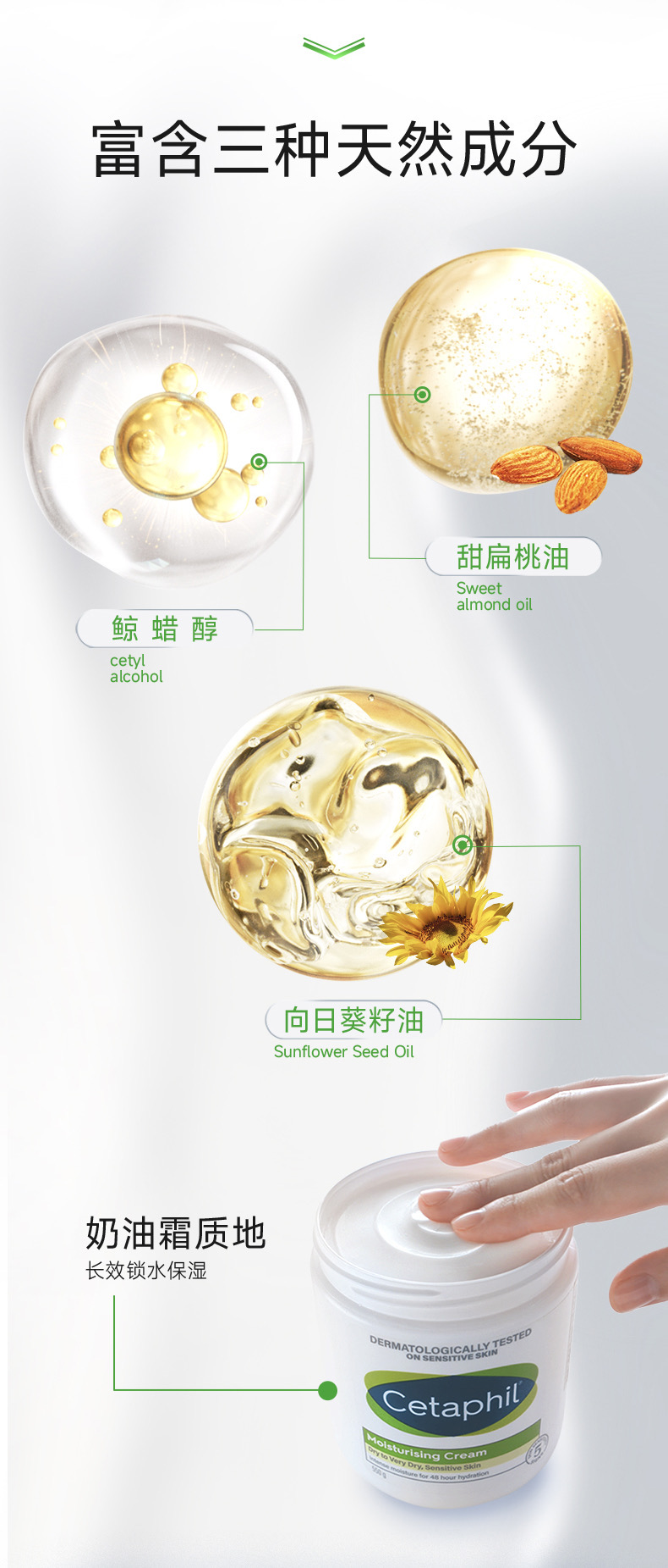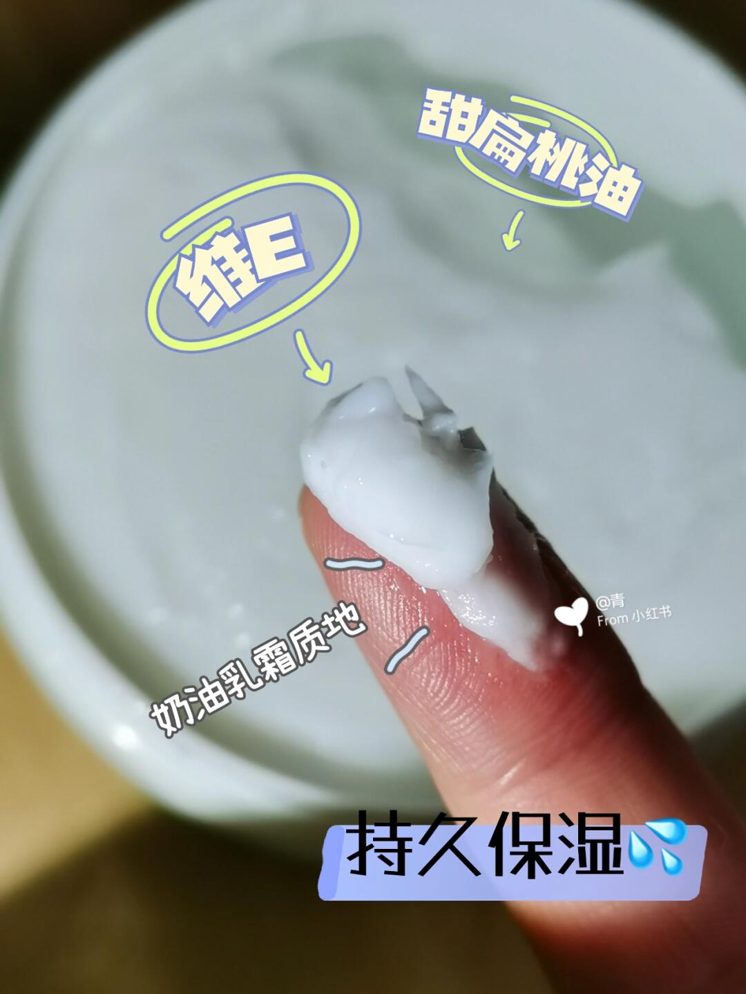 成分中🈶甜扁桃油+维E➡️能让肌肤持久保湿~