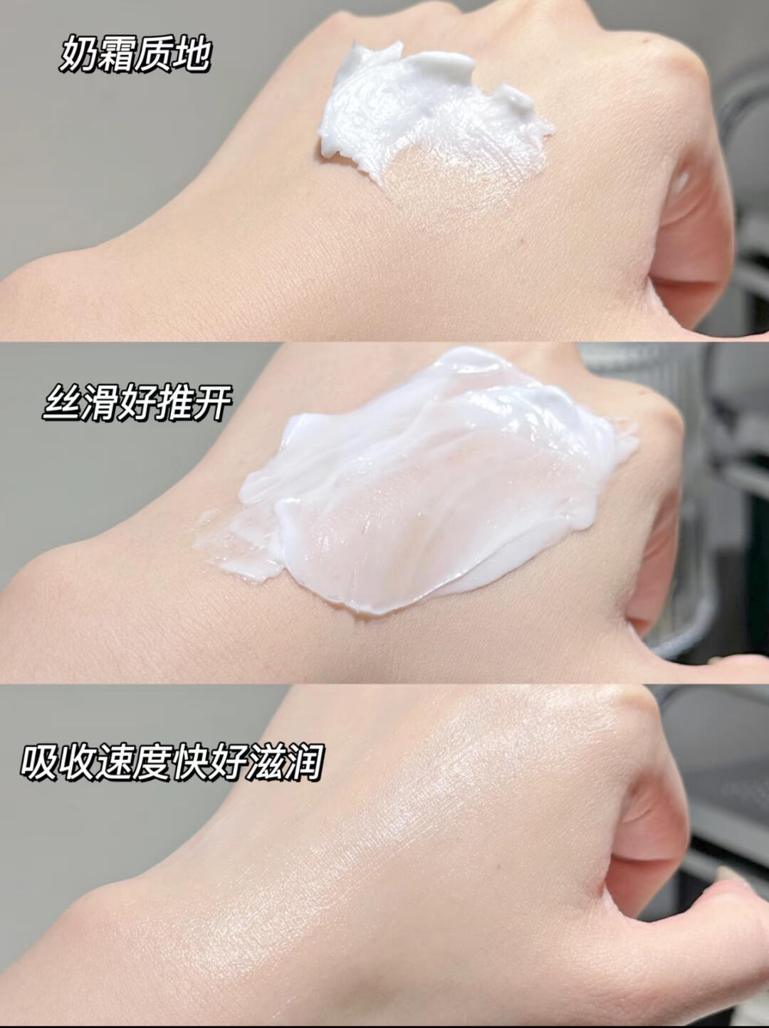 ·质地清爽,不油腻好吸收!虽然是霜状质地,但一点都不会厚重,轻轻一抹就化开,吸收超快,完全不会黏腻!