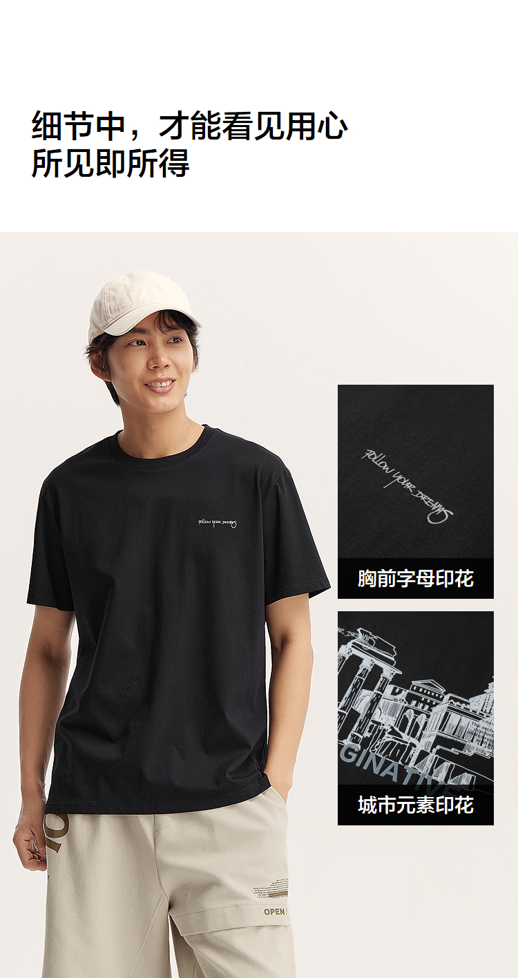 森柔棉|森马短袖T恤男休闲都市通勤风夏装印花大图案上衣圆领时尚