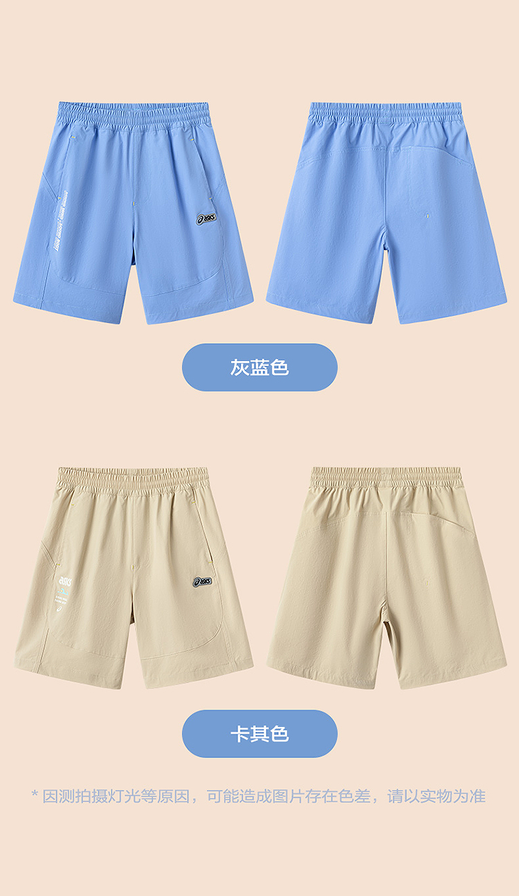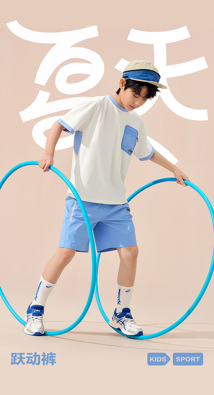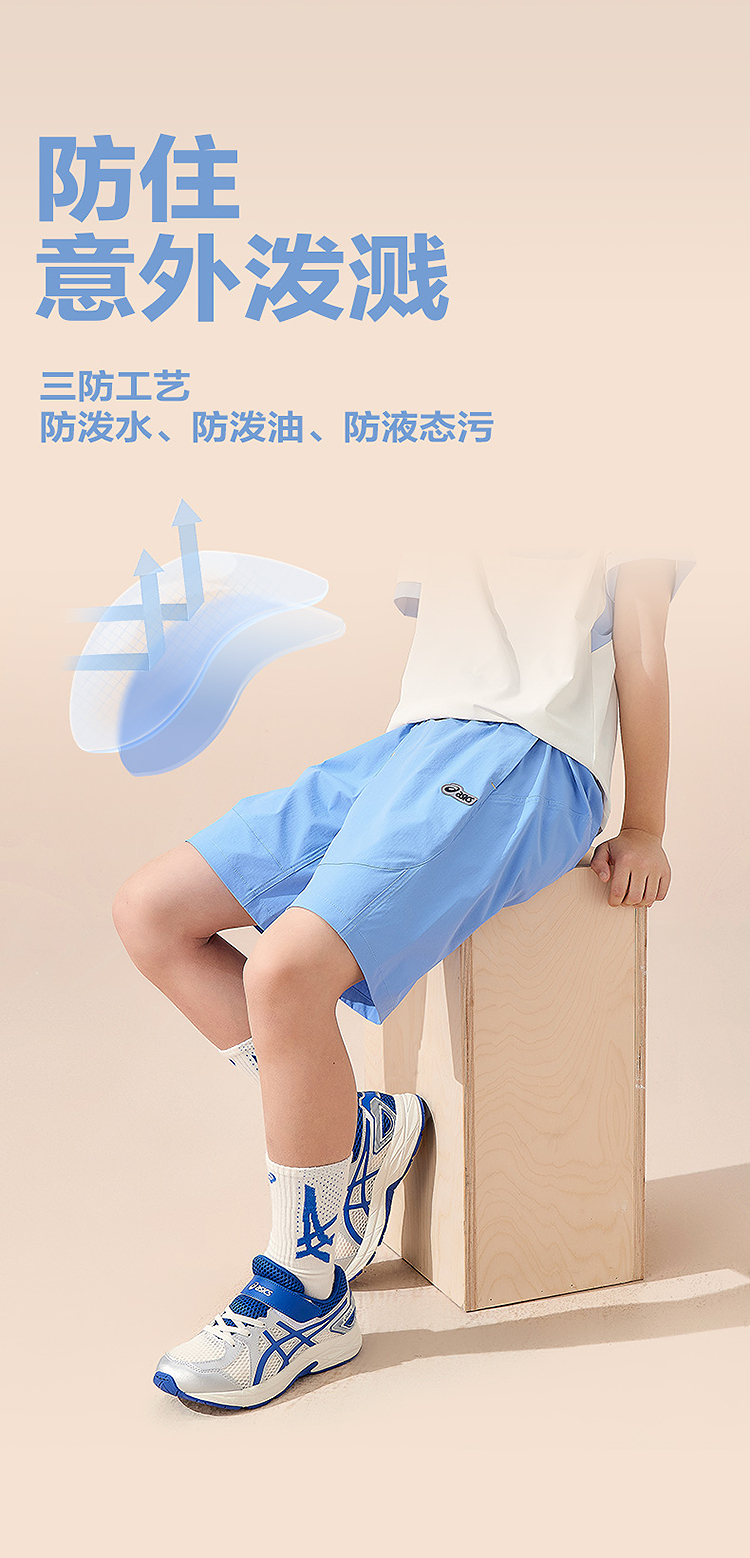 ASICS/亚瑟士童装25年夏季新款男童三防宽松弹力舒适梭织运动中裤