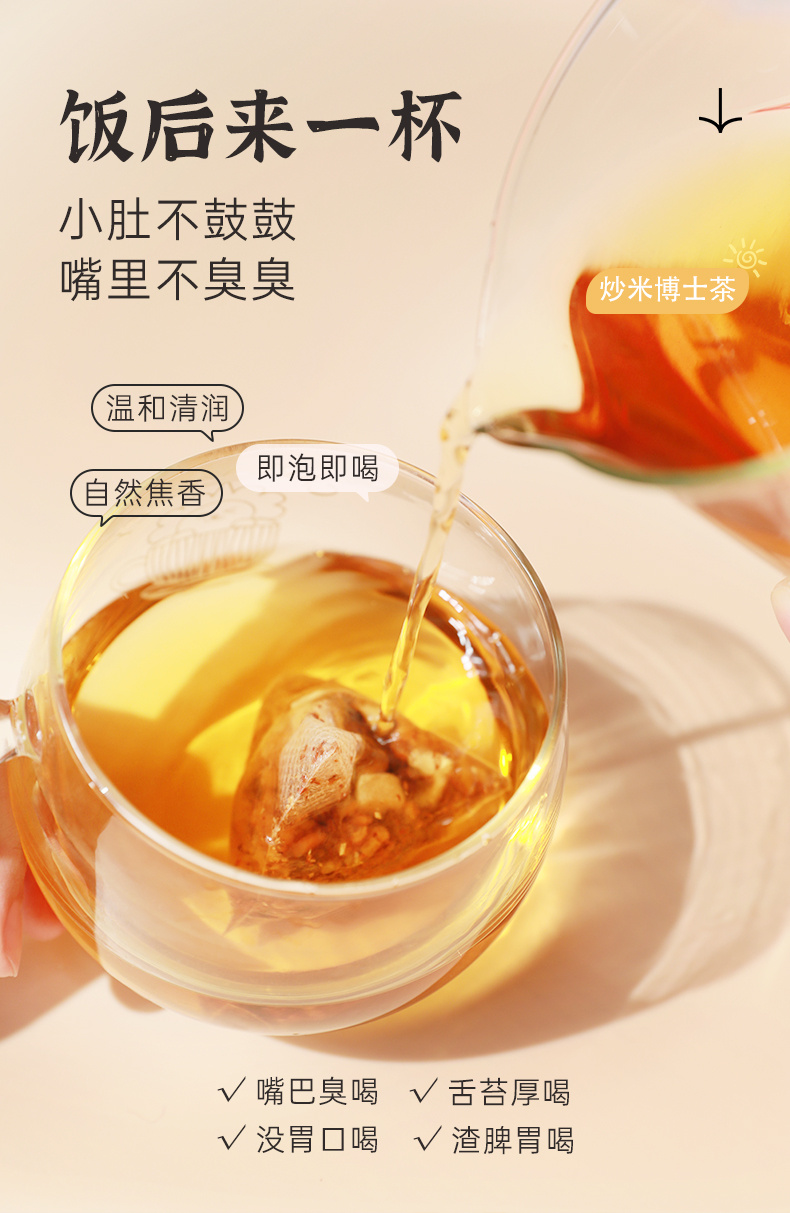 用博士茶的自然甘甜味带出炒米的香味。