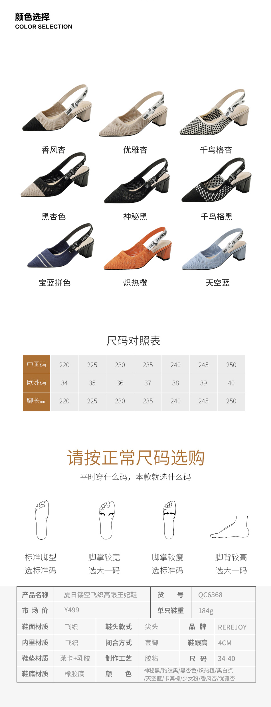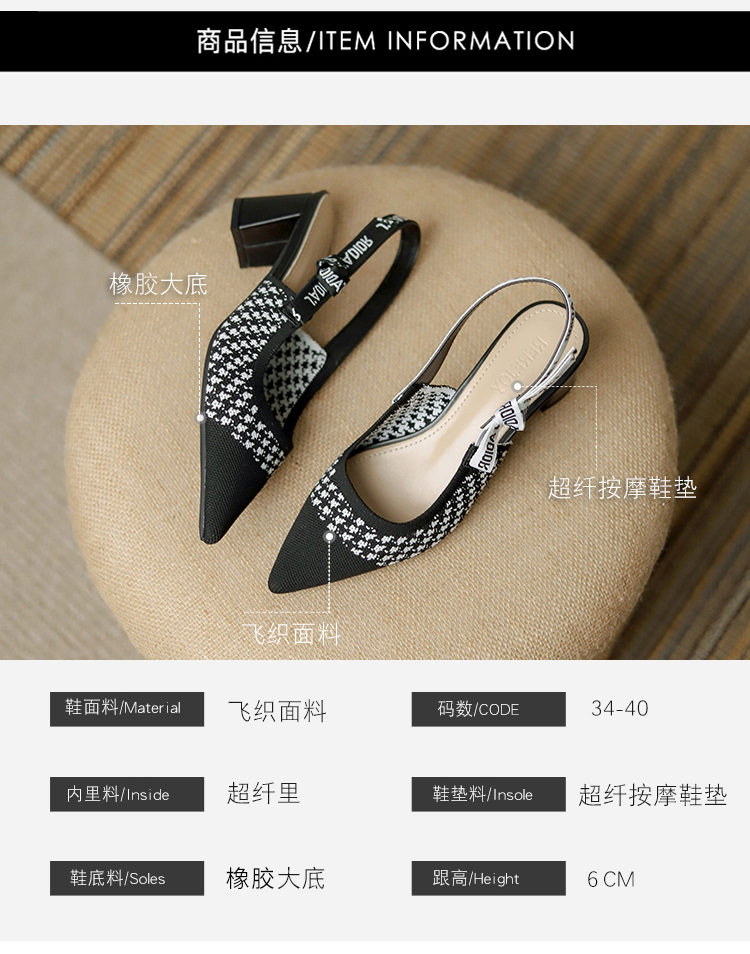 【REREJOY】 半包粗跟飞织王妃鞋 QC6381(年后72小时发货)