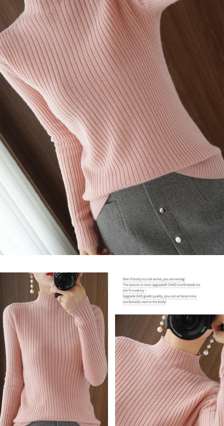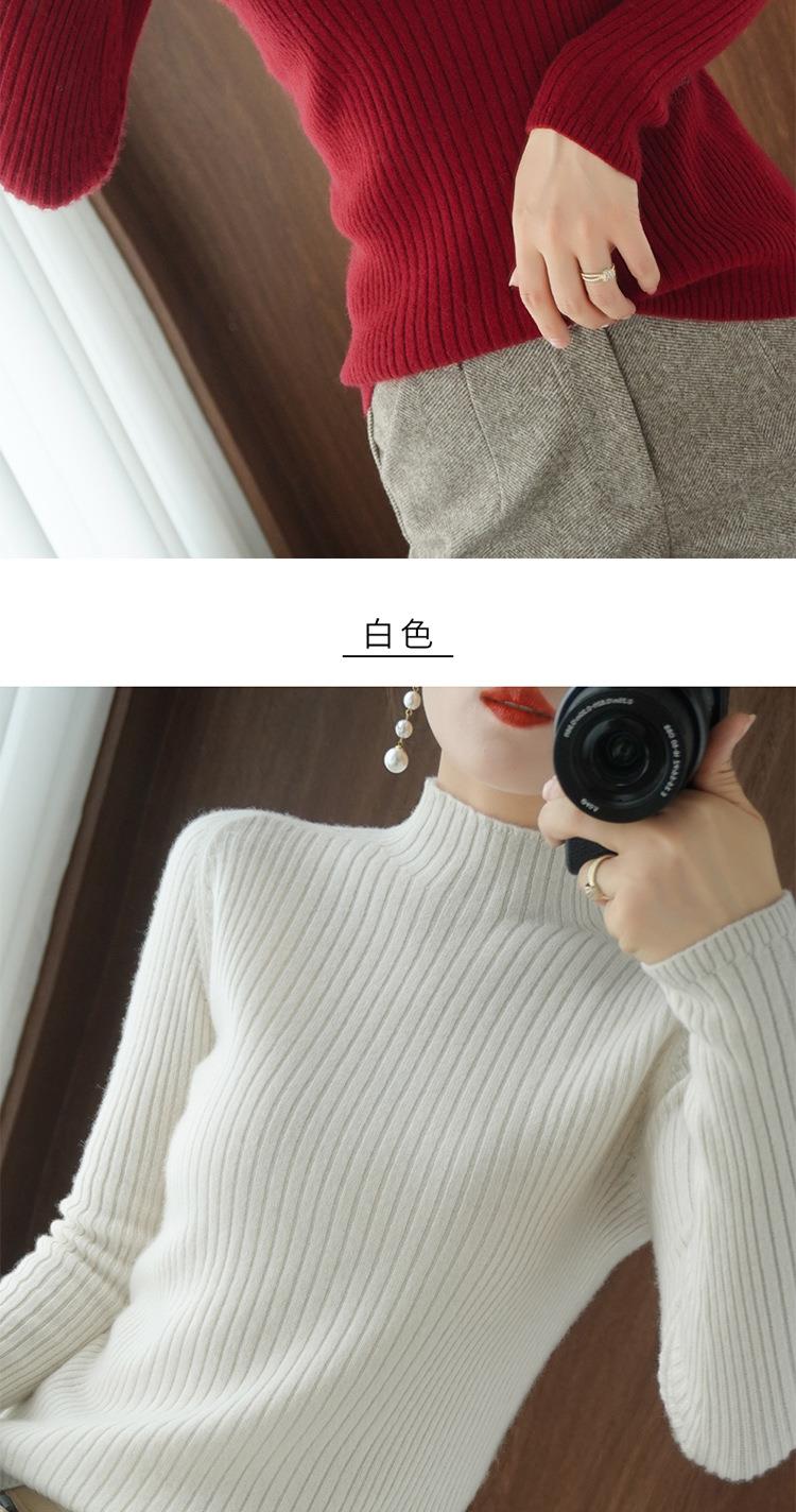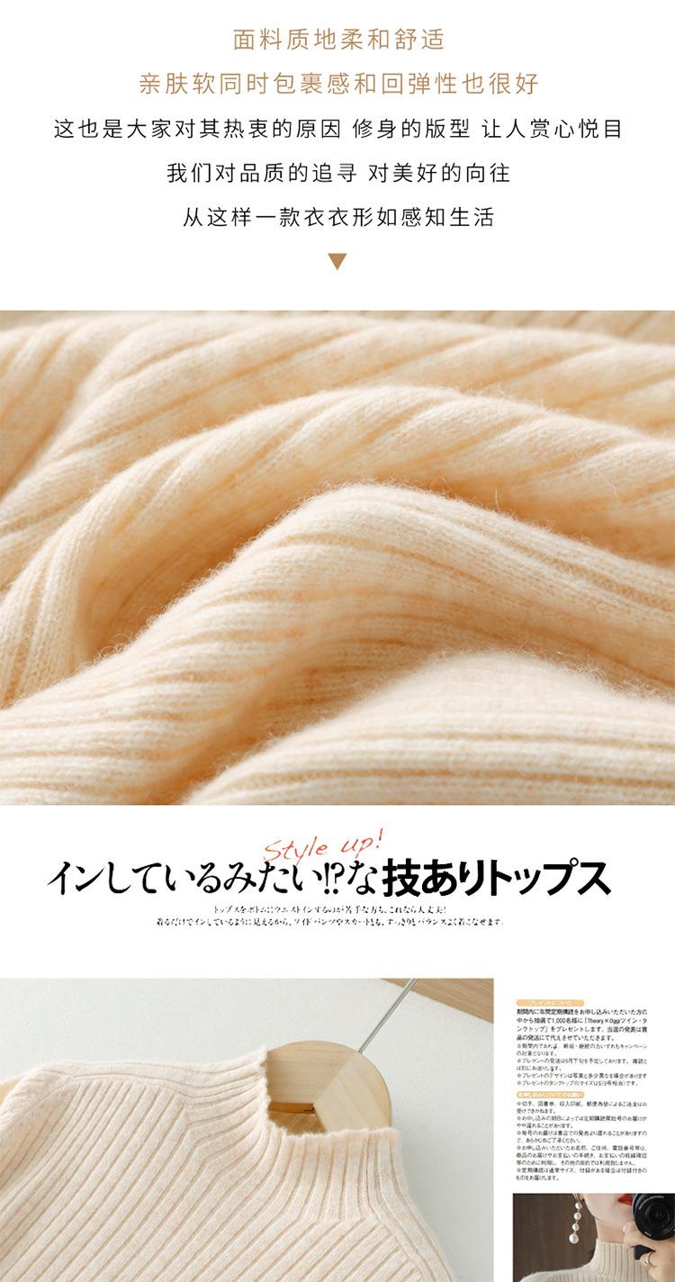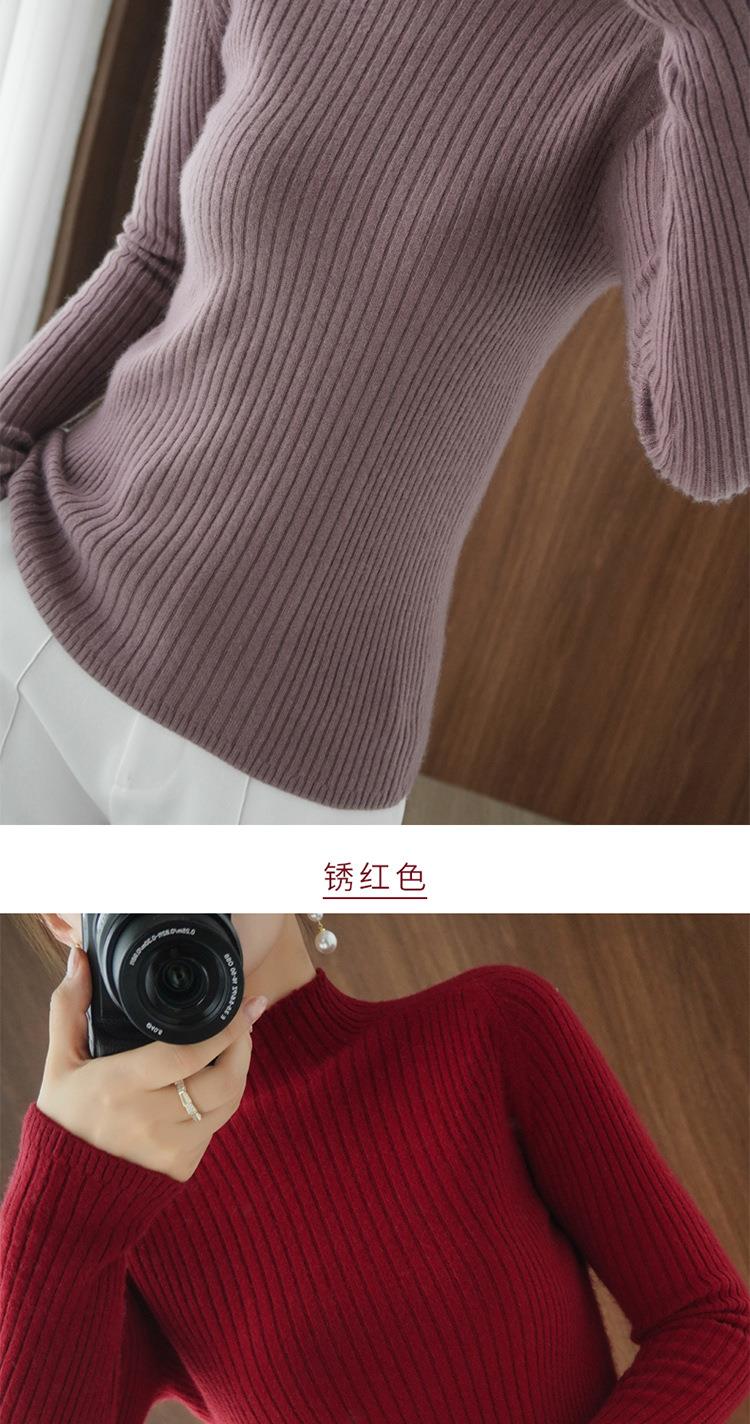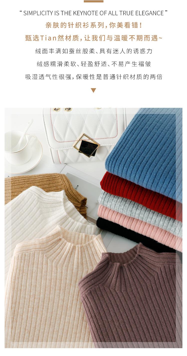 抽条半高领毛衣女2022新款秋冬内搭针织打底衫女士修身短款毛衣女