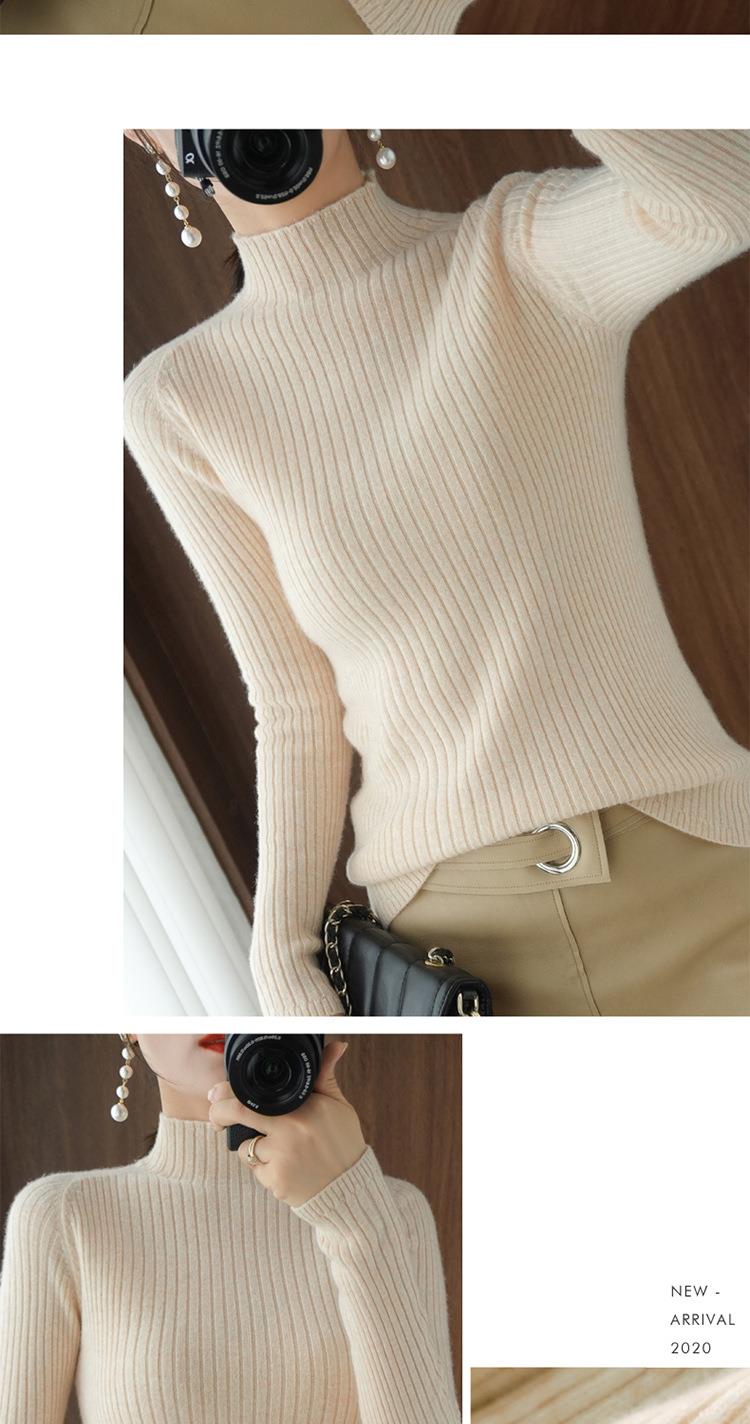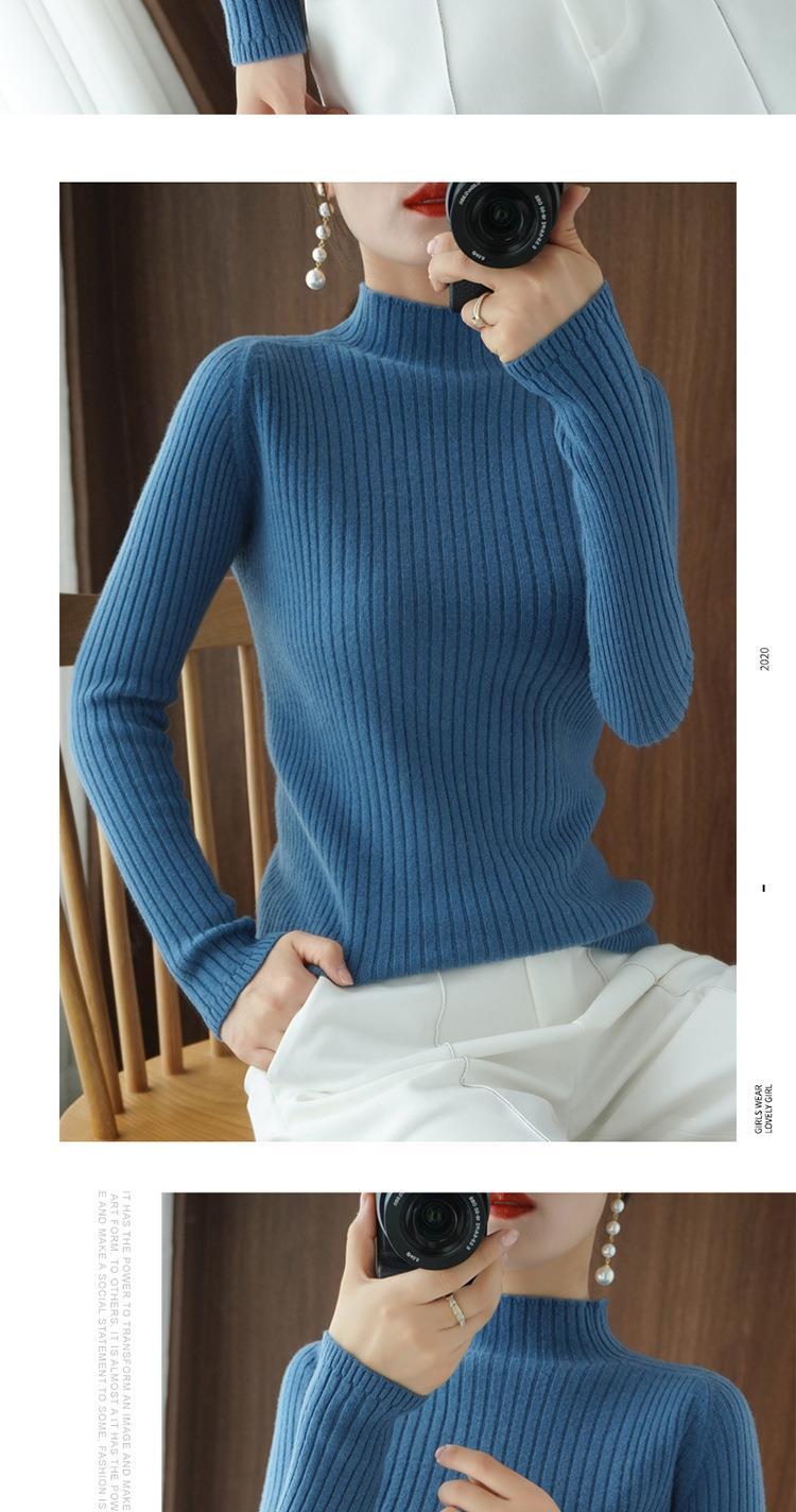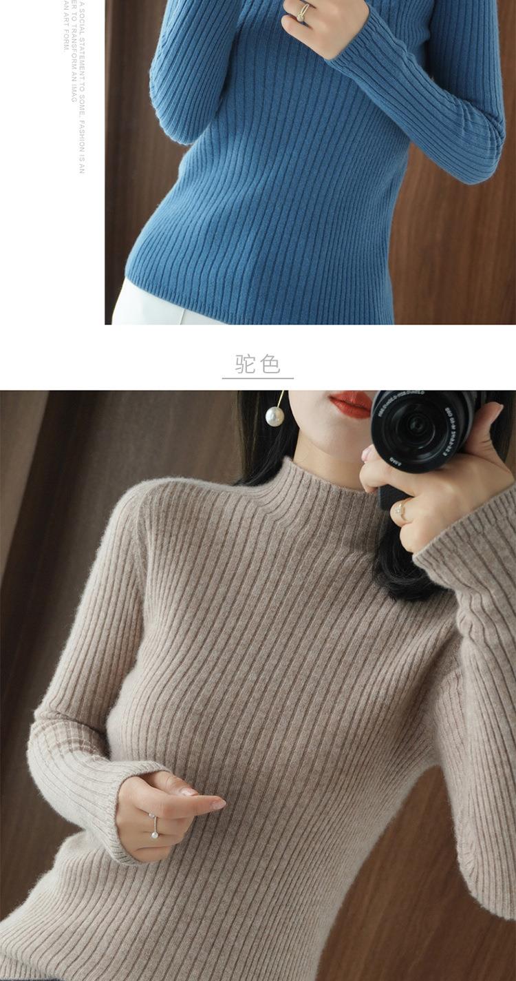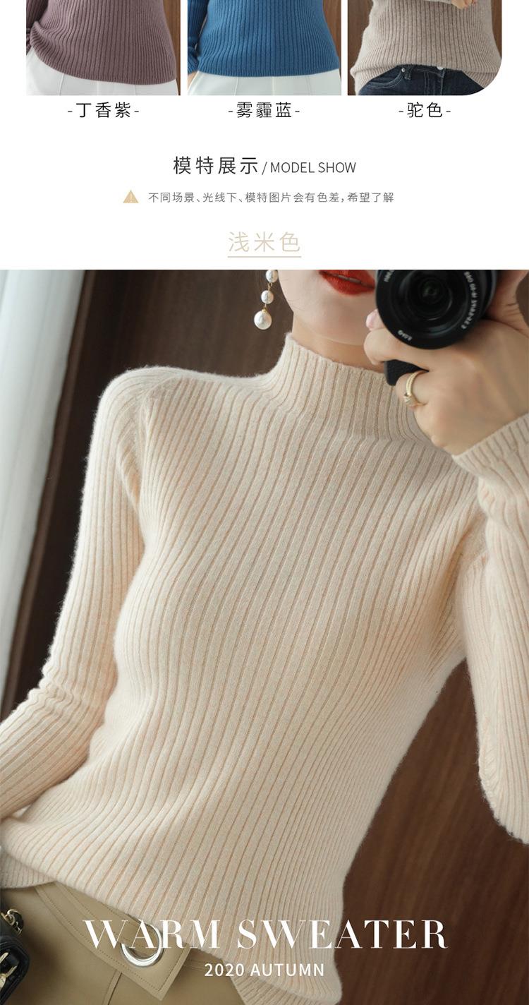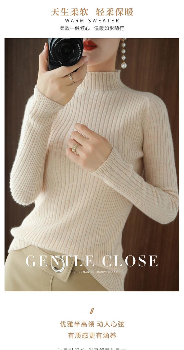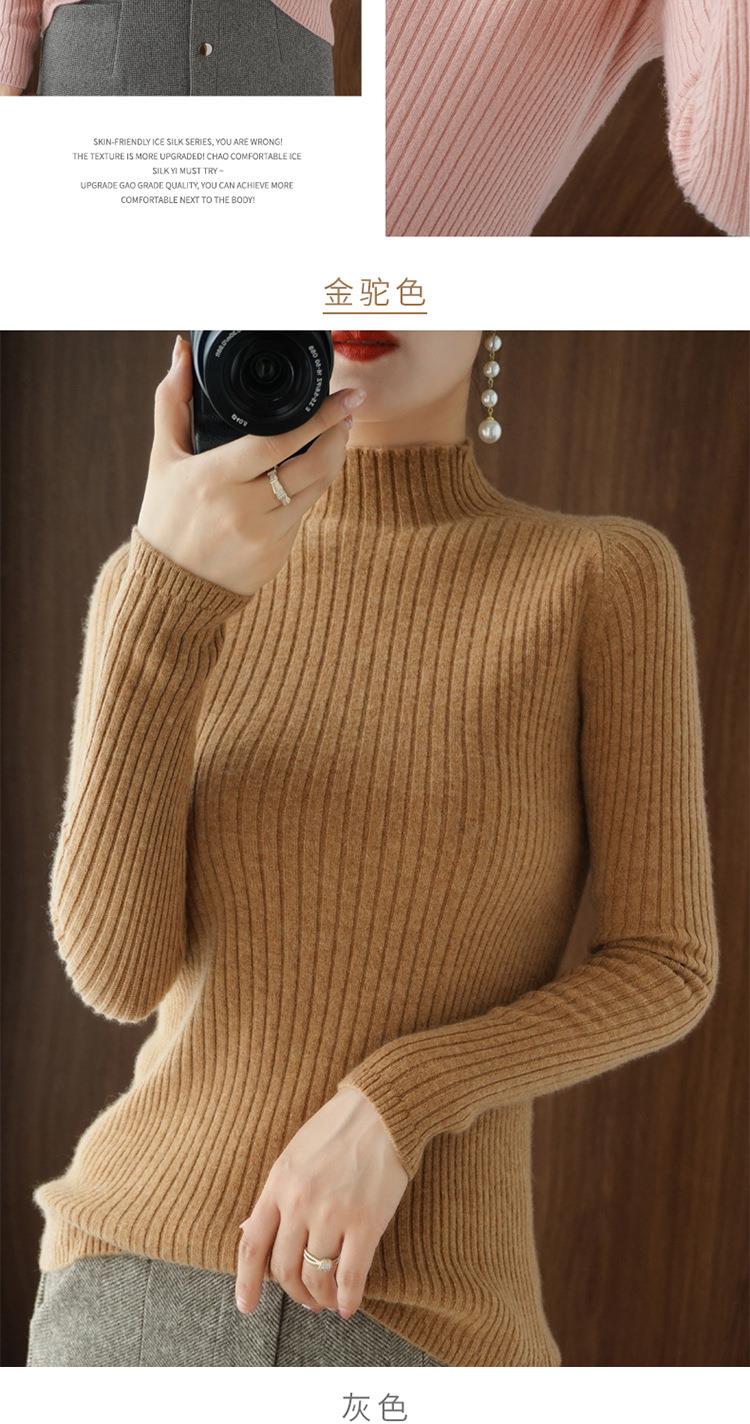 抽条半高领毛衣女2022新款秋冬内搭针织打底衫女士修身短款毛衣女
