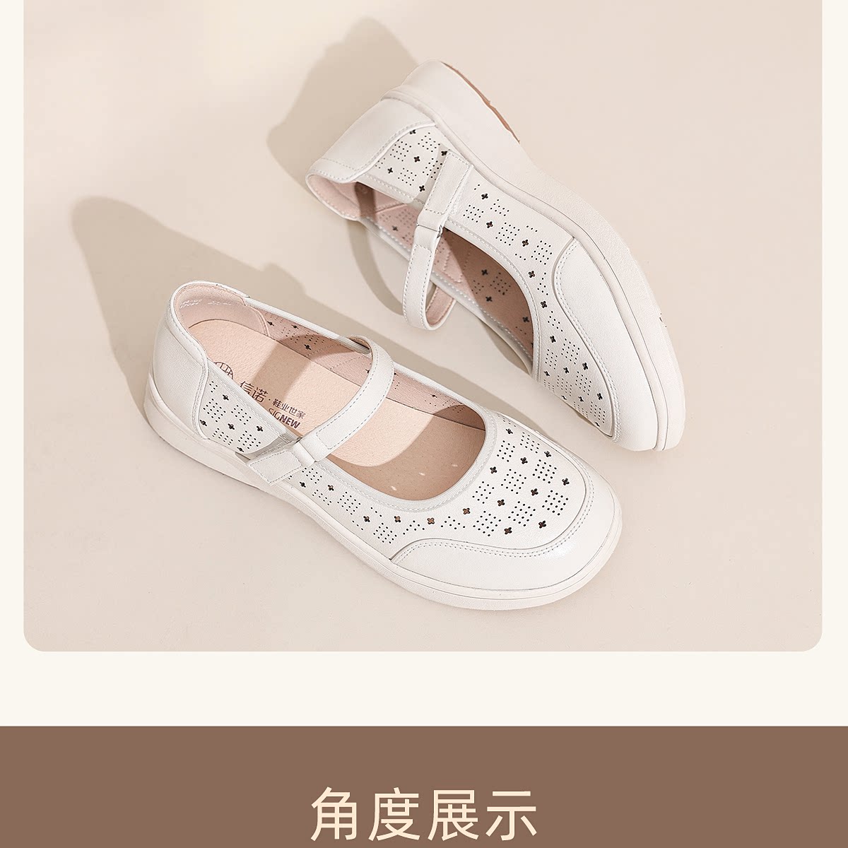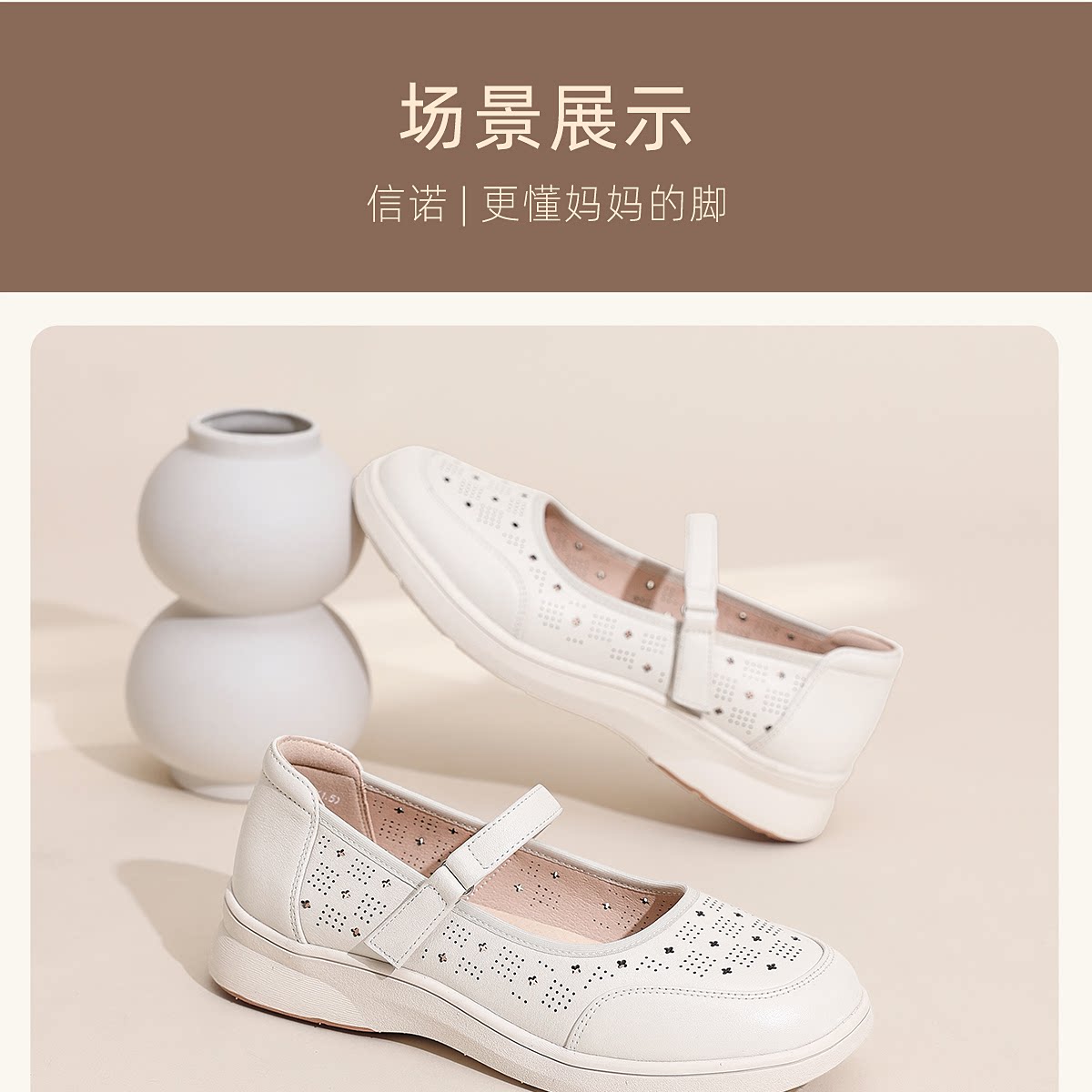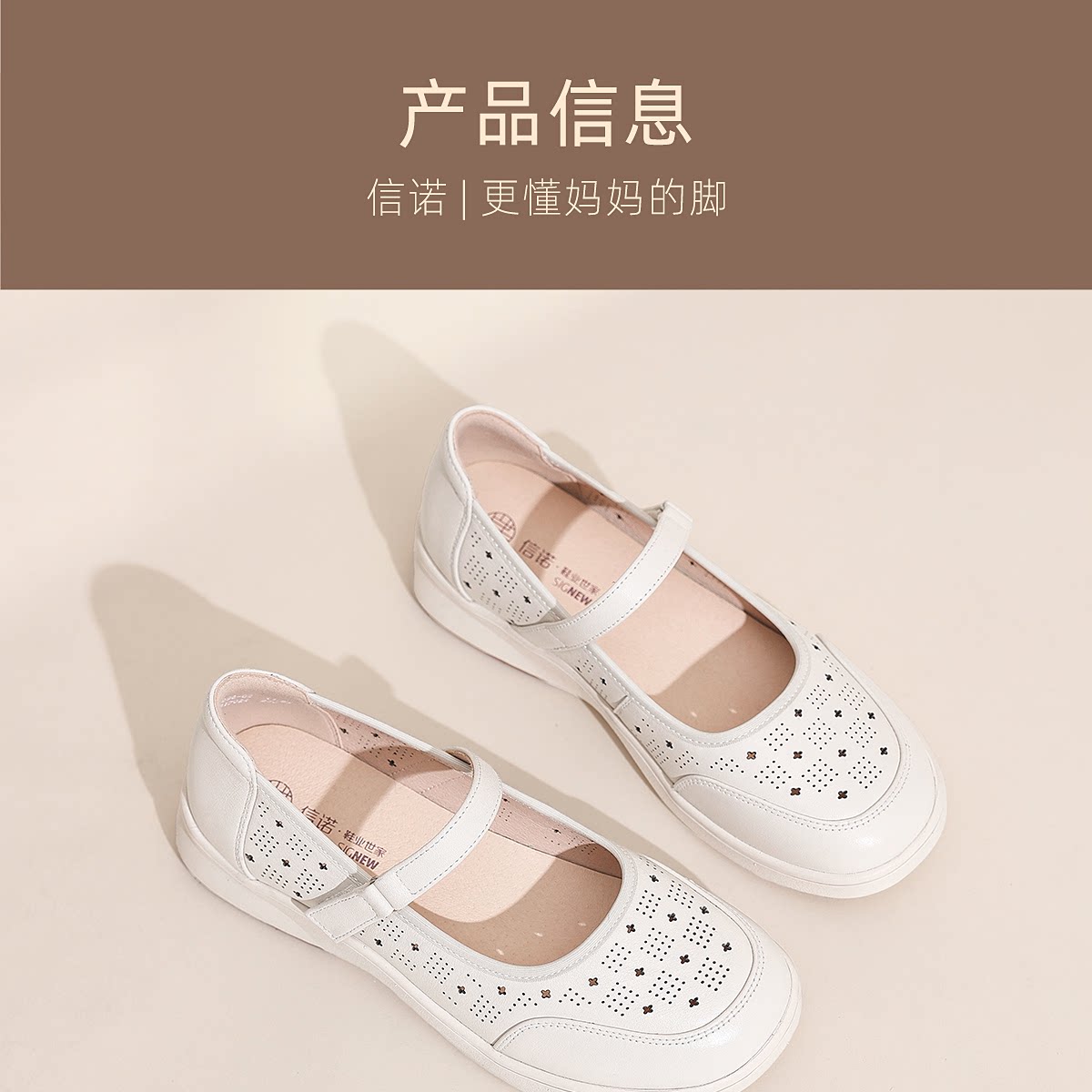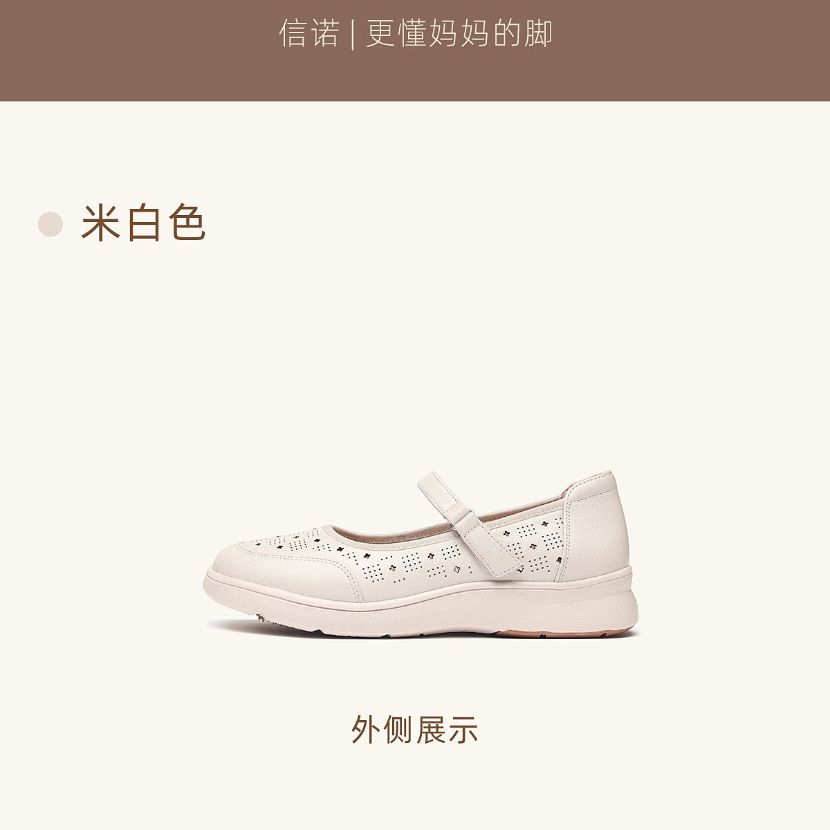 信诺时尚妈妈鞋中老年真皮软底单鞋镂空透气轻便女鞋2026夏季新款6C5096-02