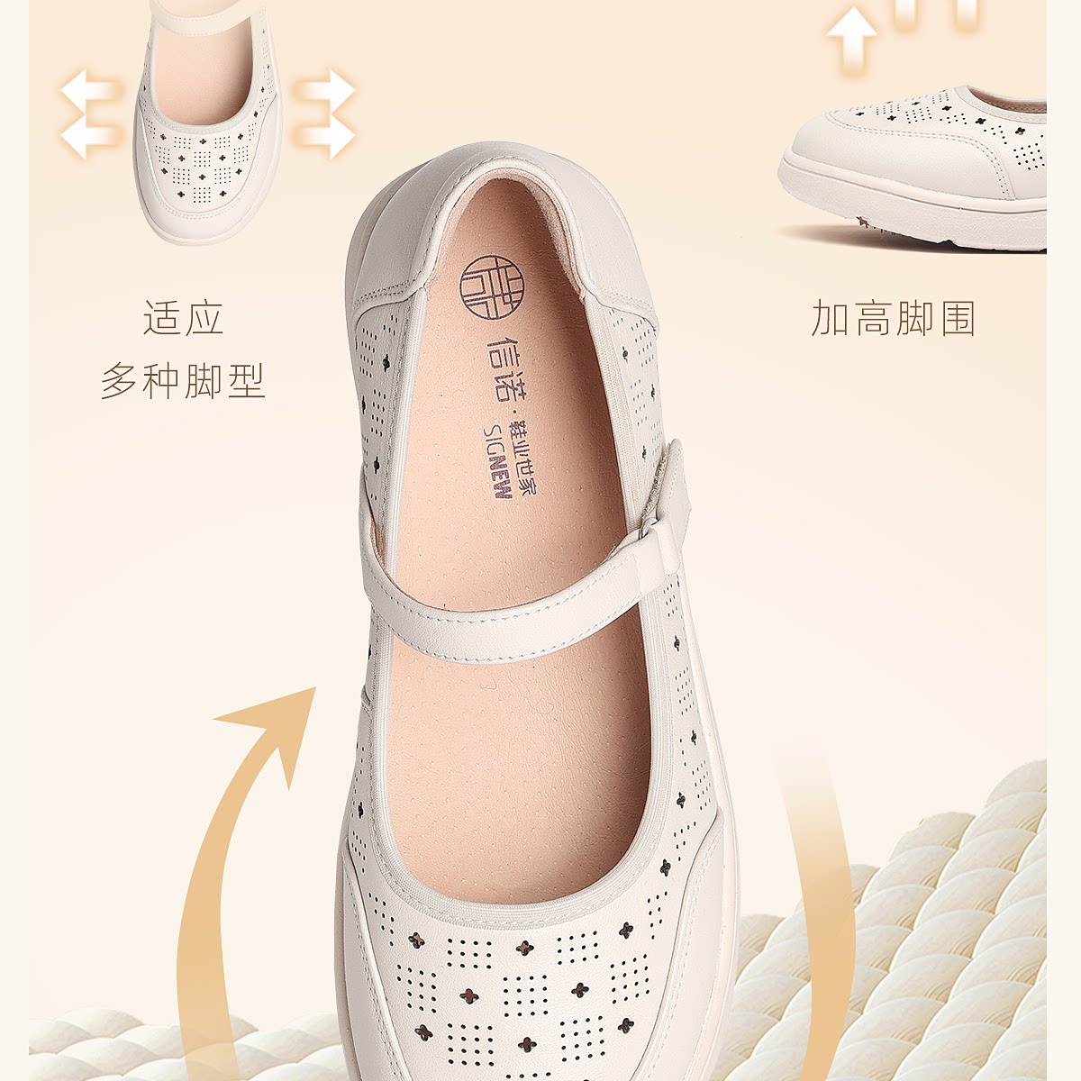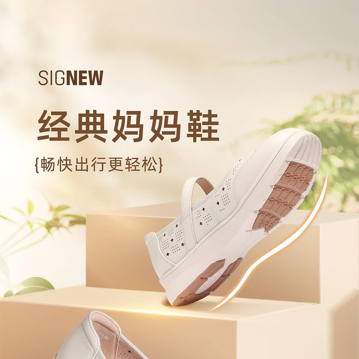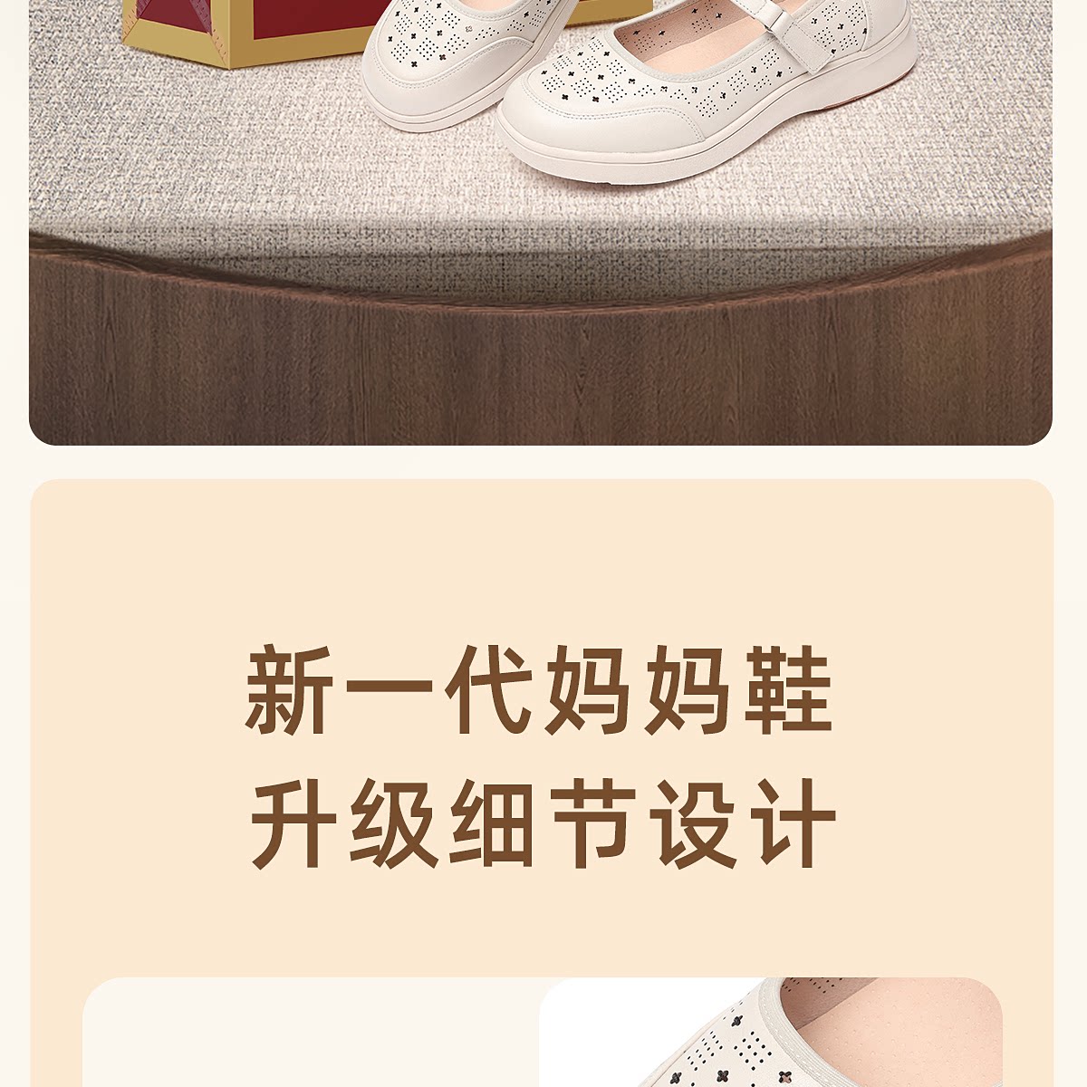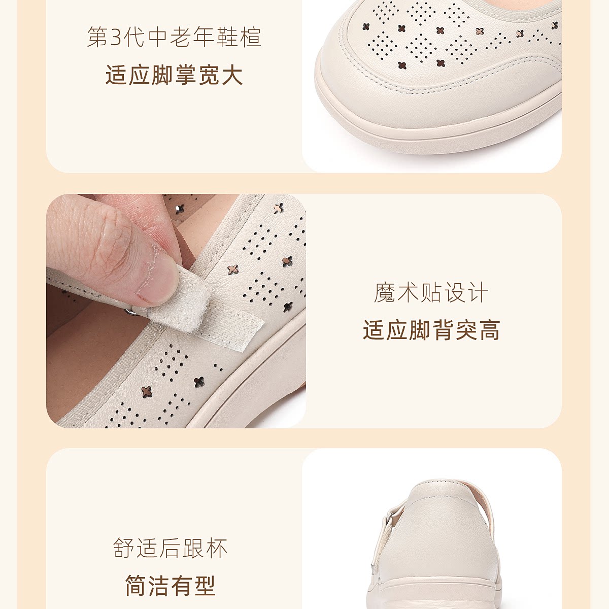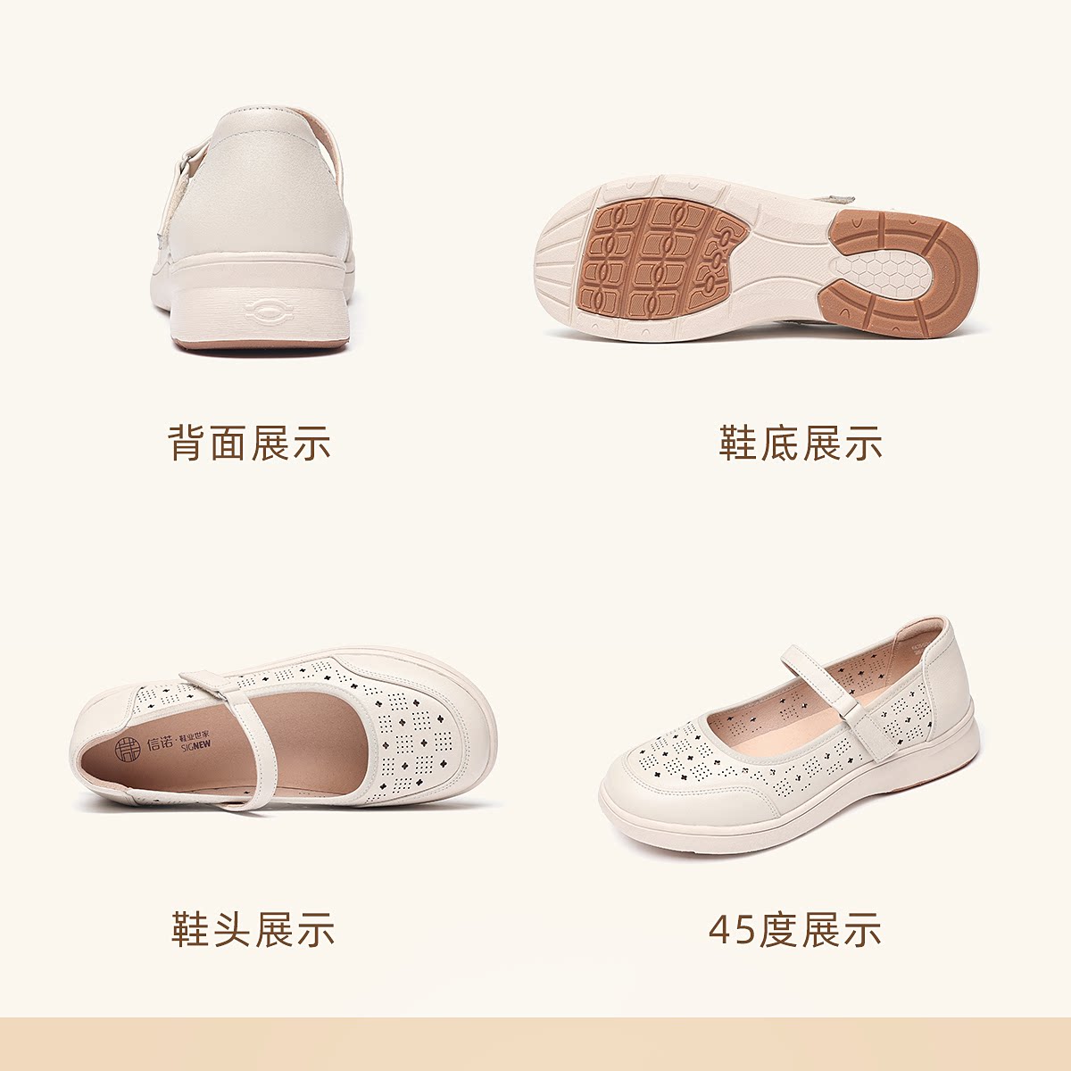 信诺时尚妈妈鞋中老年真皮软底单鞋镂空透气轻便女鞋2026夏季新款6C5096-02