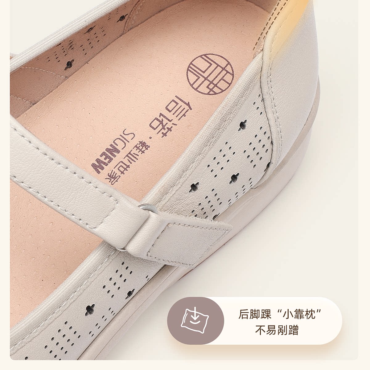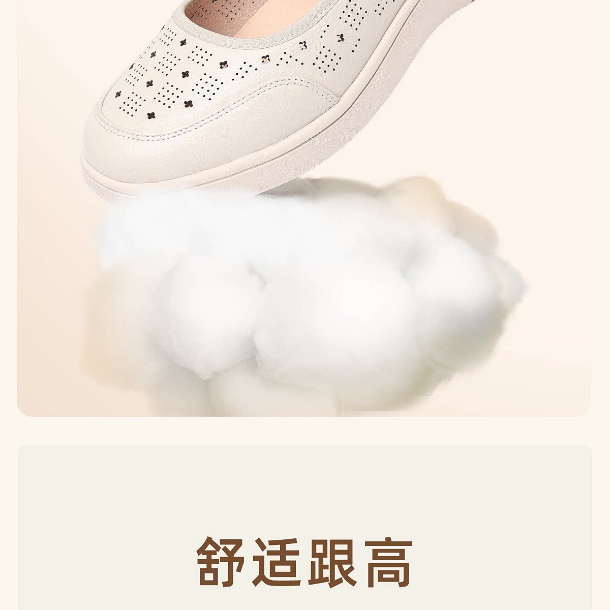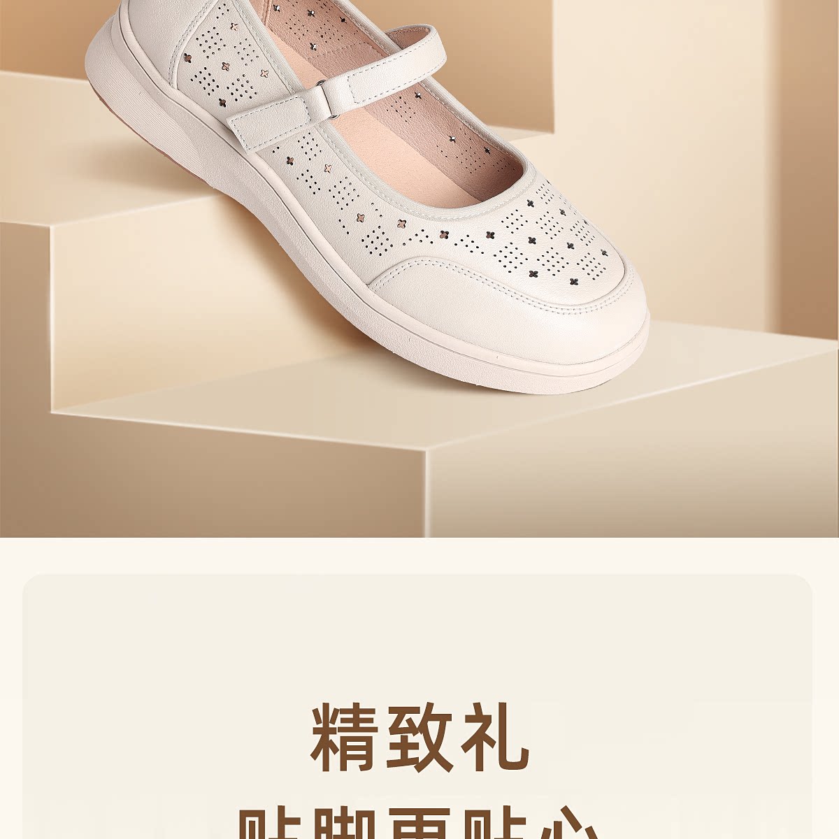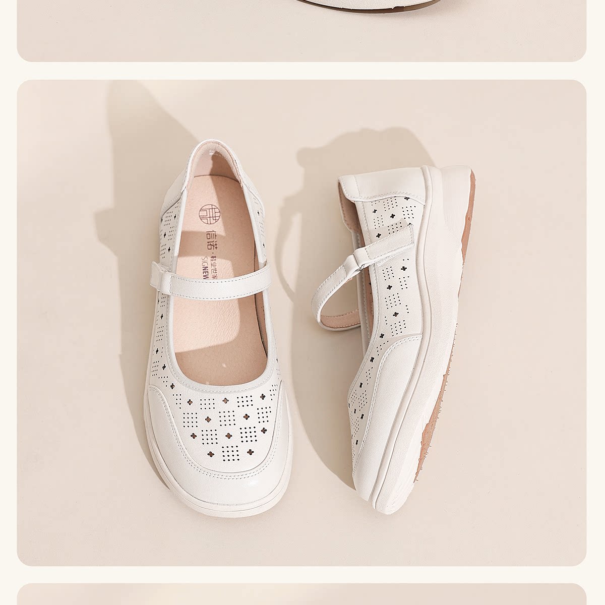 信诺时尚妈妈鞋中老年真皮软底单鞋镂空透气轻便女鞋2026夏季新款6C5096-02