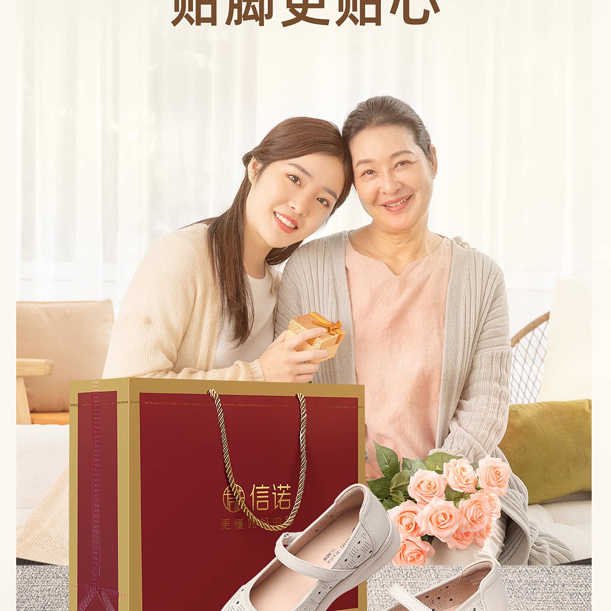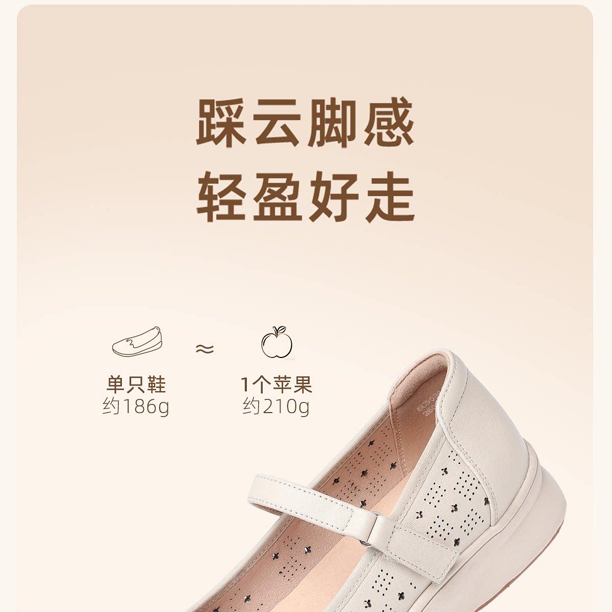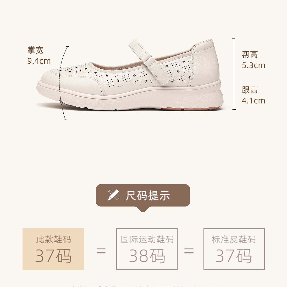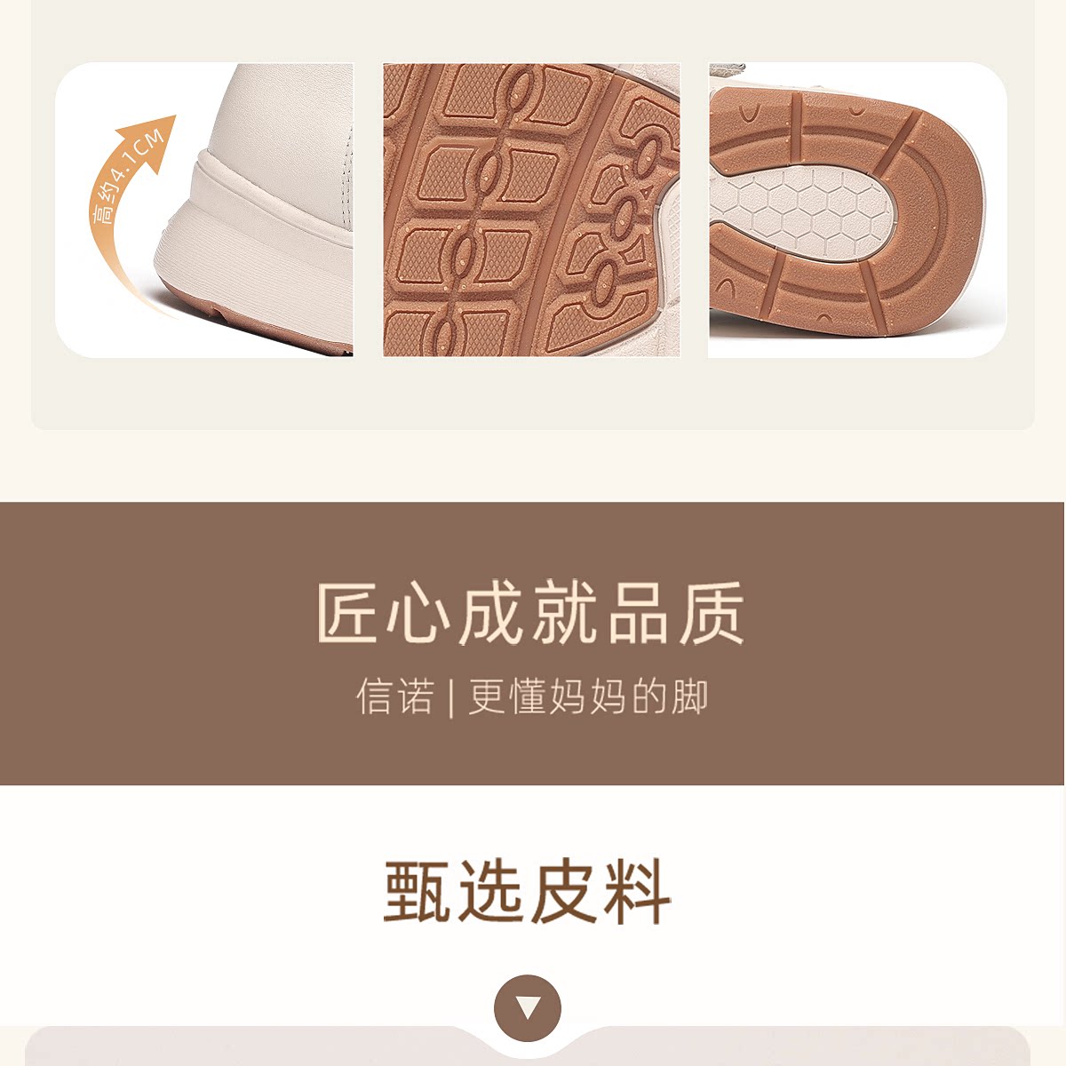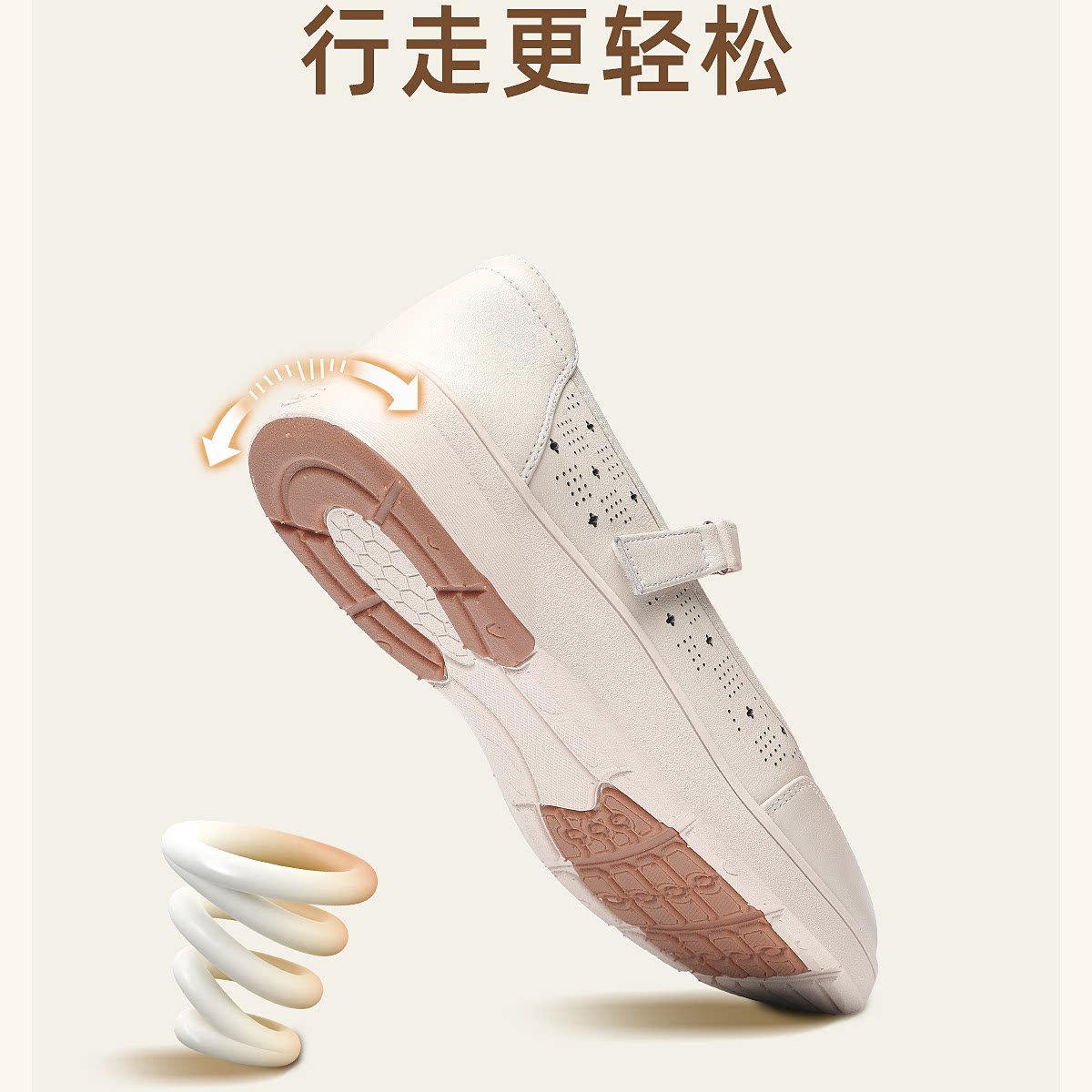 信诺时尚妈妈鞋中老年真皮软底单鞋镂空透气轻便女鞋2026夏季新款6C5096-02