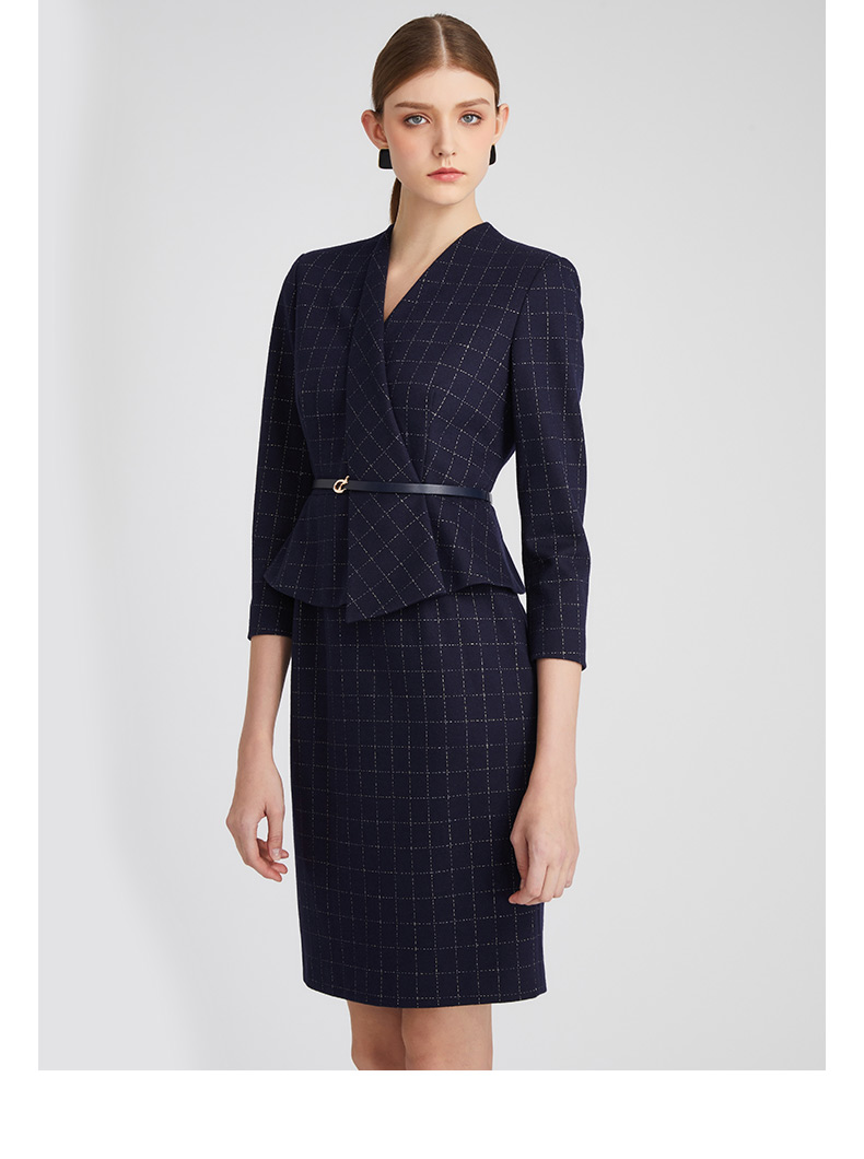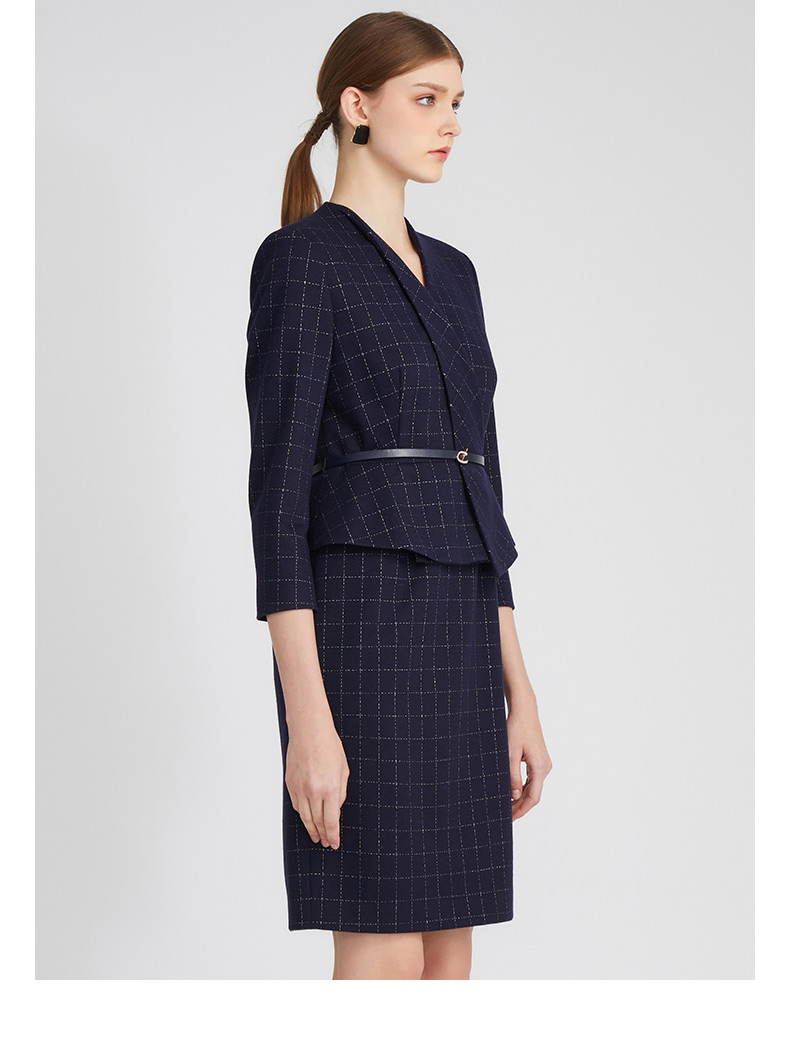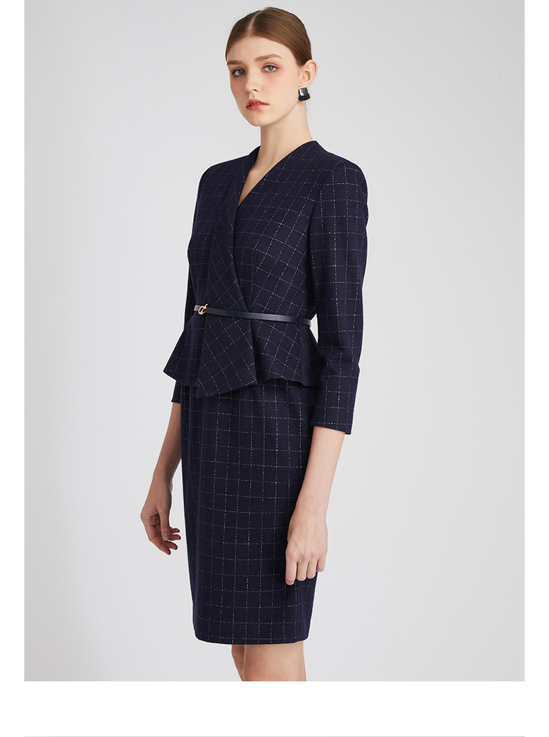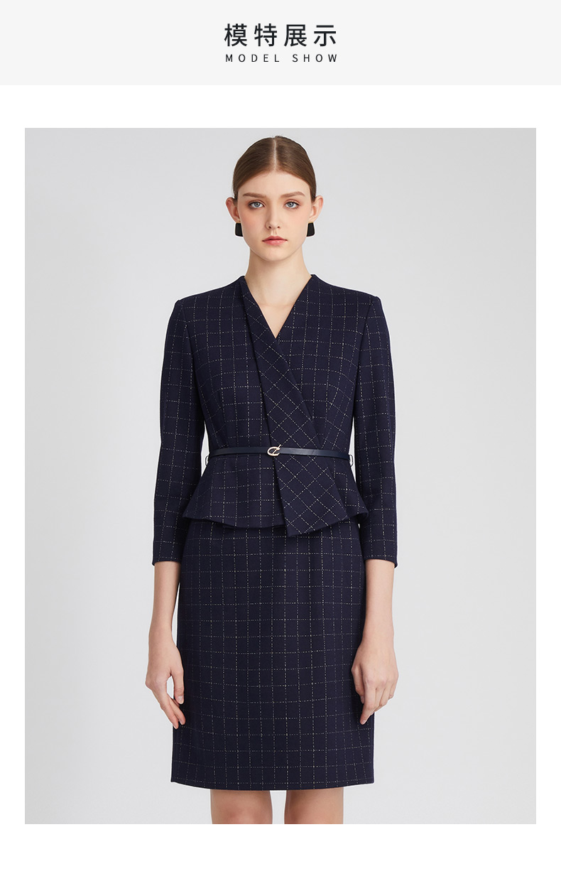 皮尔卡丹女装连衣裙羊毛提花千鸟格纹通勤假两件P2331E2967N0