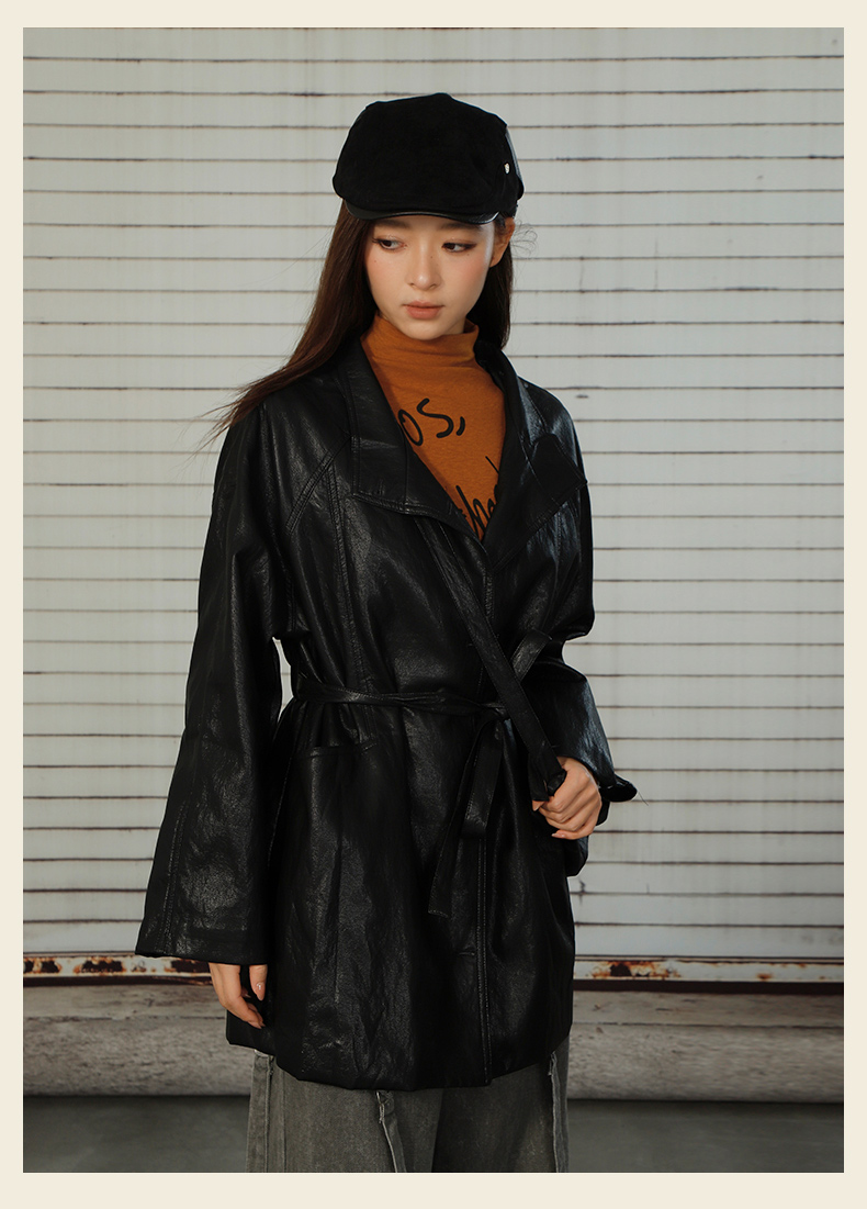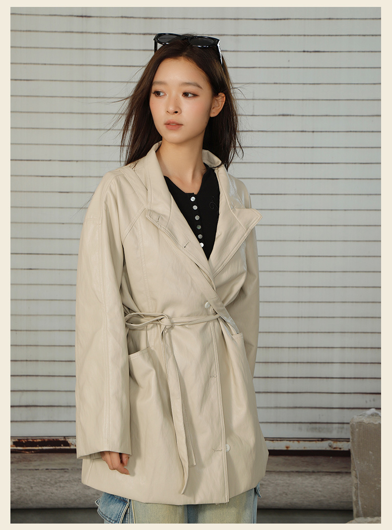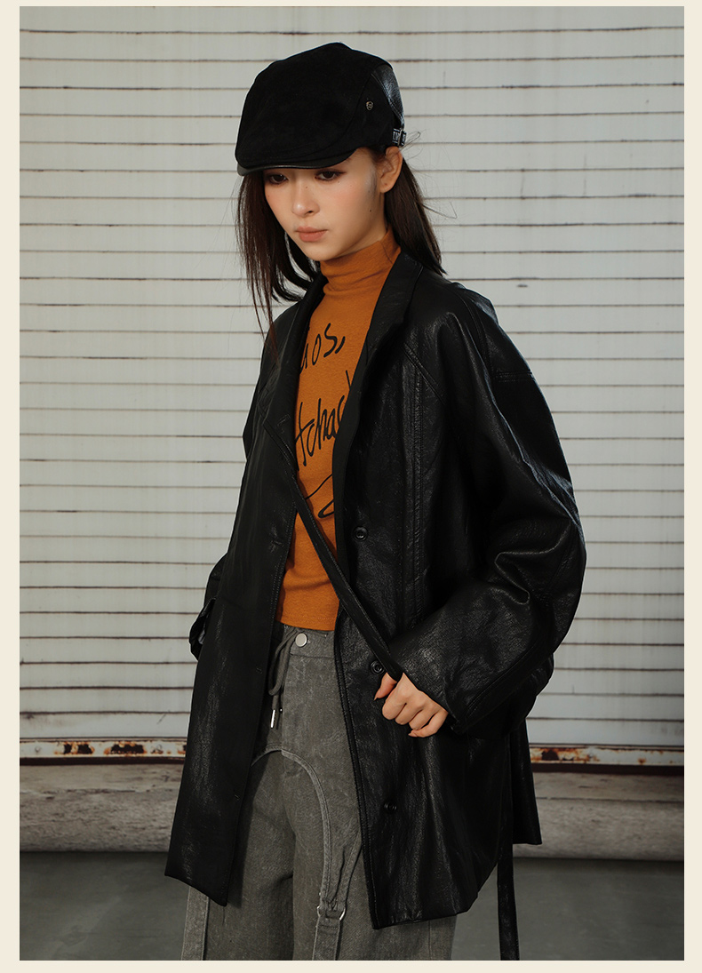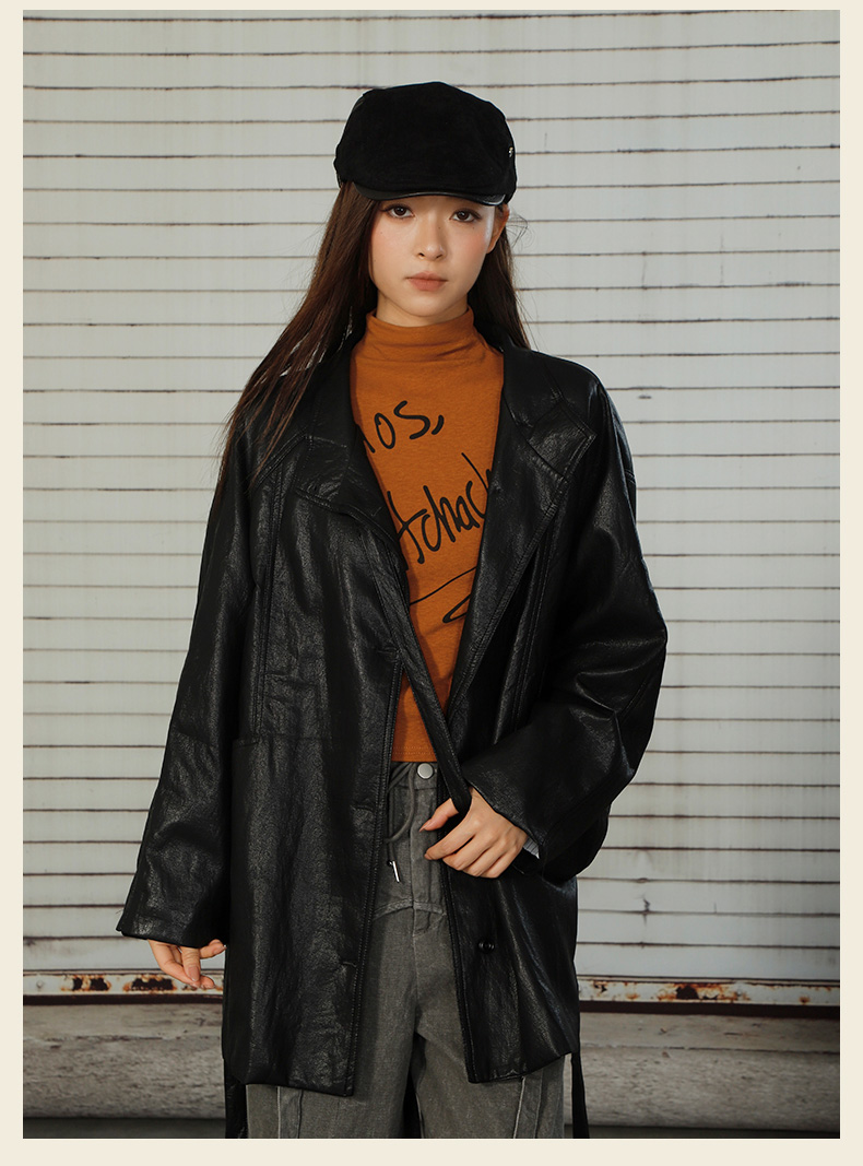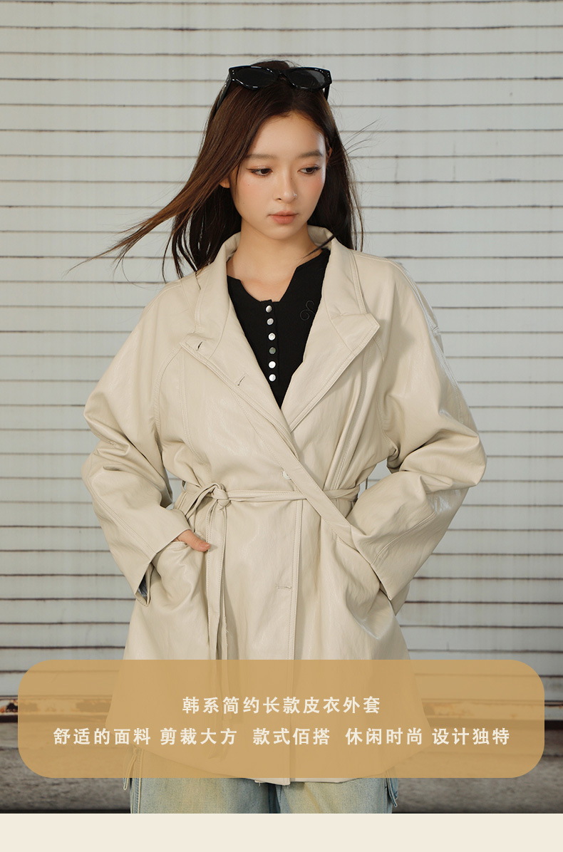 韩系简约长款皮衣外套-纪念日百货门店同款166743111