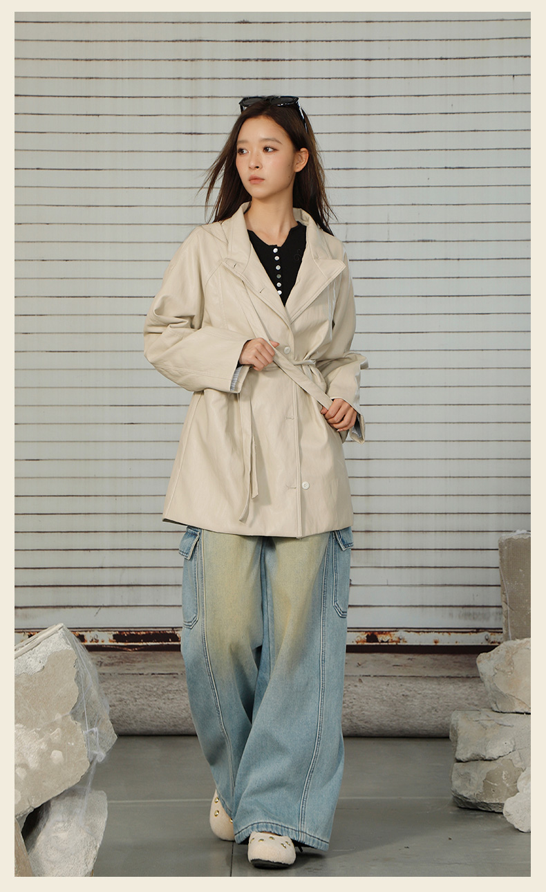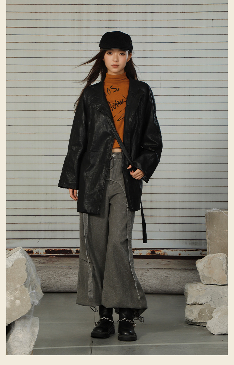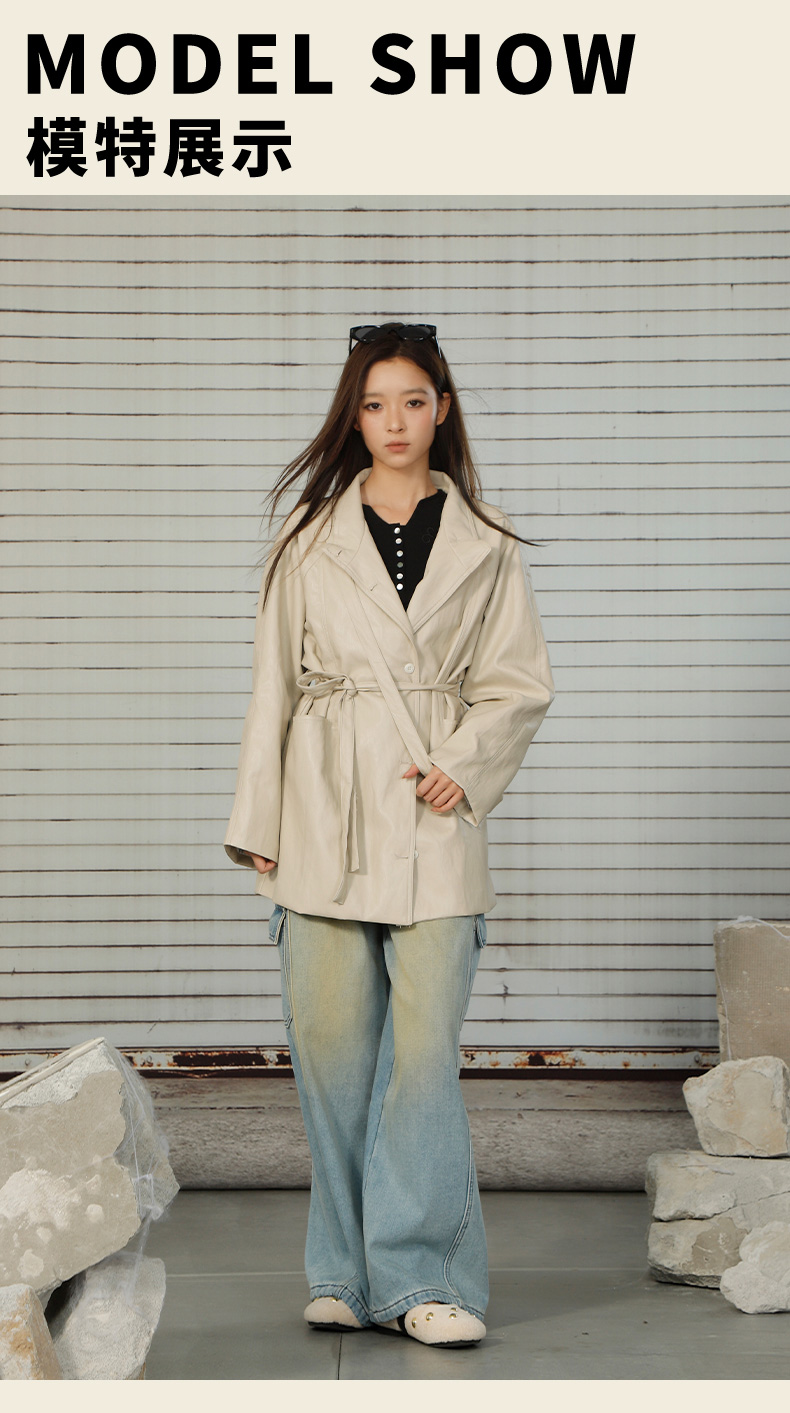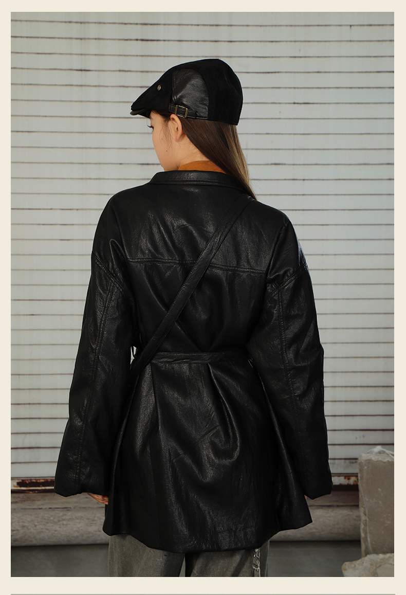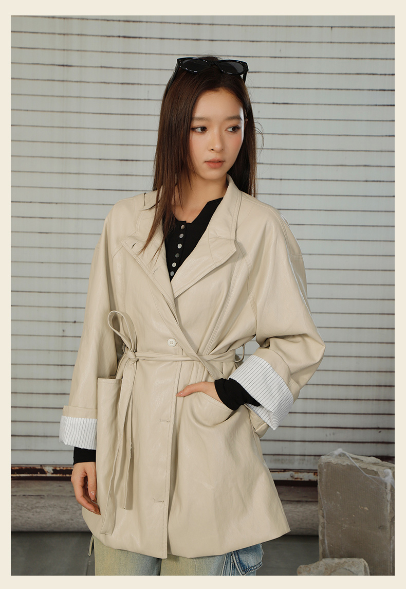 韩系简约长款皮衣外套-纪念日百货门店同款166743111