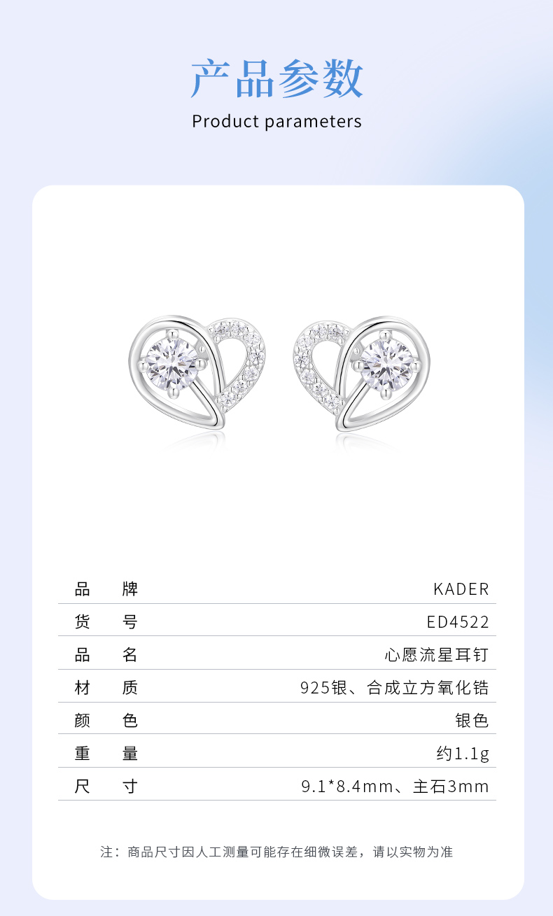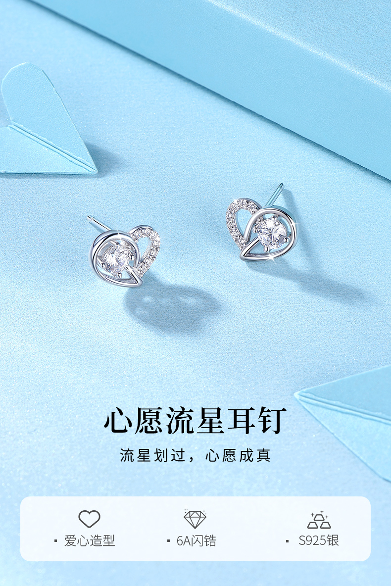 卡蒂罗KADER 心愿流星耳钉 在逃公主小众闪耀璀璨流星设计养耳洞 灵动镶嵌闪锆轻奢简约甜美气质 925银 耳钉 女款 银色