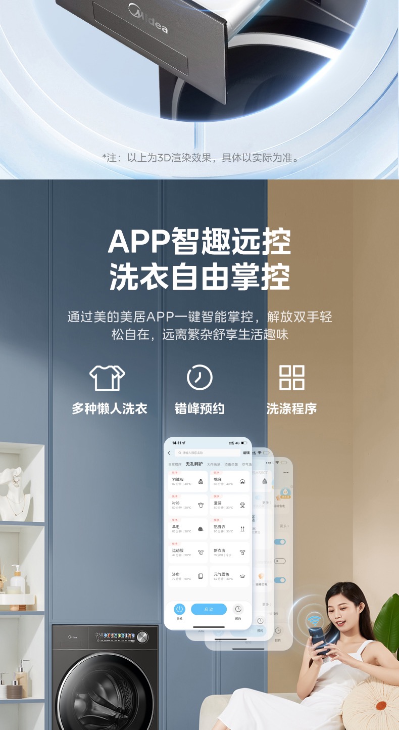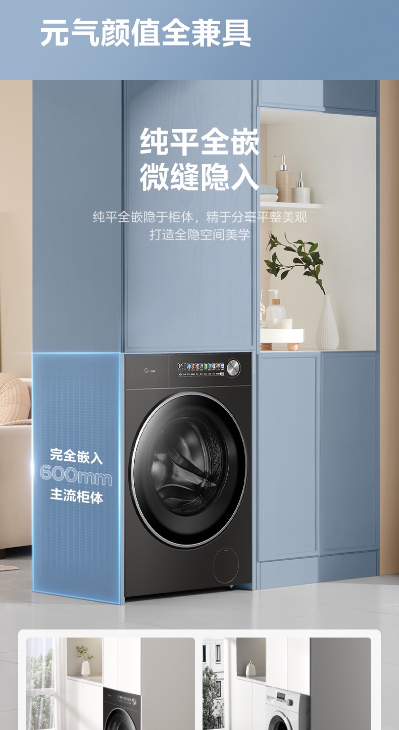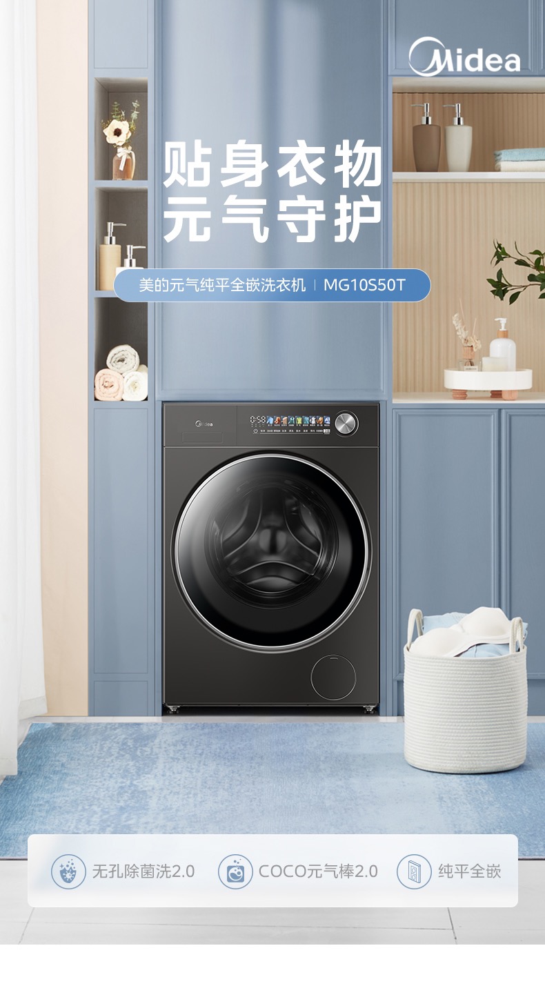 美的(252175)MG10S50T 滚筒洗衣机 松露灰 220V,1Ph 50Hz 转速1400 不带银离子 无孔除菌洗2.0 COCO元气棒2.0 纯平全嵌