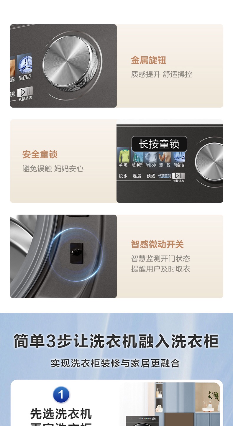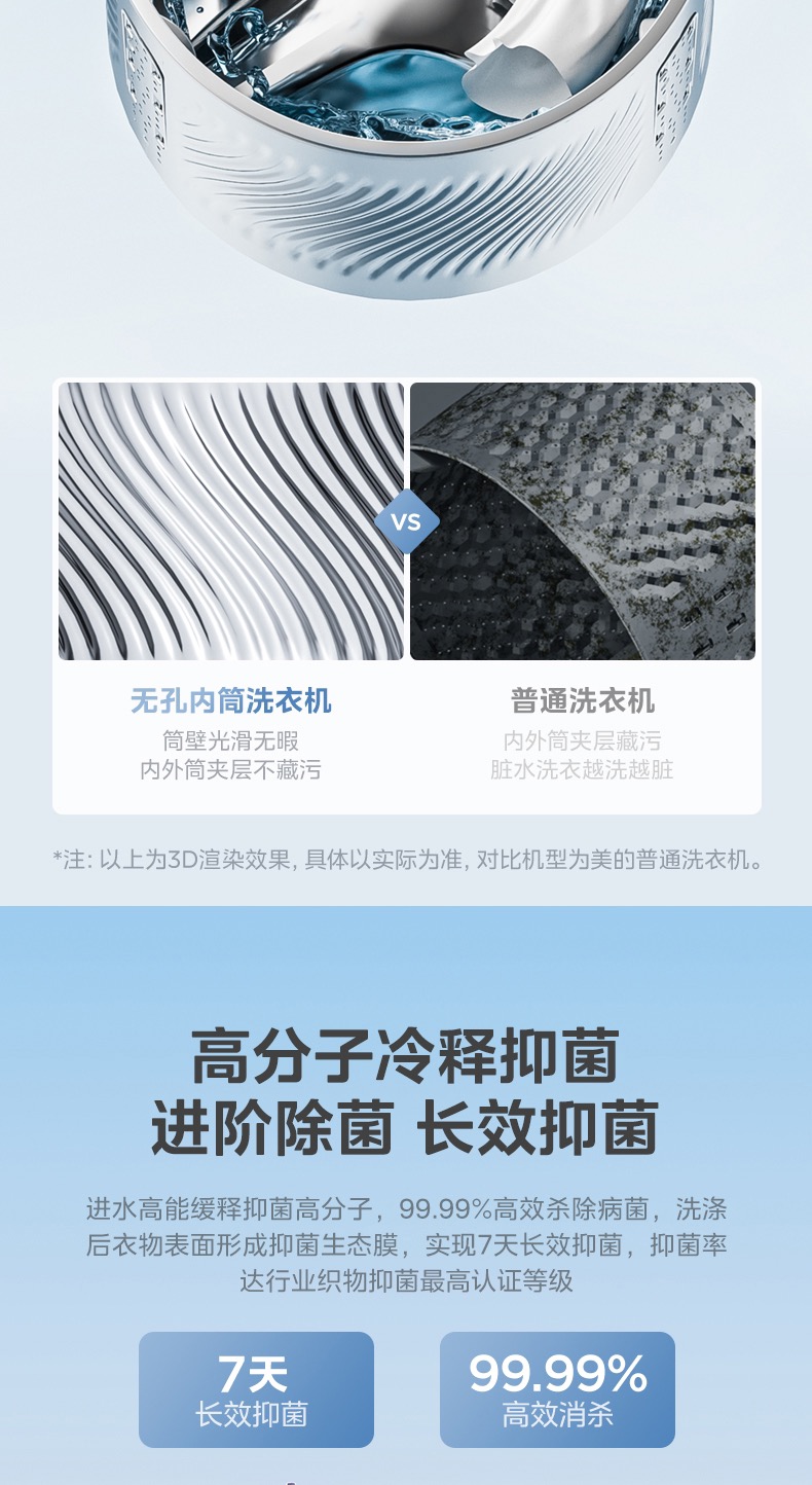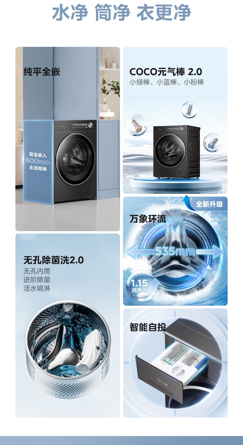 美的(252175)MG10S50T 滚筒洗衣机 松露灰 220V,1Ph 50Hz 转速1400 不带银离子 无孔除菌洗2.0 COCO元气棒2.0 纯平全嵌