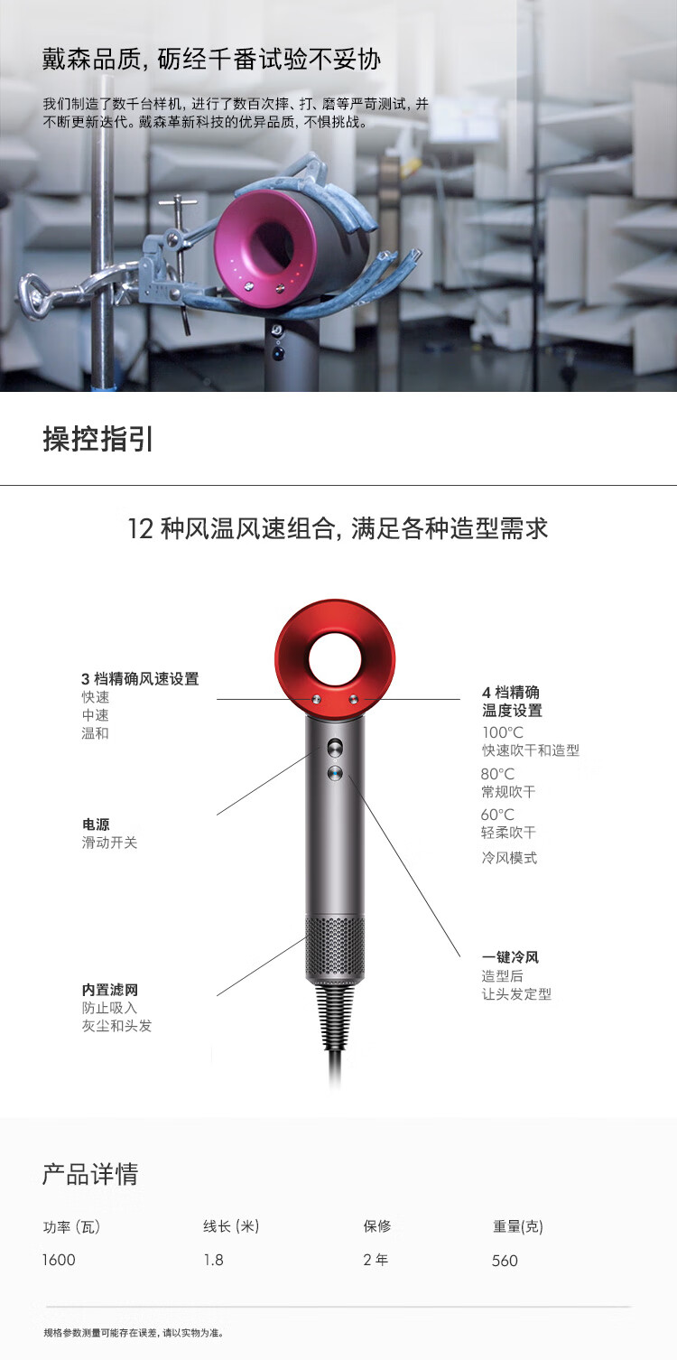 戴森(Dyson) HD08吹风机 Supersonic 电吹风 负离子 中国红