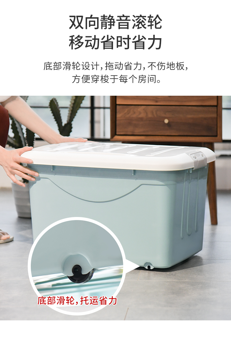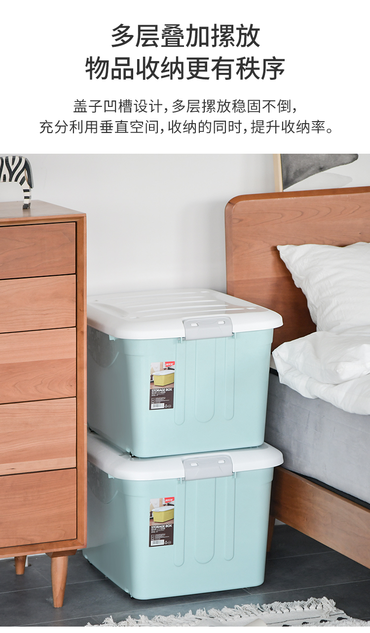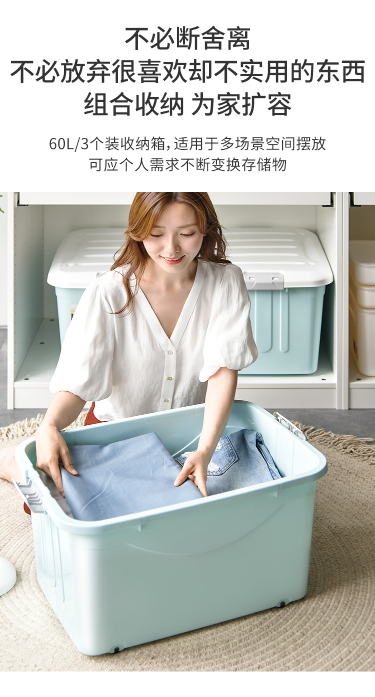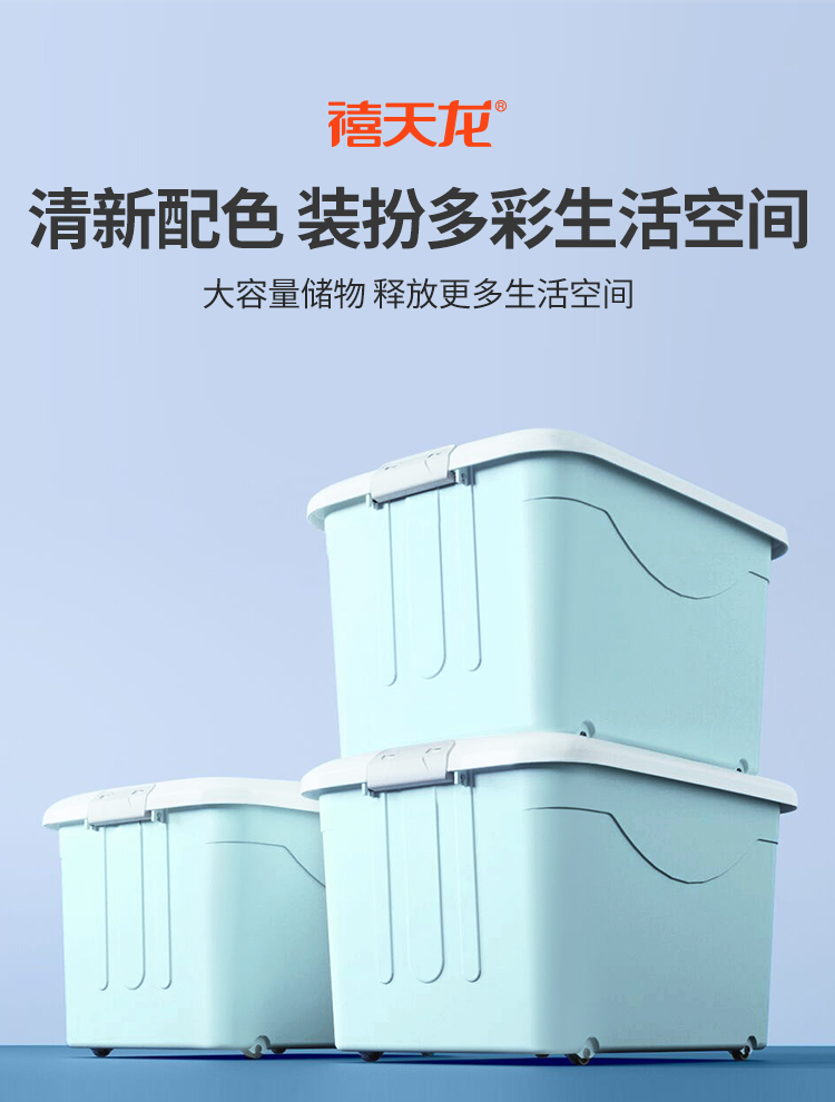 禧天龙 衣物被子收纳箱 儿童玩具整理箱 文件书籍储物箱 抗压搬家打包箱 带滑轮 60升3个装