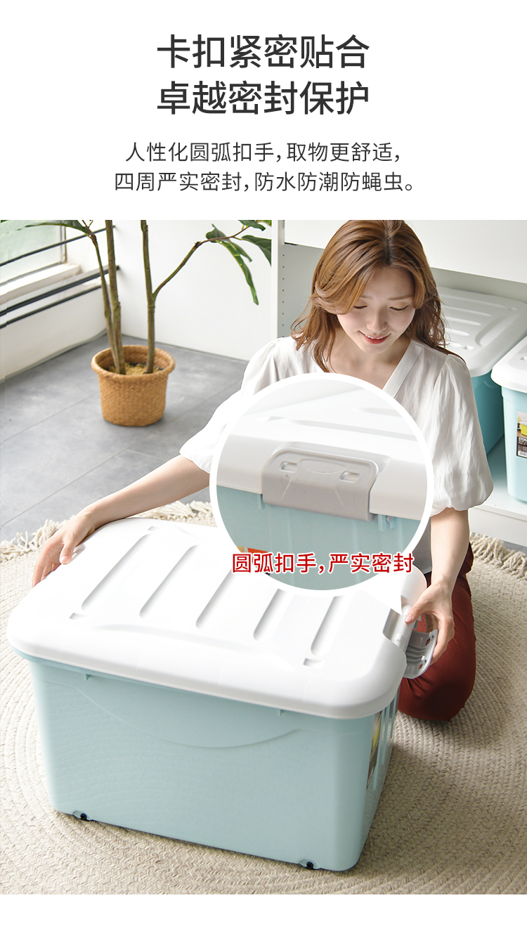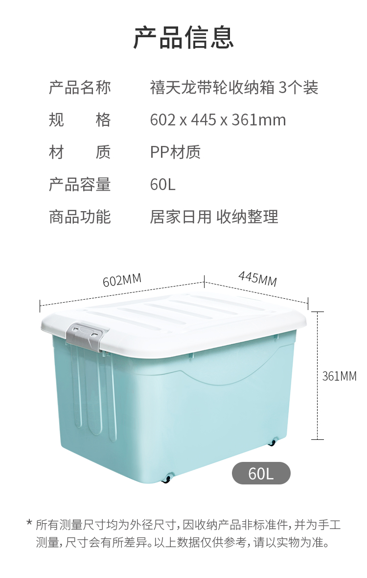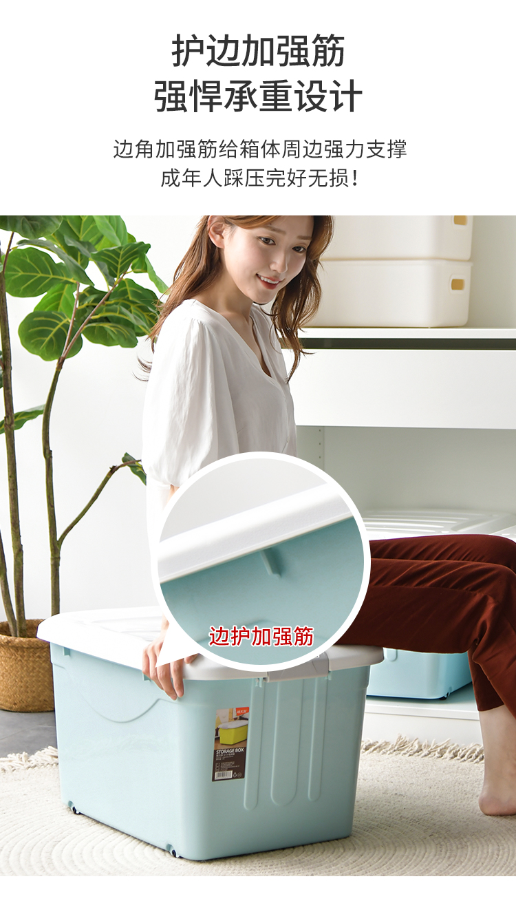 禧天龙 衣物被子收纳箱 儿童玩具整理箱 文件书籍储物箱 抗压搬家打包箱 带滑轮 60升3个装