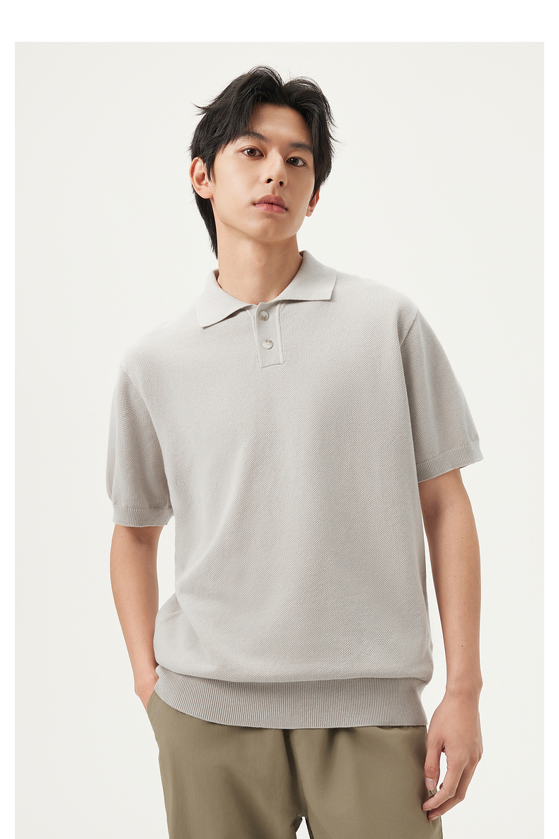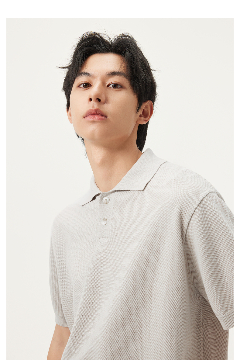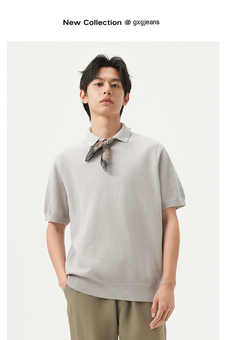 gxg.jeans男装 杏色毛织肌理简约短袖翻领POLO衫 25年夏季热卖
