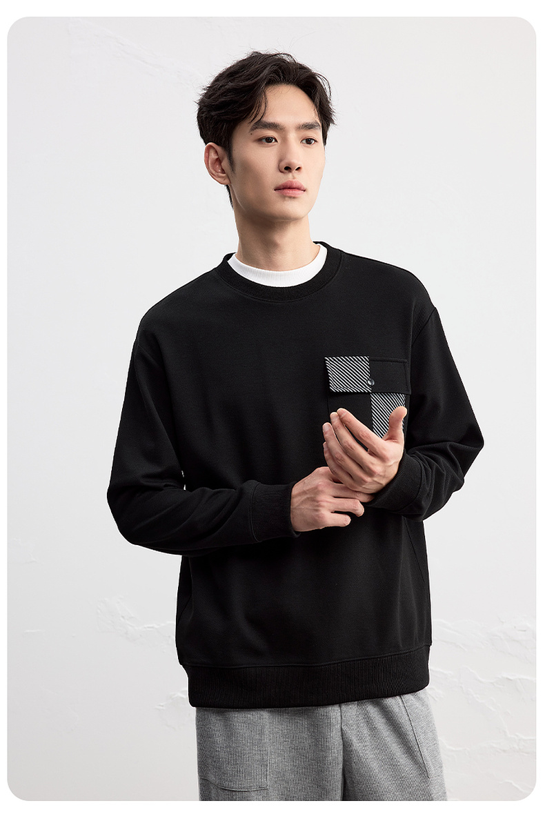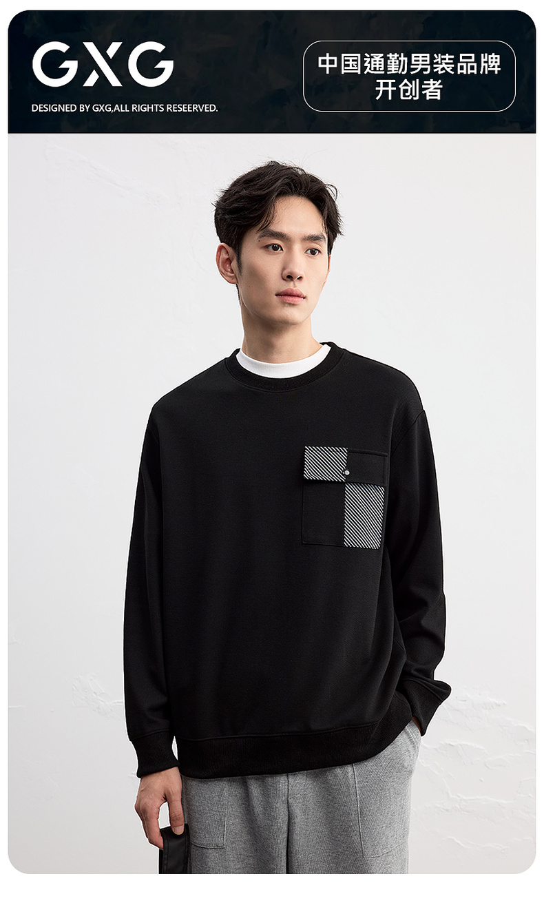 GXG男装25秋季时尚撞色口袋潮流舒适日常休闲宽松男式圆领卫衣K&C