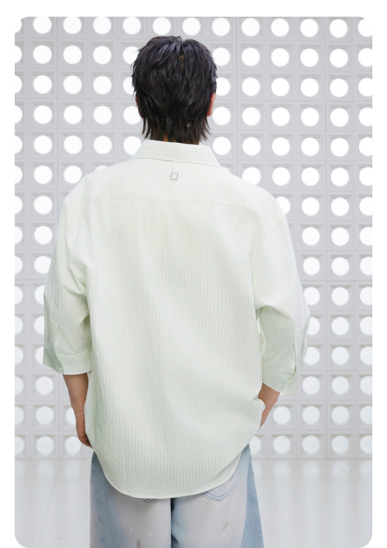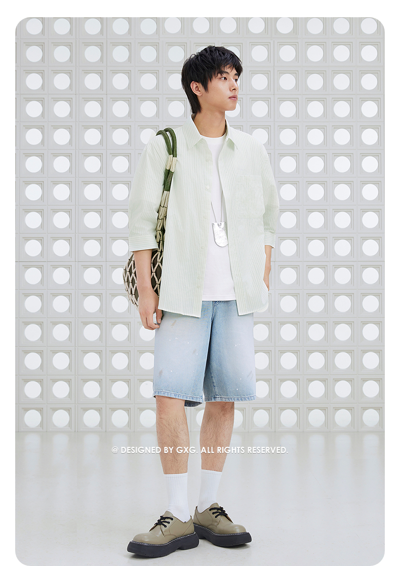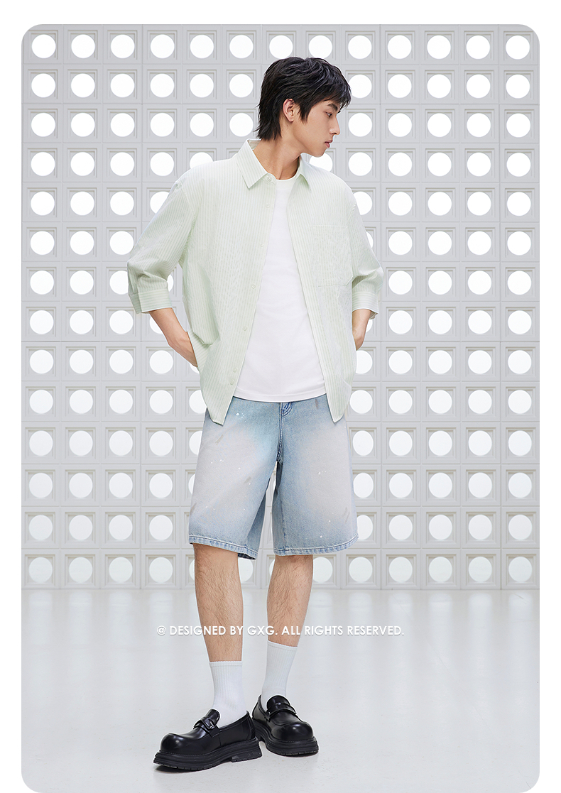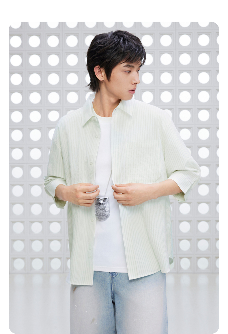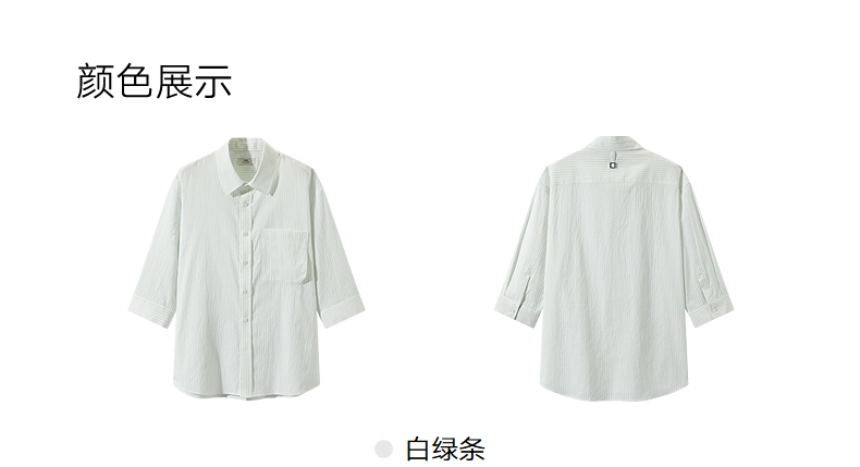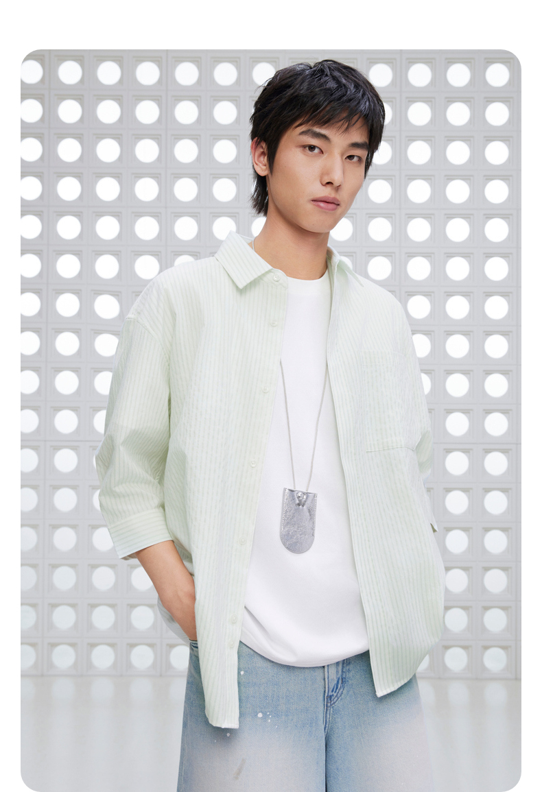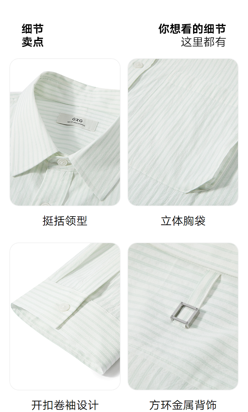 GXG男装 条纹设计衬衫通勤七分袖衬衣男士休闲上装 2025夏季新品