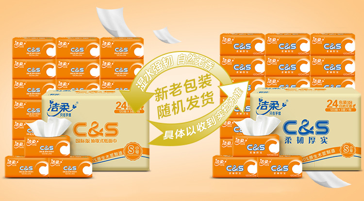 洁柔抽纸(C&S) 活力阳光橙 3层120抽面巾纸*24包(整箱销售 软抽纸巾 母婴可用)无香 新老包装交替发货