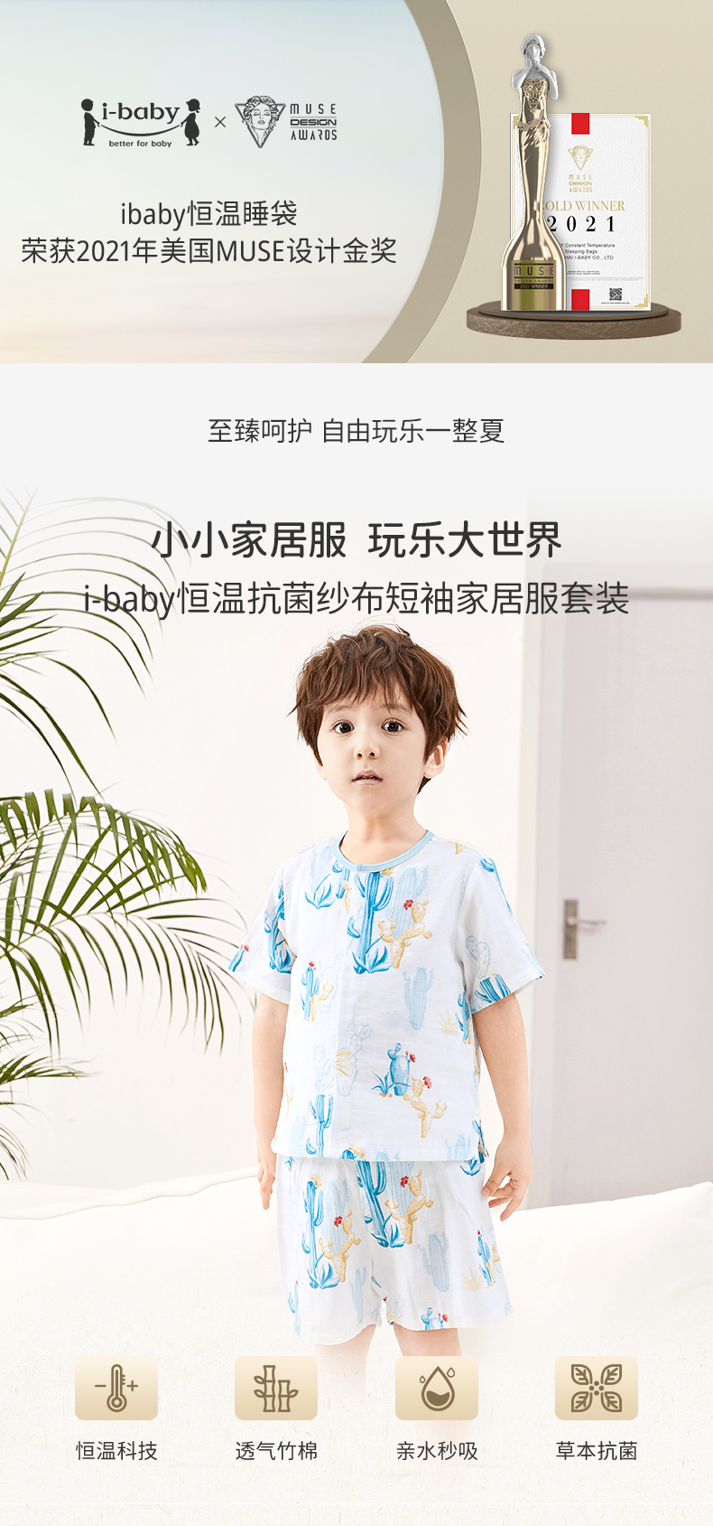 QHXJ【58元任选2件】i-baby恒温宝宝家居服【分体衣】儿童纱布居家贴身套装 睡衣薄春夏