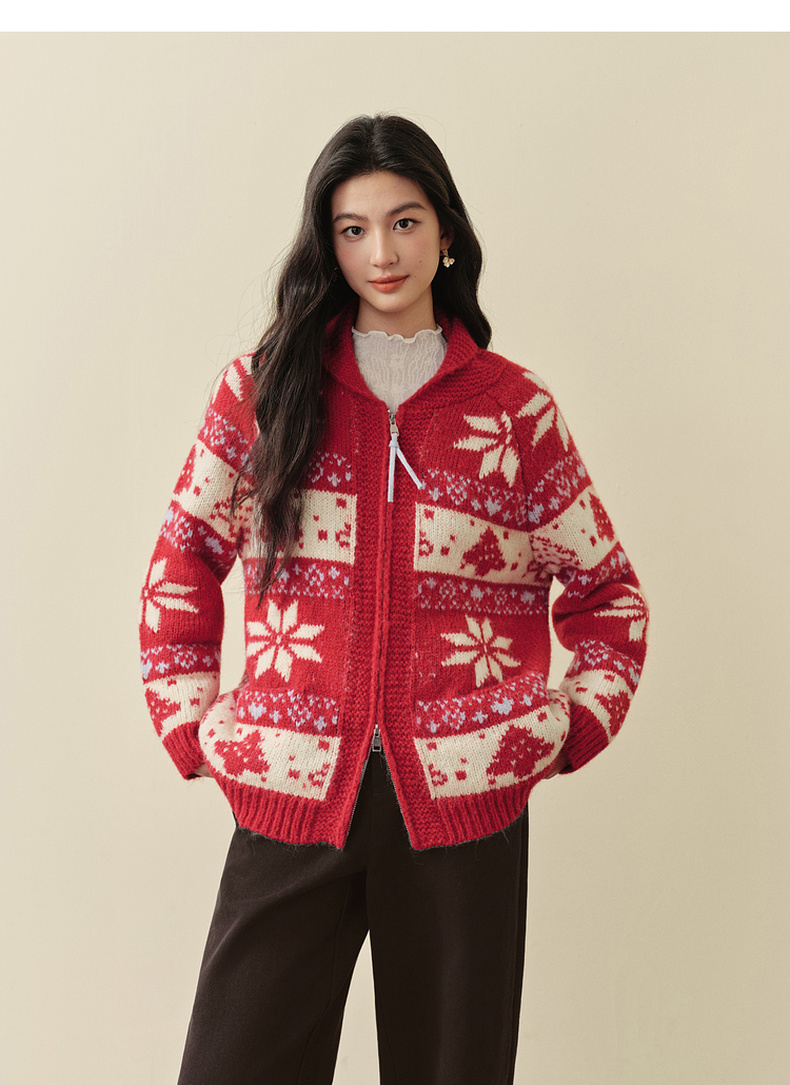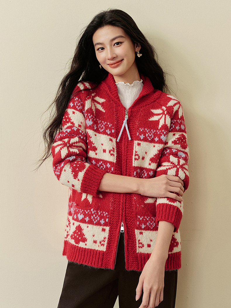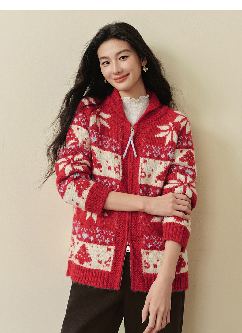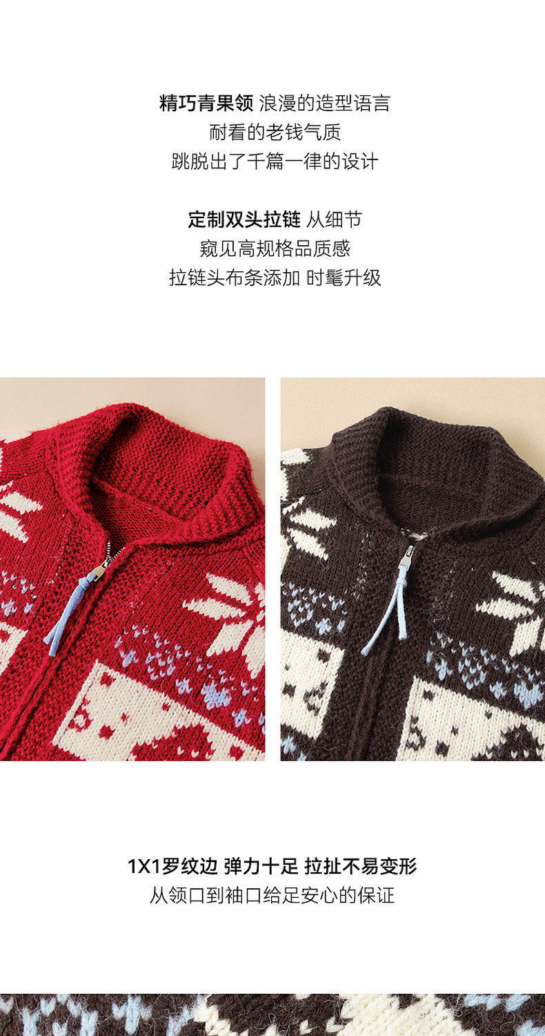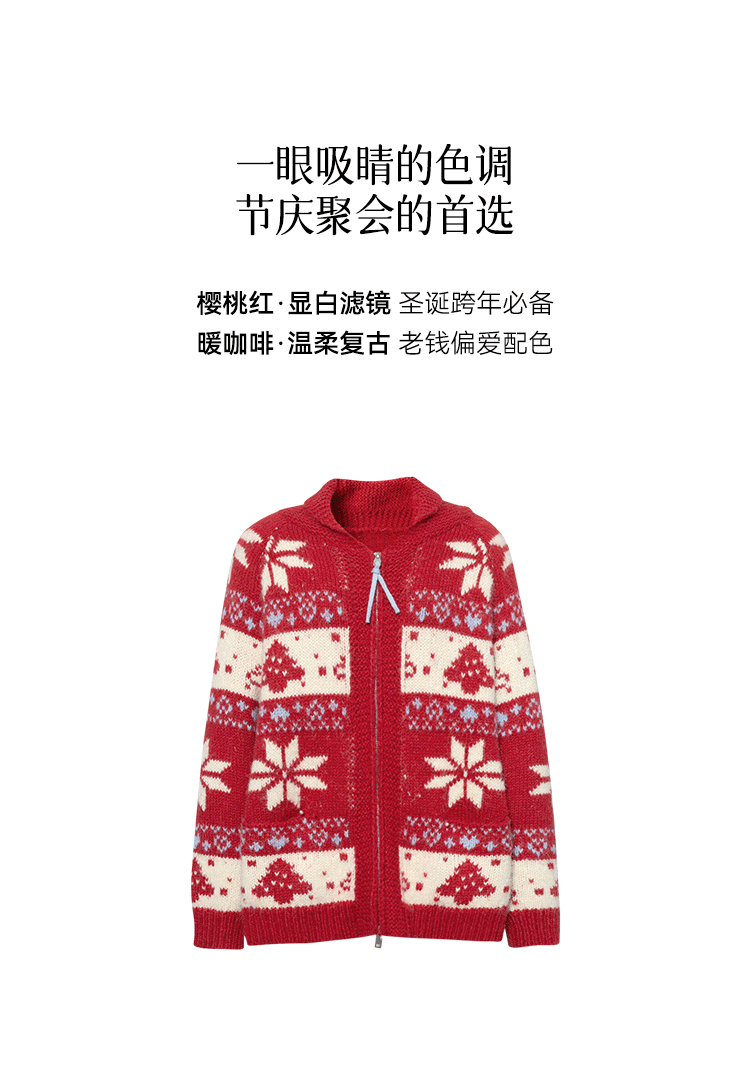 【严选】【孟子义同款】诗凡黎费尔岛圣诞风提花针织开衫25冬复古毛衣外套7GC133361