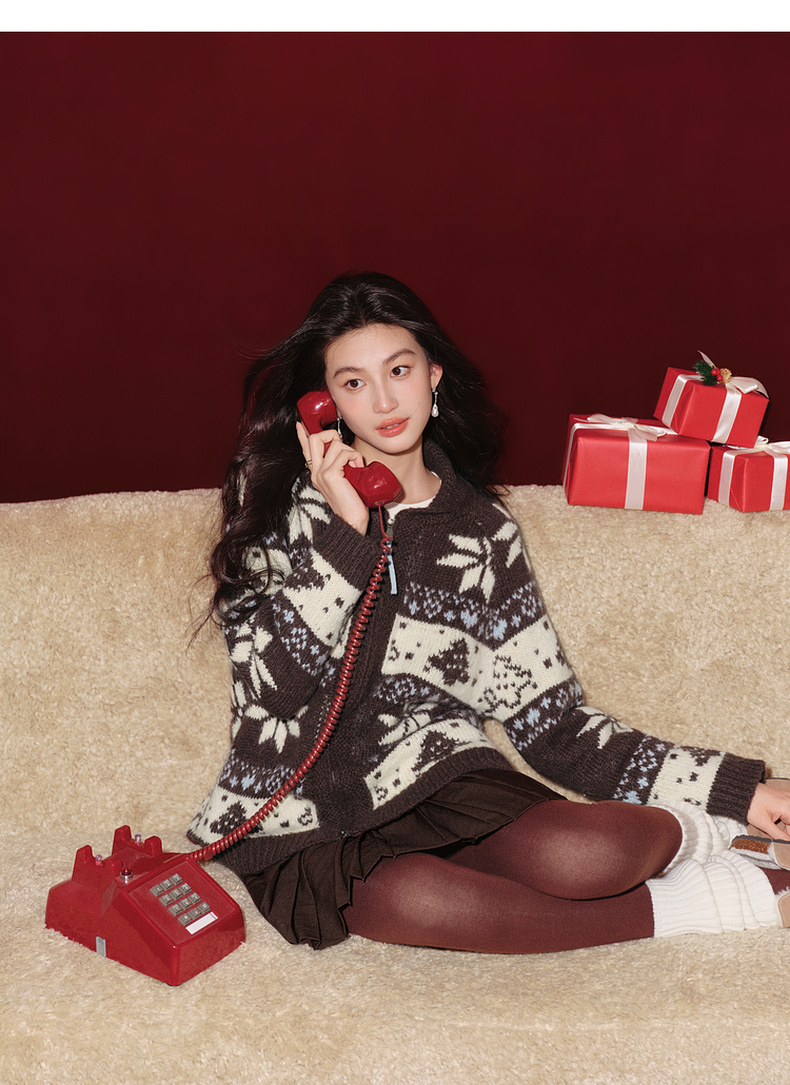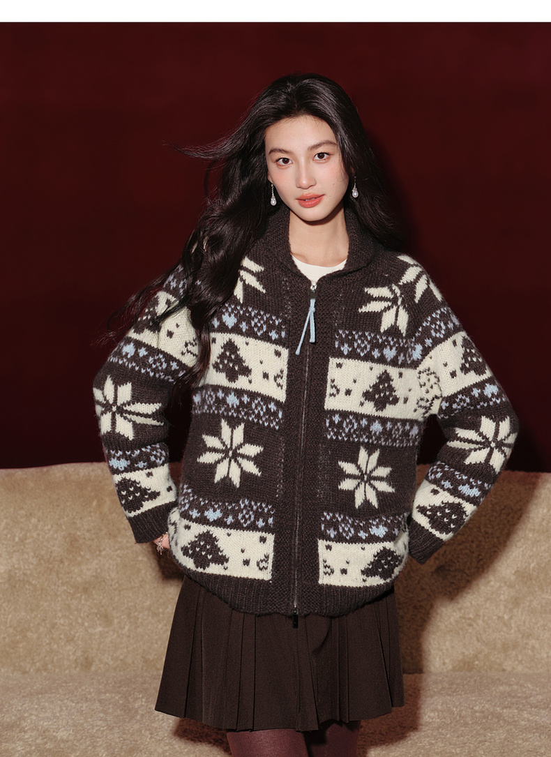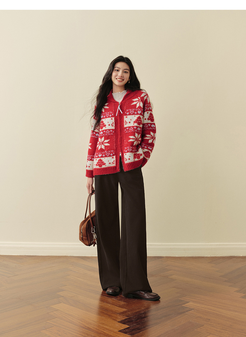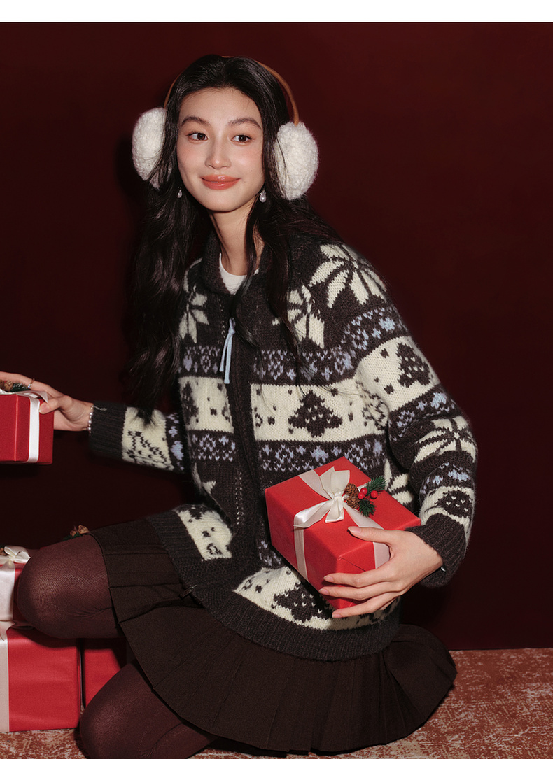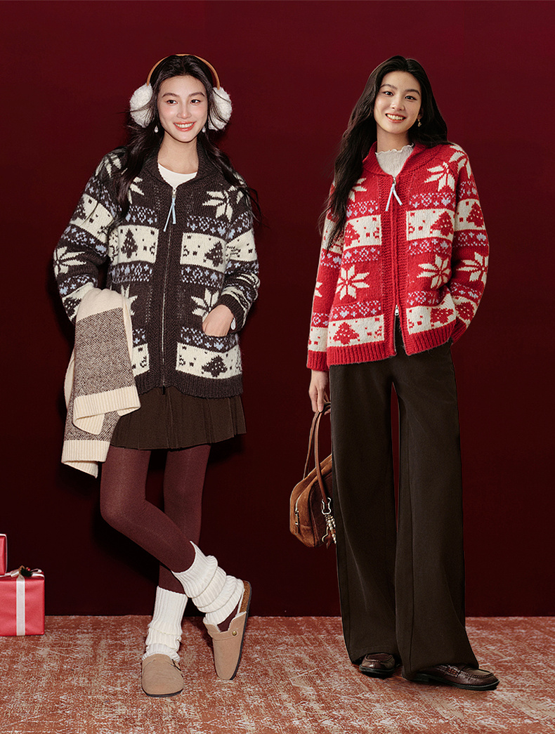 【严选】【孟子义同款】诗凡黎费尔岛圣诞风提花针织开衫25冬复古毛衣外套7GC133361