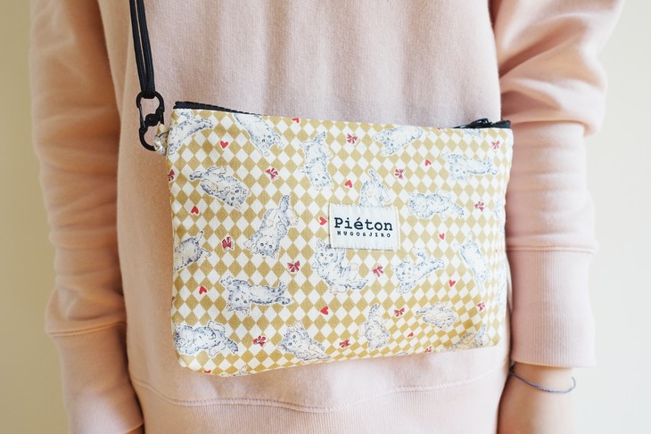 HUJI祤集pieton斜挎包插画爱心小猫咪黄