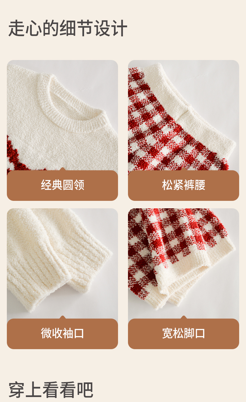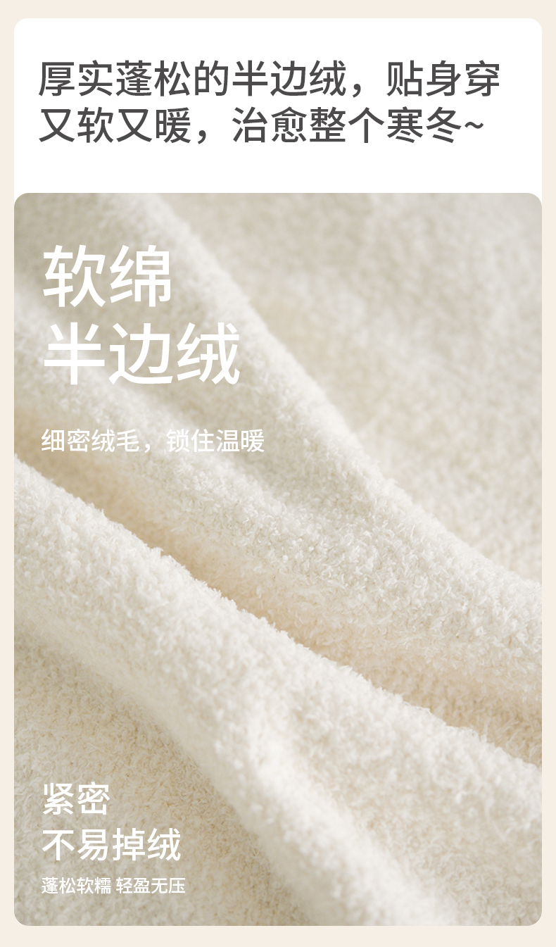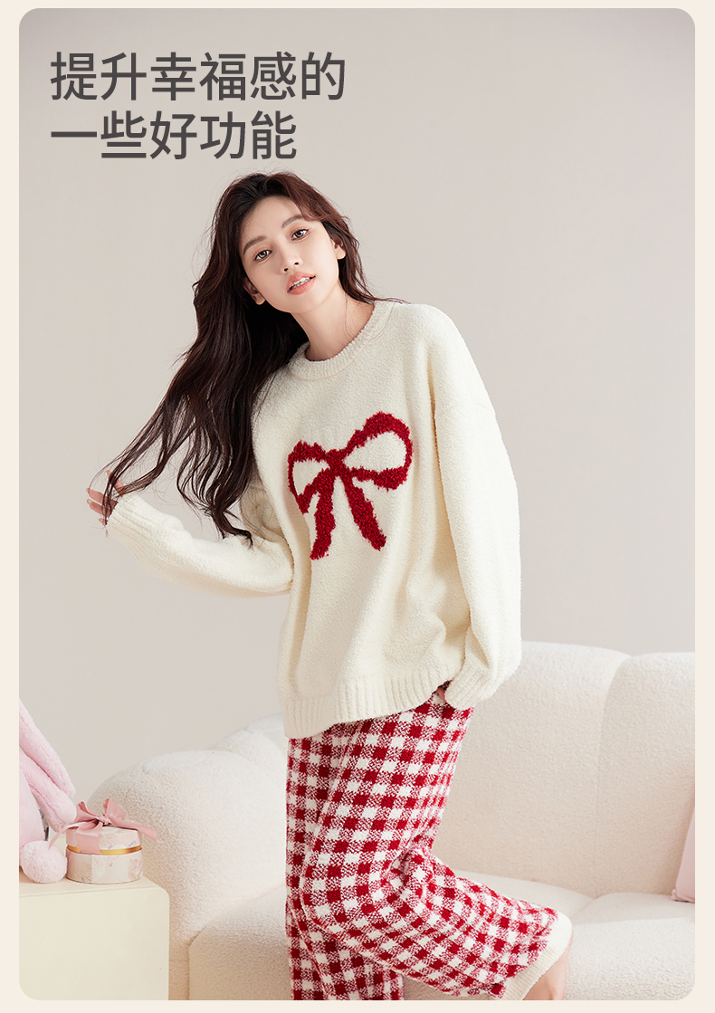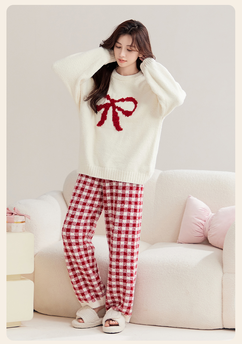洁丽雅秋冬半边绒女睡衣甜美蝴蝶结长绒保暖柔软舒适家居服套装女