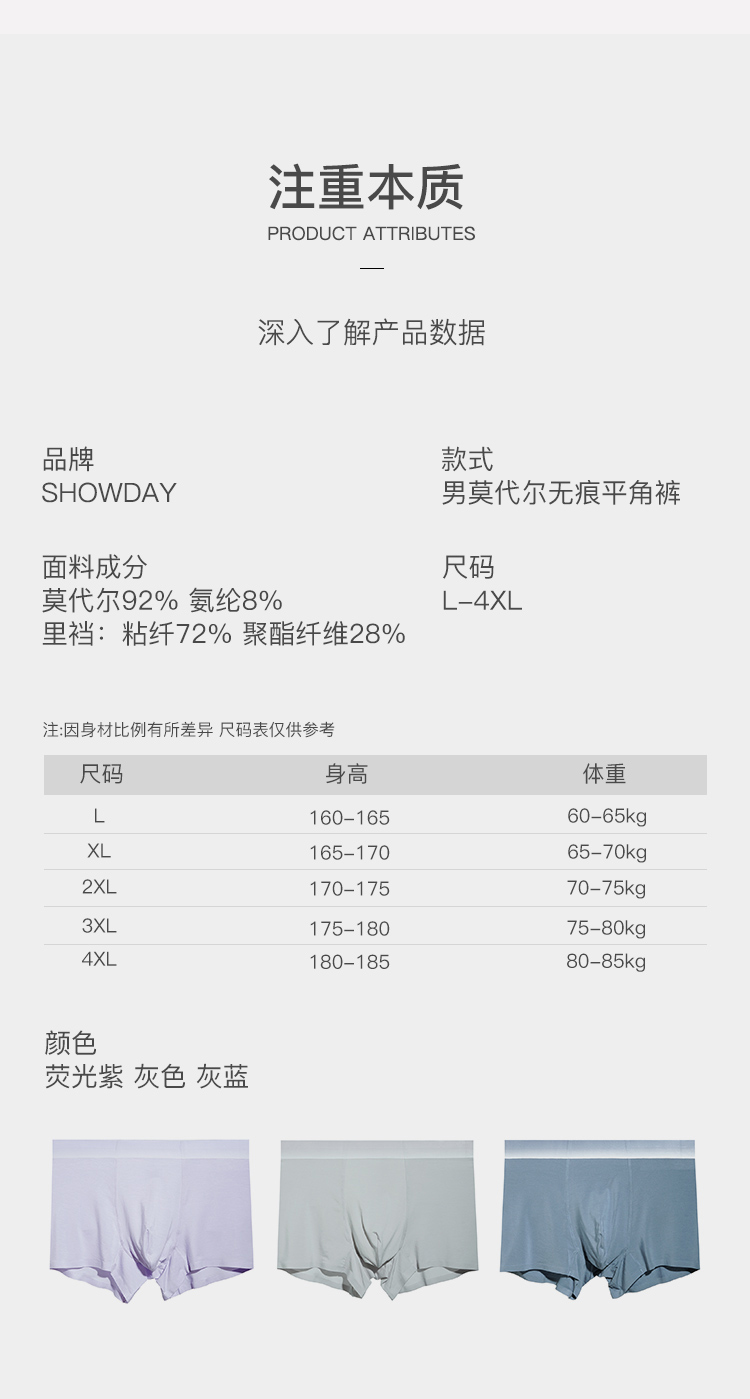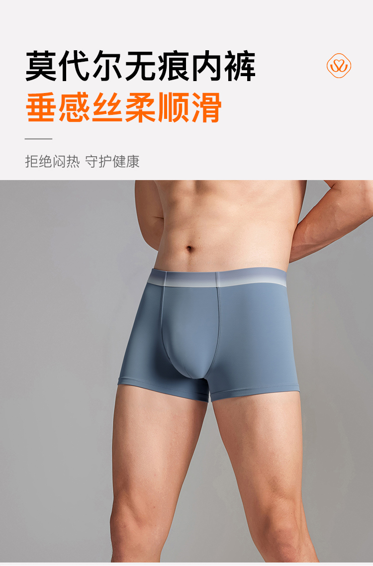 【满3条/6.7折】【秀黛】男莫代尔无痕平角裤男士内裤有4XL【1条】W5330005T【门店同款】【内裤非质量问题不退换,介意勿拍】