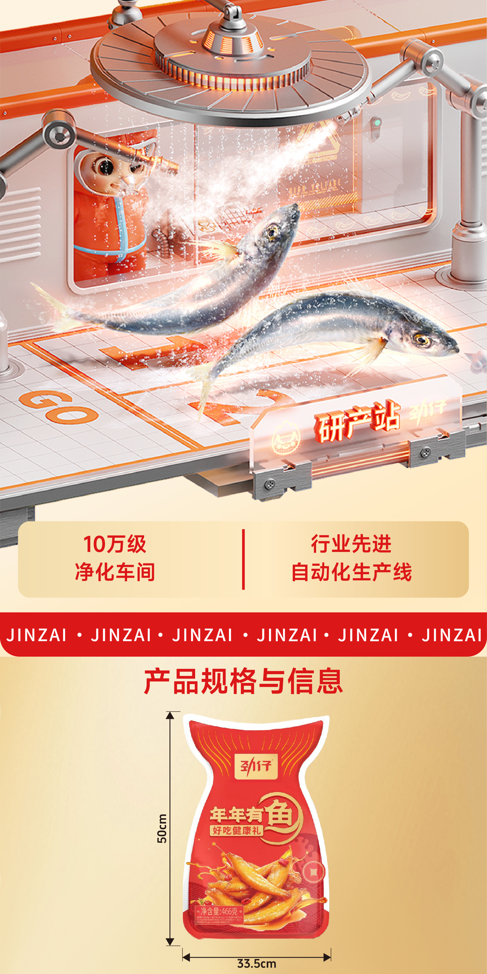【劲仔】年年有鱼袋装辣味零食466g-XL