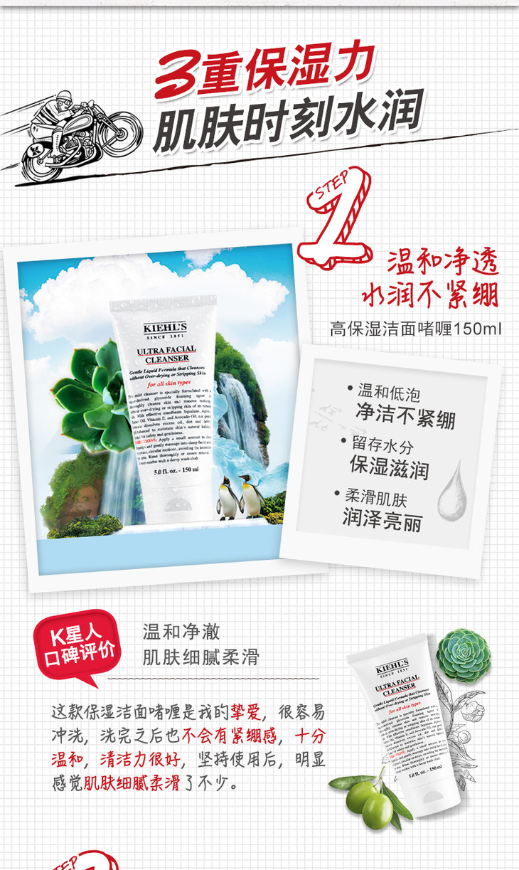 科颜氏 高保湿三件套 洁面面霜爽肤水