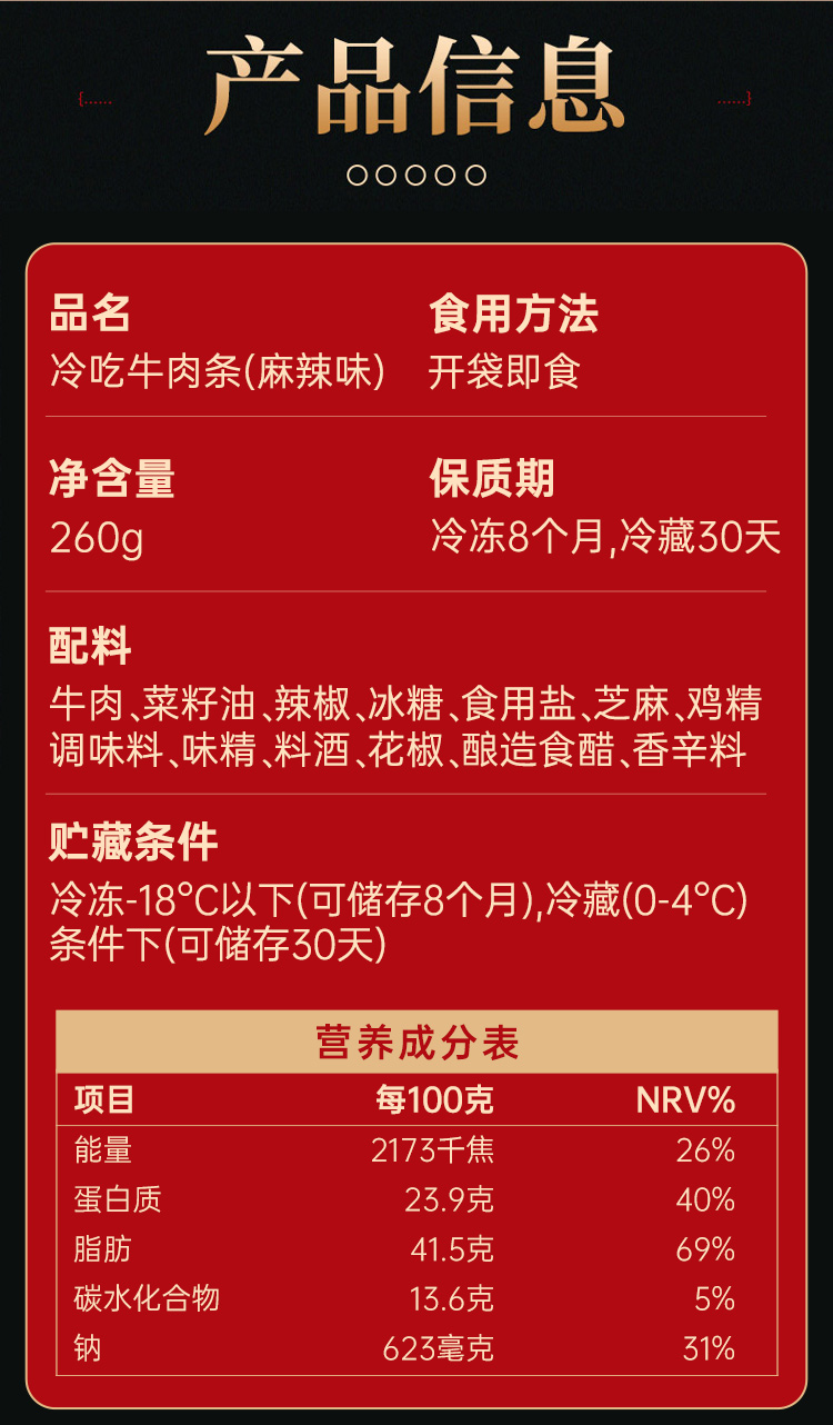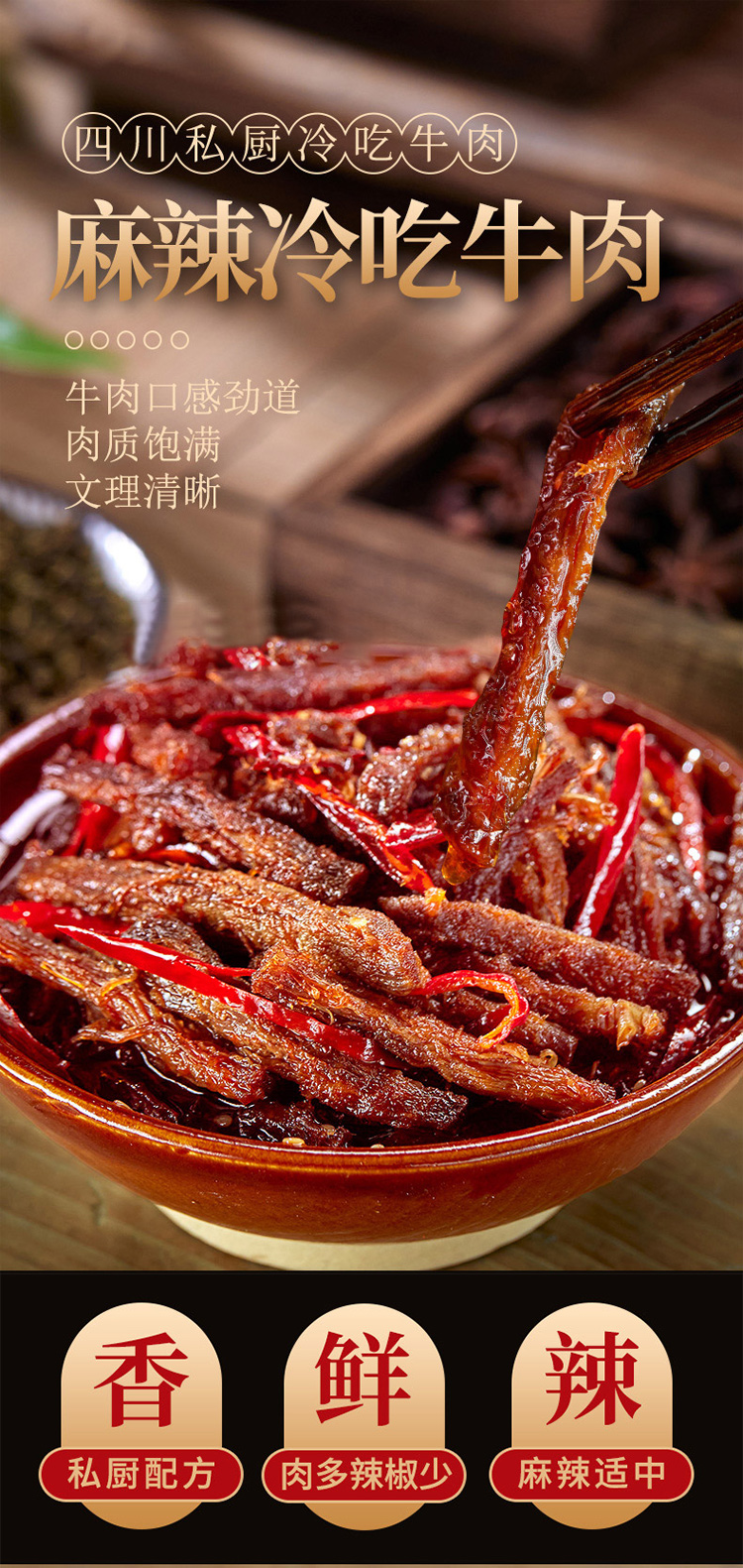 川味麻辣冷吃牛肉条四川特产小吃牛肉干熟食休闲零食即食盒装260g