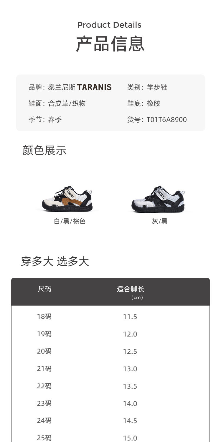 泰兰尼斯童鞋春夏季新款透气男宝学步鞋女童机能运动鞋防踢宝宝鞋T01T6A8900